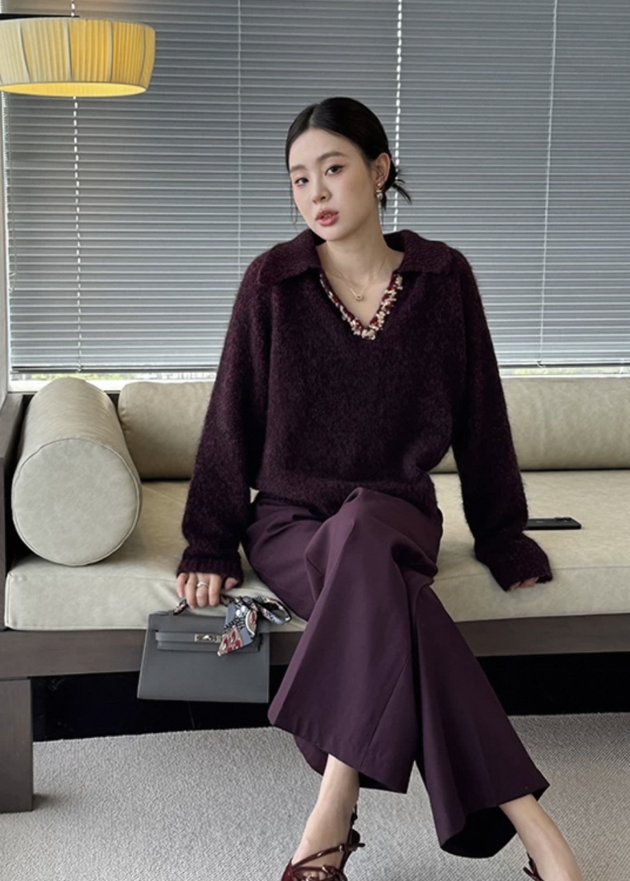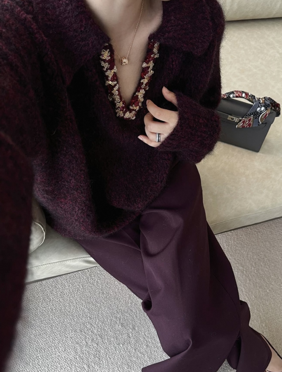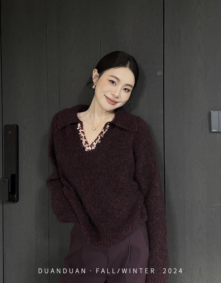 Experience elegance with our wool sweater, featuring a rhinestone V-neck. Soft, warm, and stylish for all occasions.