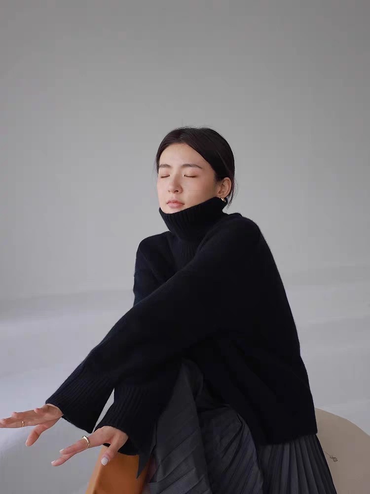 This wool turtleneck sweater is a timeless piece that offers both warmth and elegance. It's perfect for creating a variety of stylish looks, making it an essential item for any fashion-conscious individual.