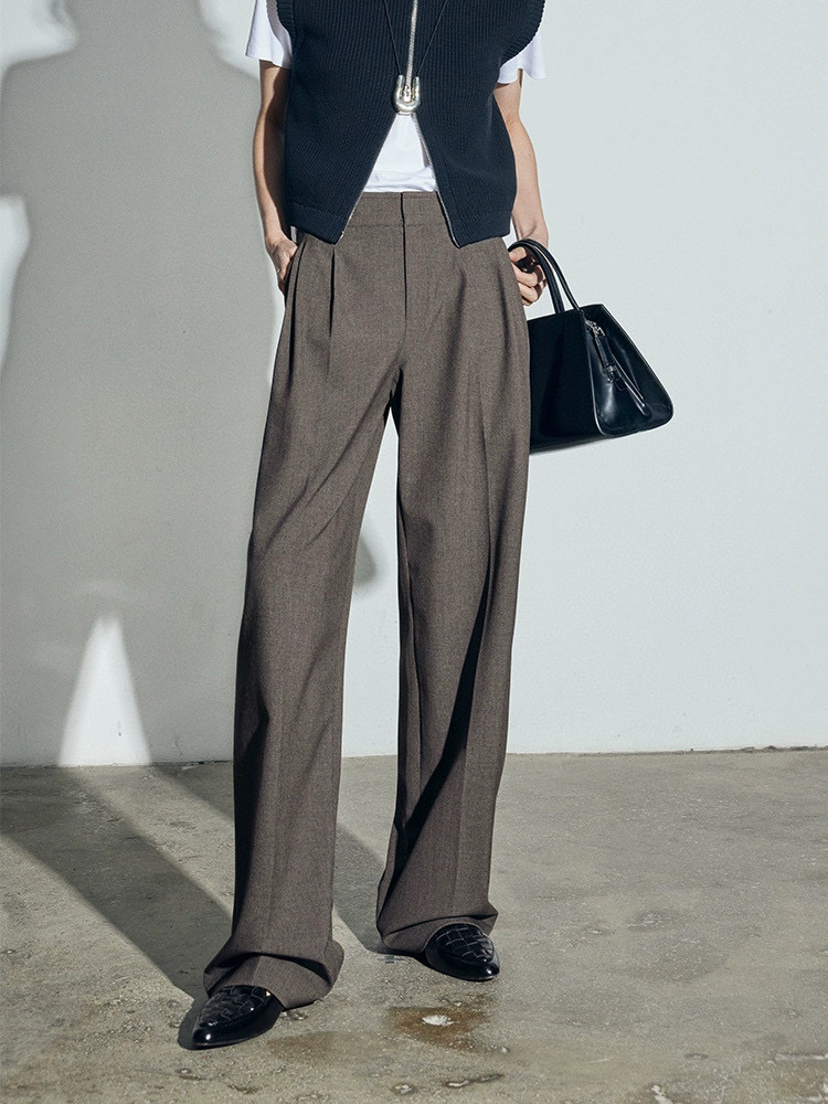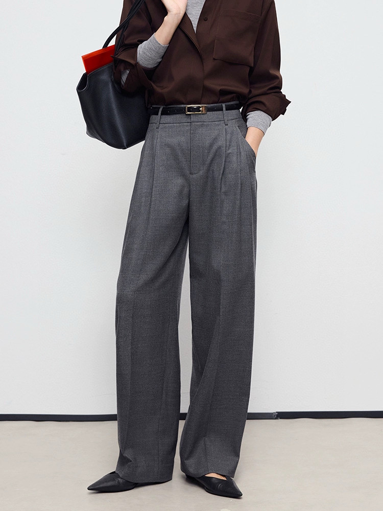 Elegant Wool Wide Leg Pants with Pleated Design, High-Waisted Trousers