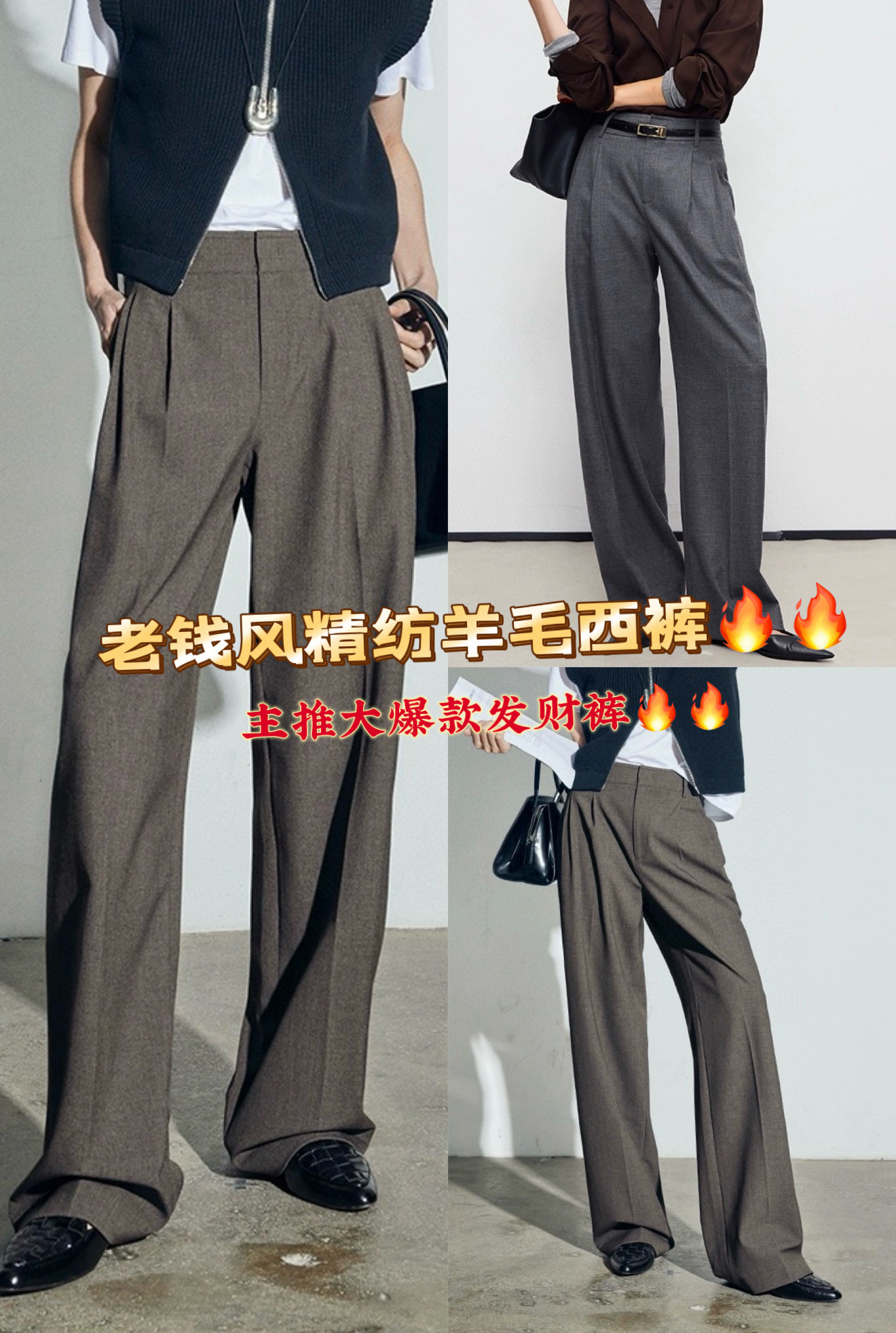 Tags: Business Casual Pants, Elegant Wool Pants, High Waisted Pants, Pleated Wool Trousers, Wool Wide Leg Pants