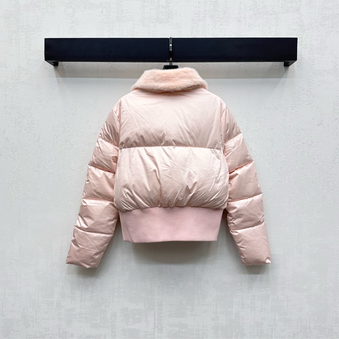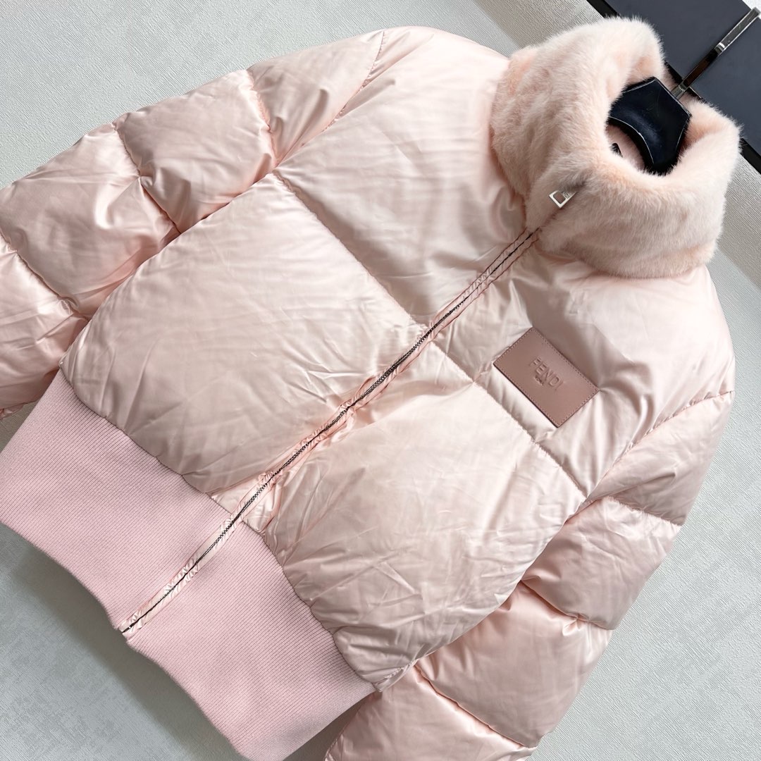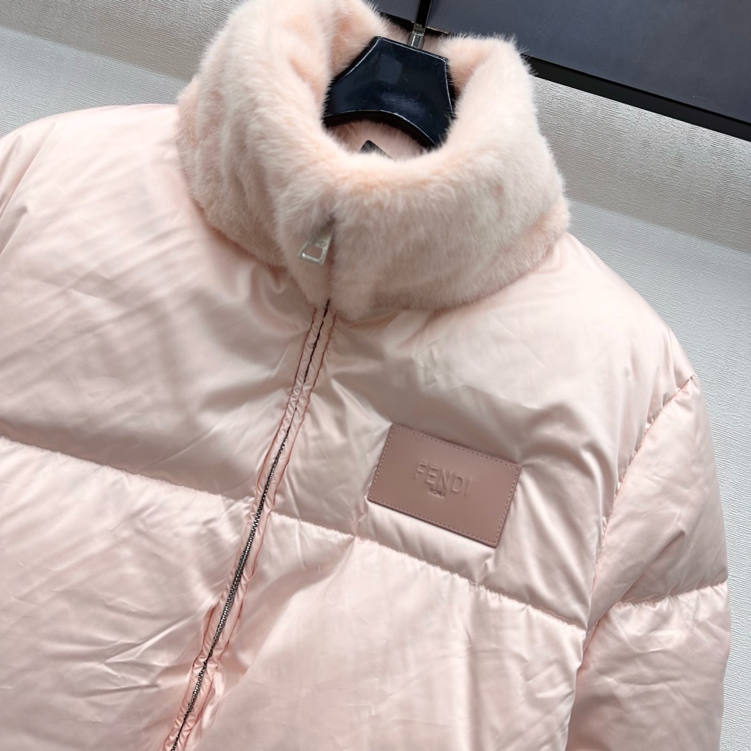 Fendi Detachable Fur Collar Padded Down Jacket Lightweight Warm Coat