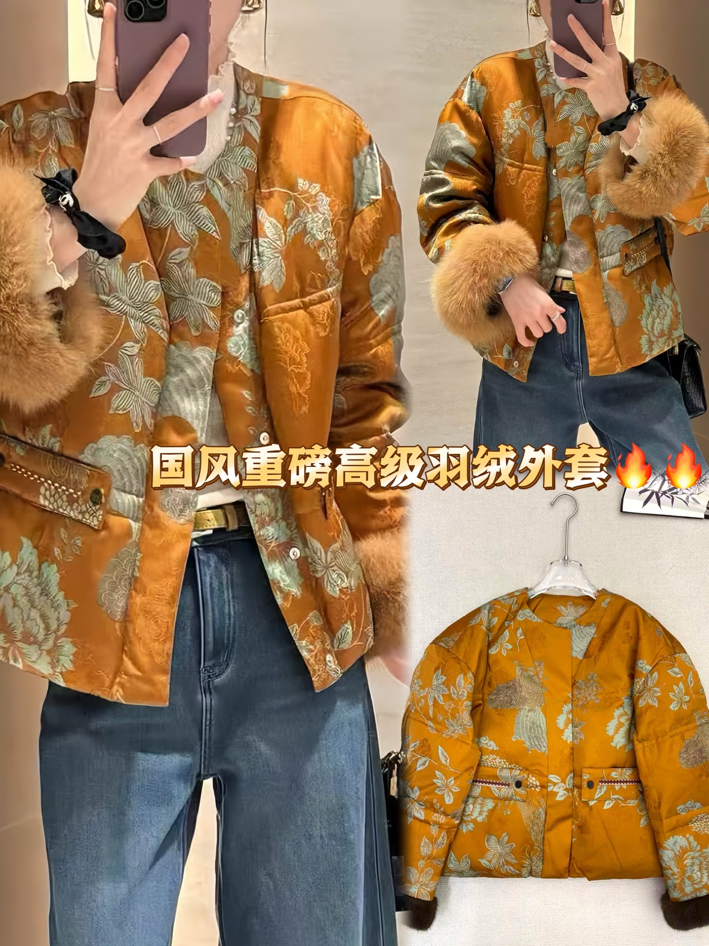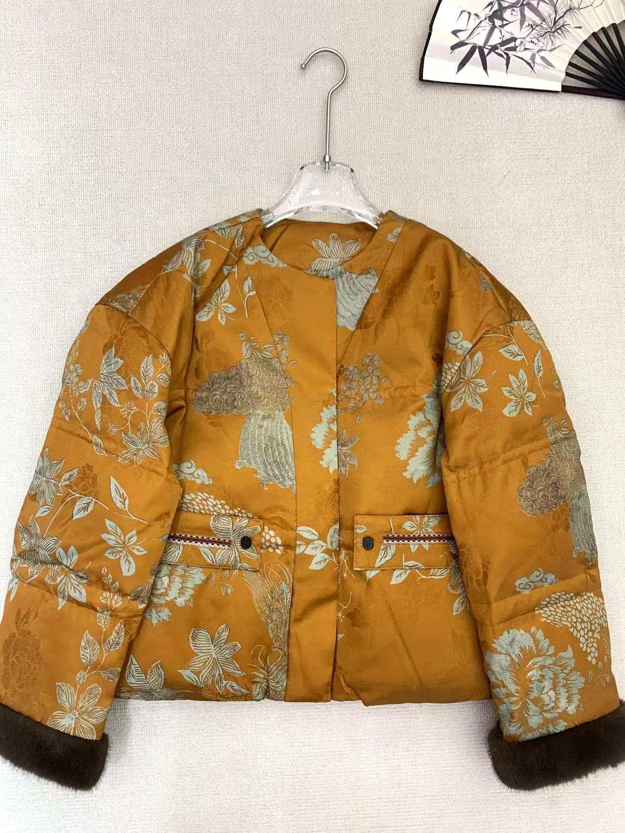 This gorgeous floral jacquard down jacket is the perfect blend of classic elegance and modern luxury. Crafted with meticulous attention to detail, it's designed to keep you warm and stylish throughout the colder months.