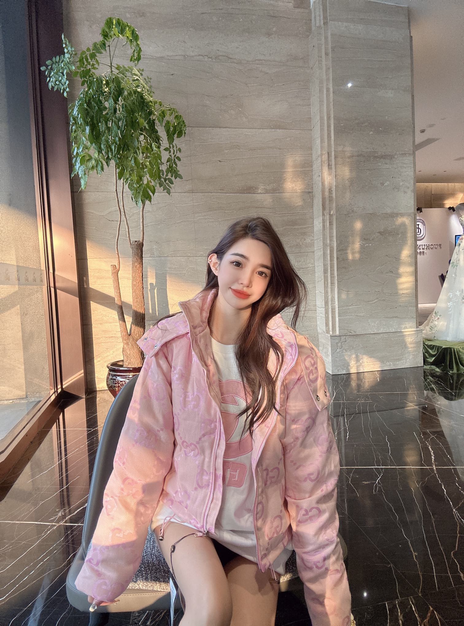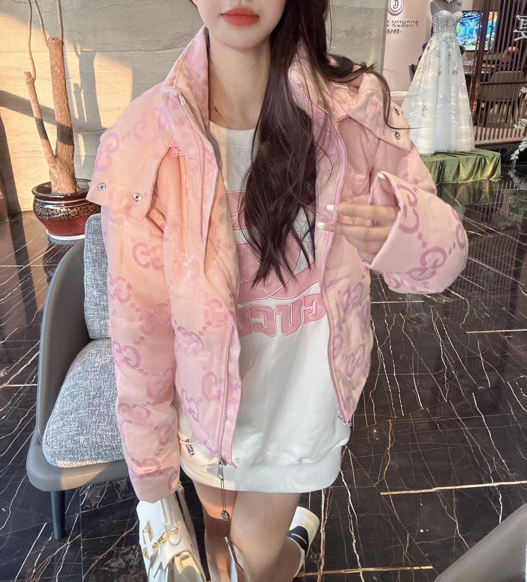 This Gucci 25FW hooded down jacket is both stylish and functional, perfect for staying warm in the colder months.