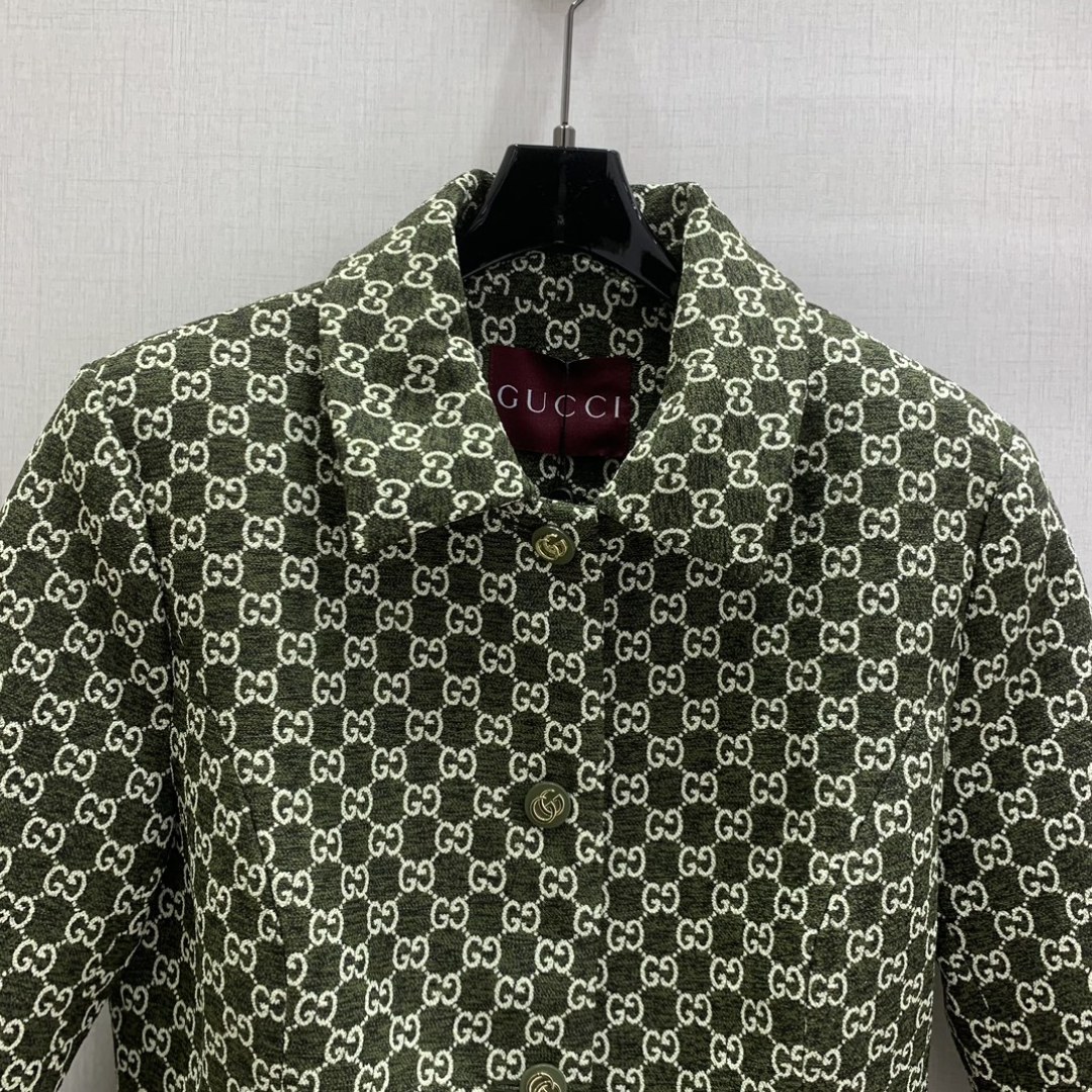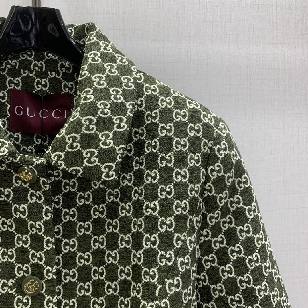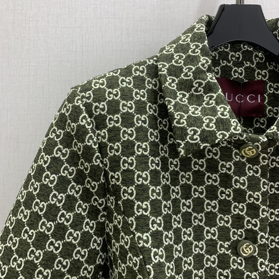 Elevate your style with this Gucci blazer. Featuring a classic double G jacquard pattern, tailored fit, and crafted from quality wool blend.