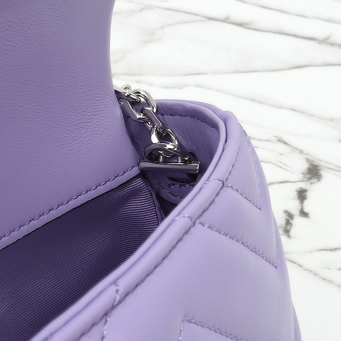 - Material: Crafted from high-quality, light purple leather with distinctive chevron quilting.