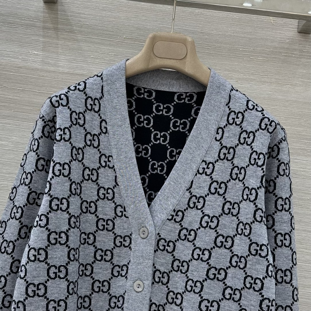 The Gucci cardigan is beautiful and fits perfectly. The jacquard pattern is subtle yet stylish, and I appreciate the attention to detail. Highly recommended!