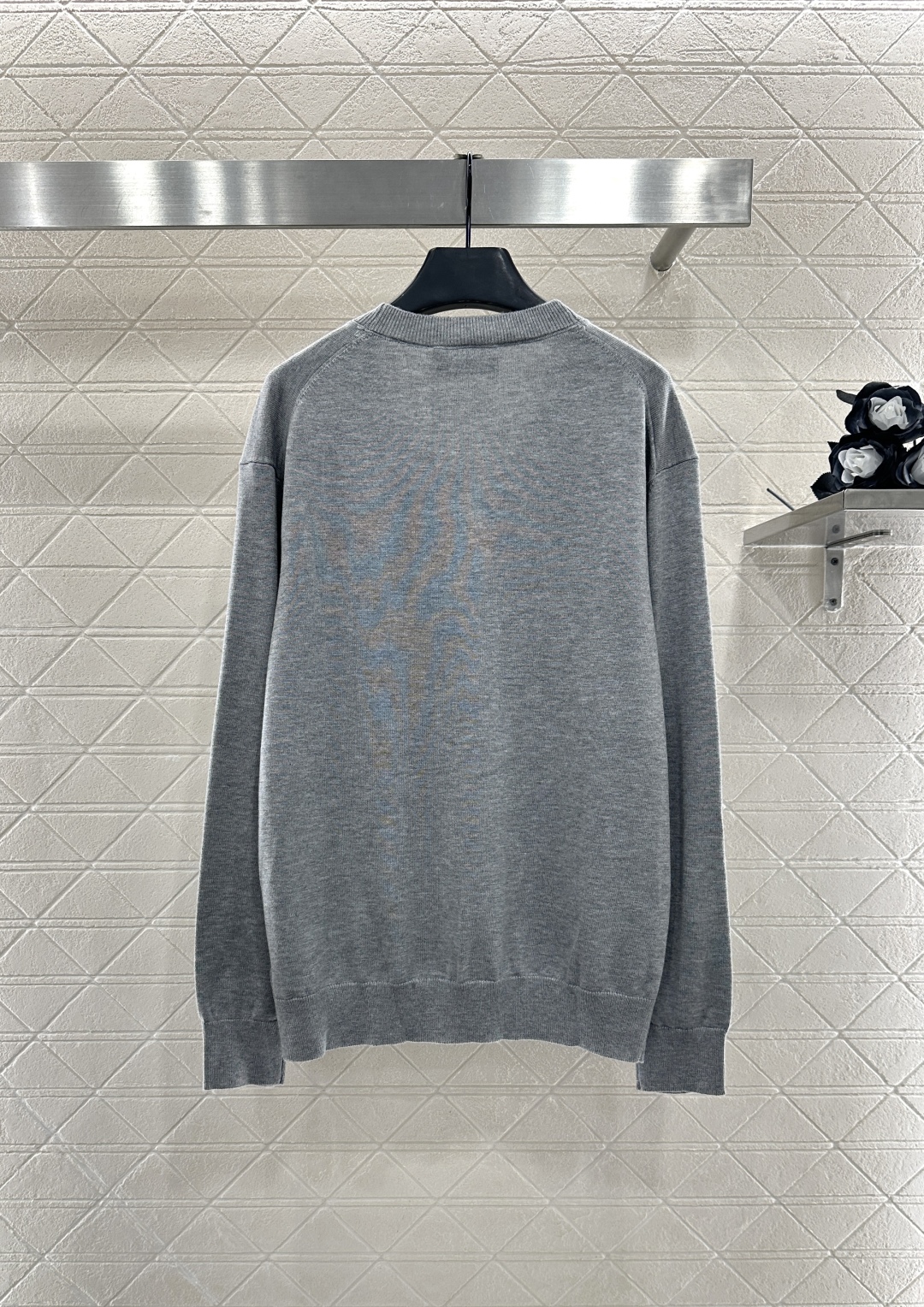 This Gucci cardigan combines luxury and comfort in a stylish design. The gray wool and jacquard logo make it a versatile addition to any wardrobe.