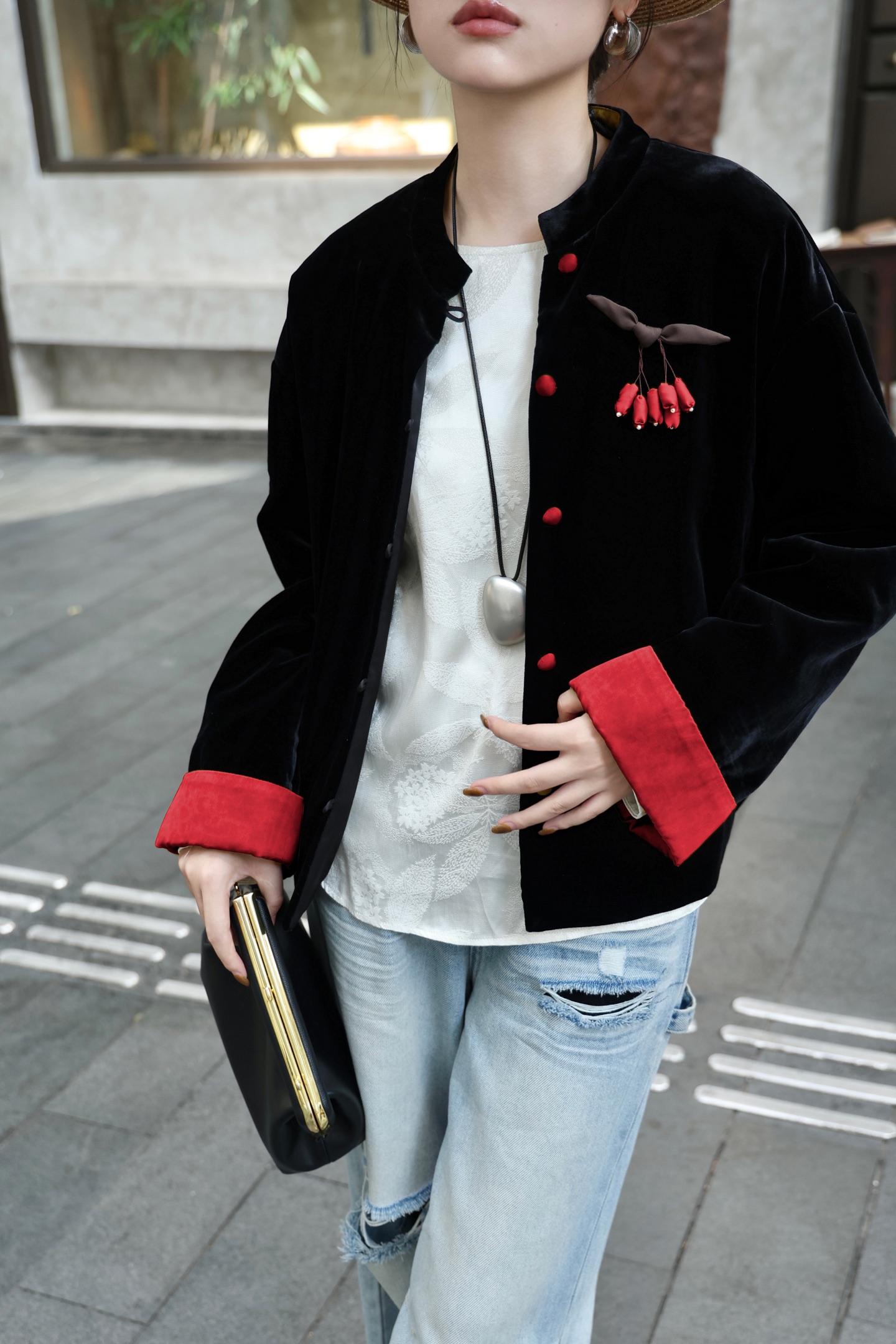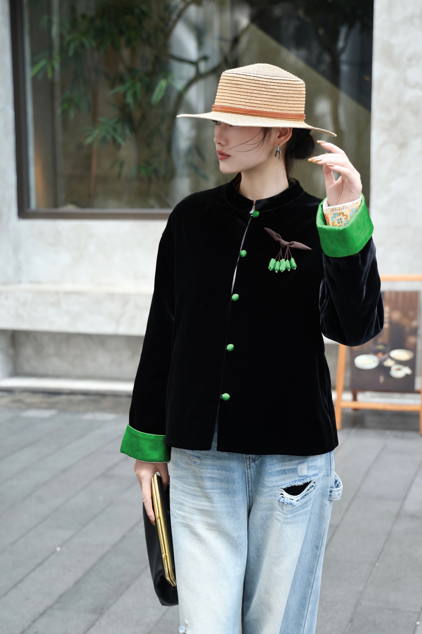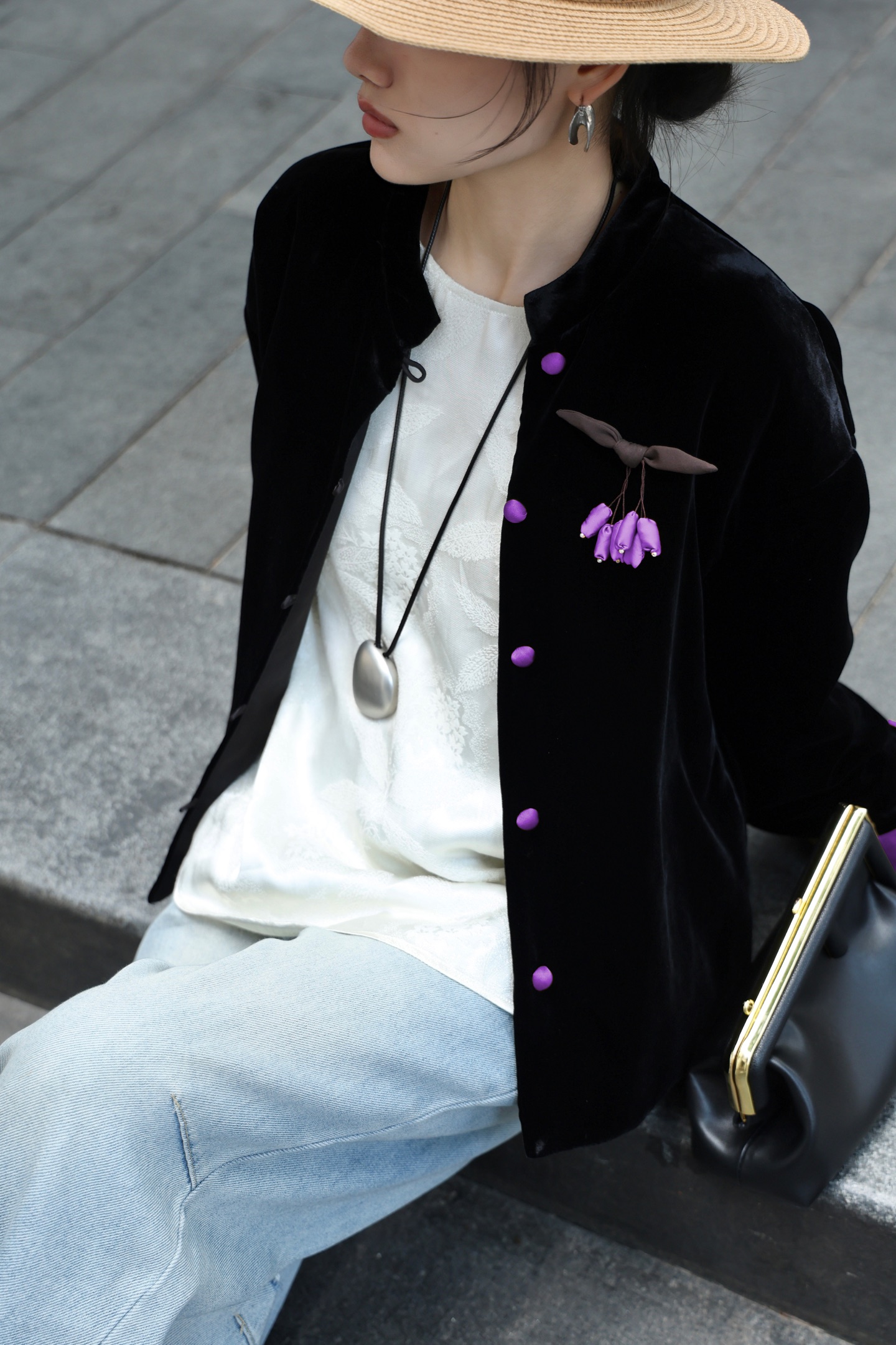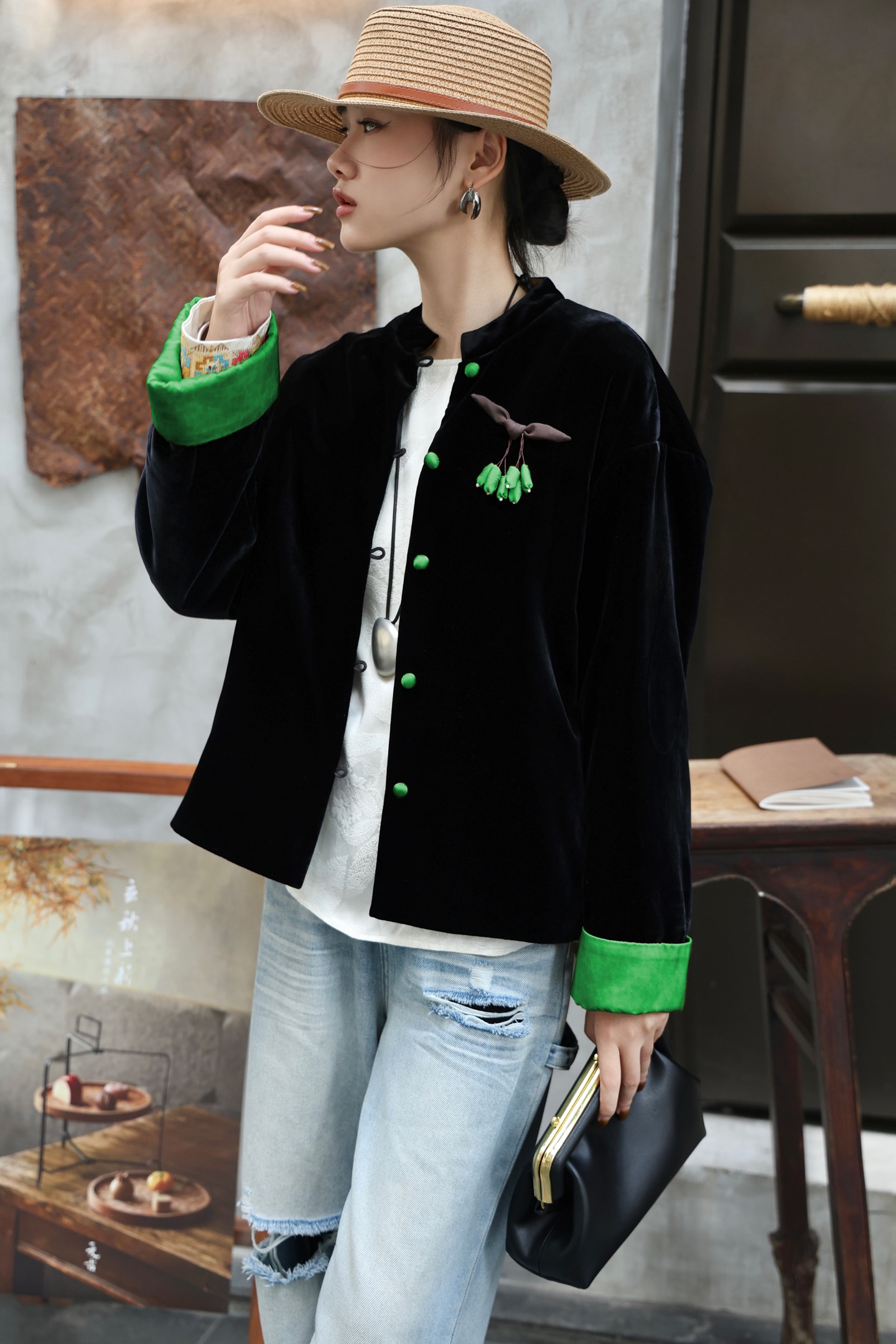 This luxurious silk velvet quilted jacket is a true statement piece, perfect for adding a touch of elegance to any outfit.
