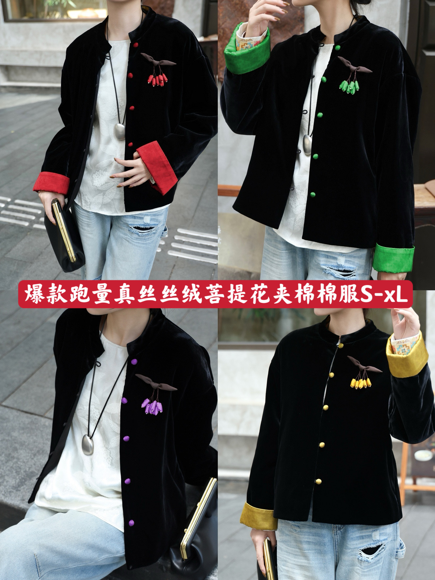 Handmade Silk Velvet Quilted Jacket, Floral Detail, S-XL Sizes Available