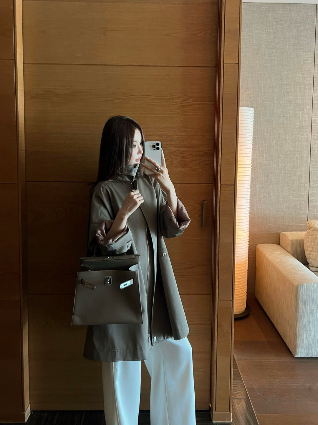 Elevate your style with this Hermes 2025 F/W trench coat. Chic lapel design, custom hardware, & a flattering loose fit for a sophisticated look.