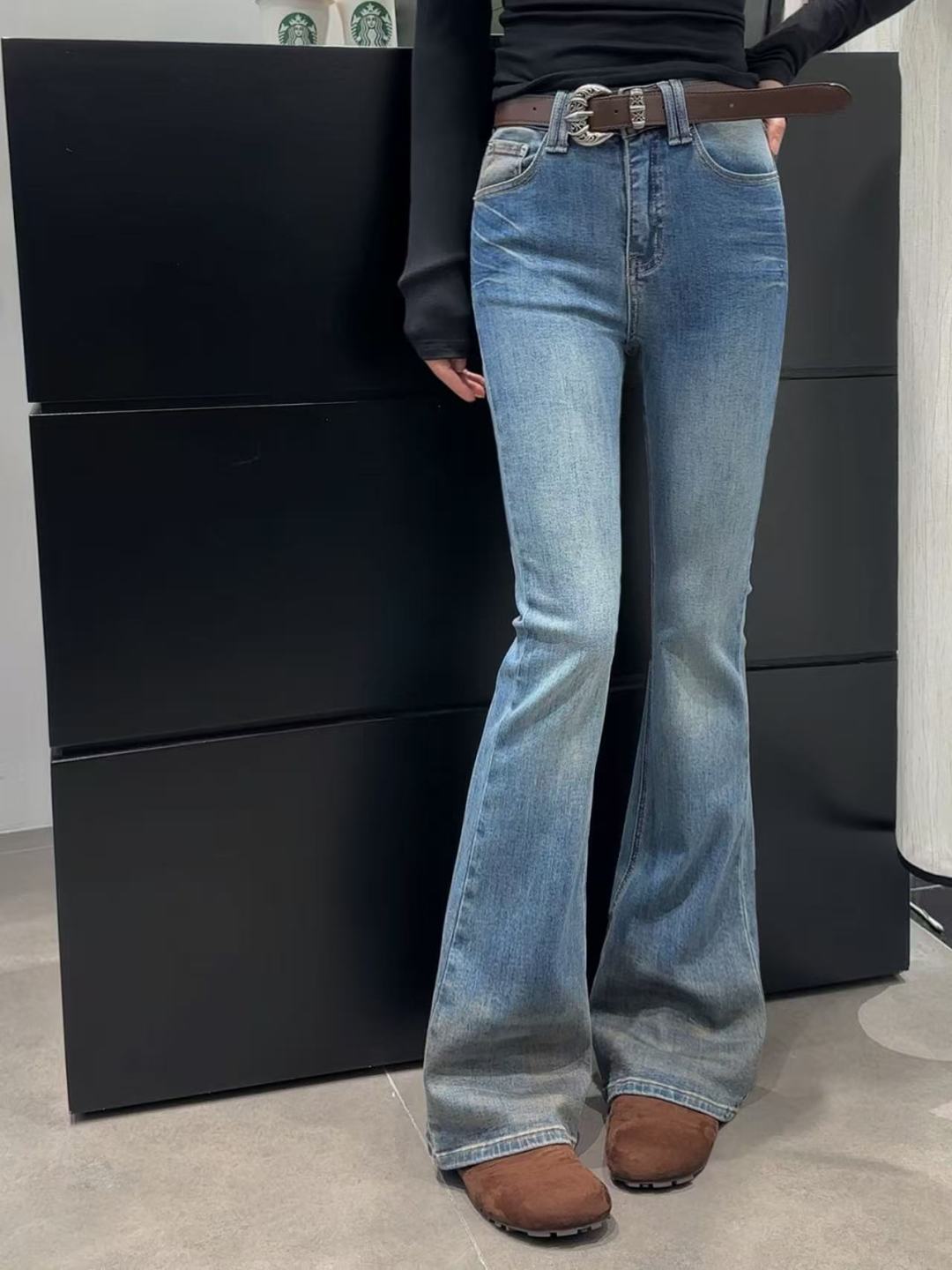 Tags: Bell Bottom Jeans, Flare Leg Jeans, High Waisted Jeans, Retro Style Jeans, Vintage Wash Denim, Women's Denim Pants