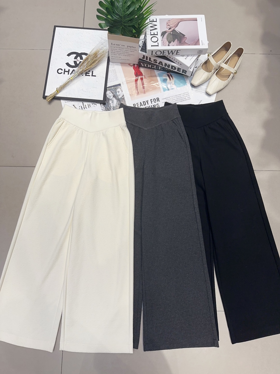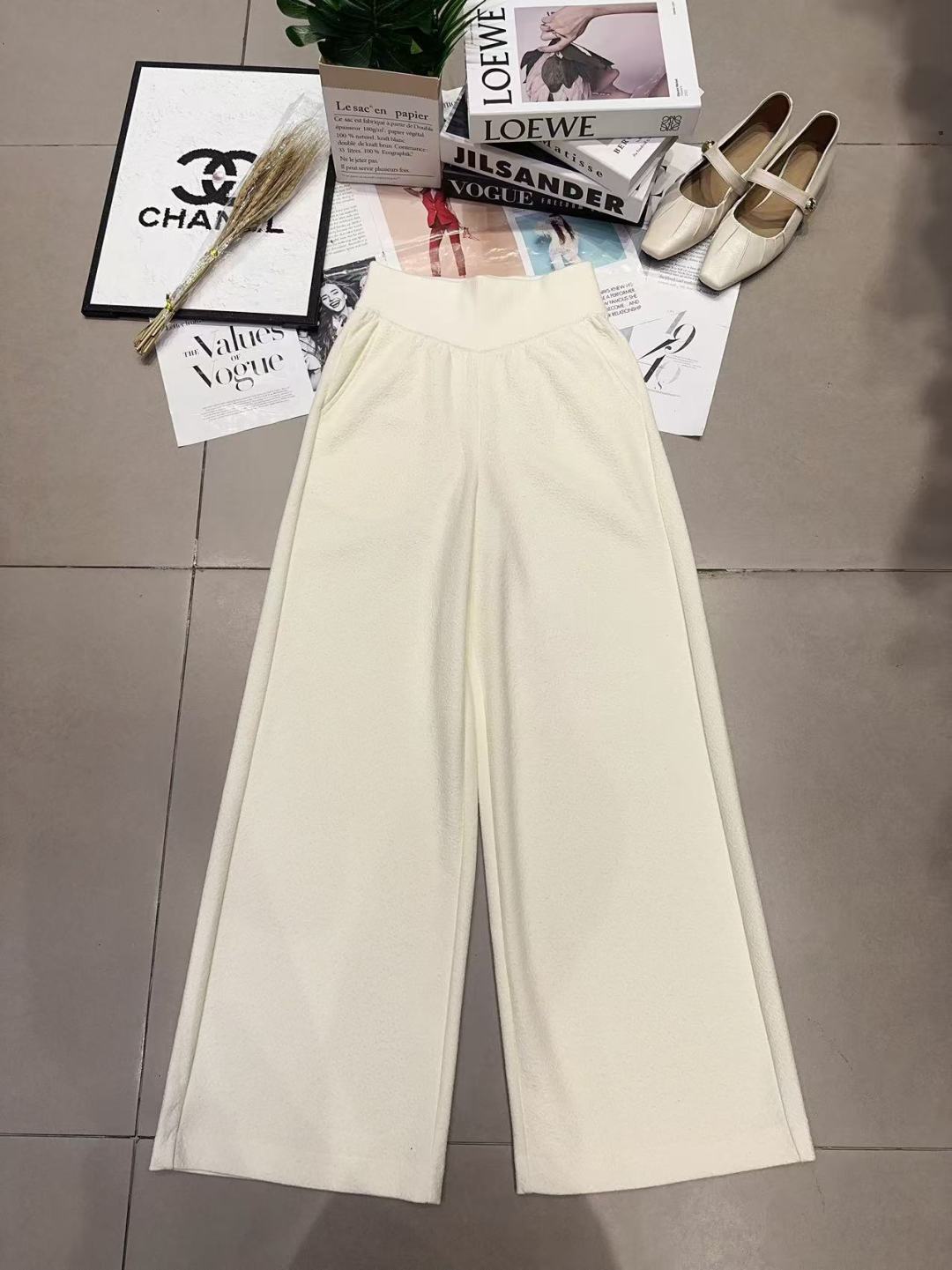 These trousers are so comfortable and stylish! The wide-leg cut is perfect for everyday wear, and the high waist is very flattering. I love the puff grain texture, it adds a unique touch.