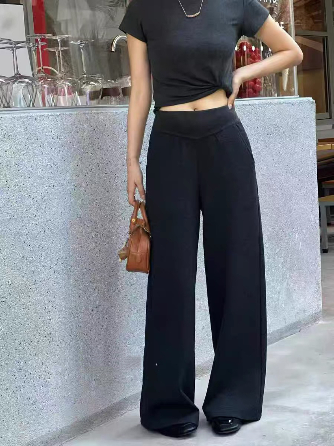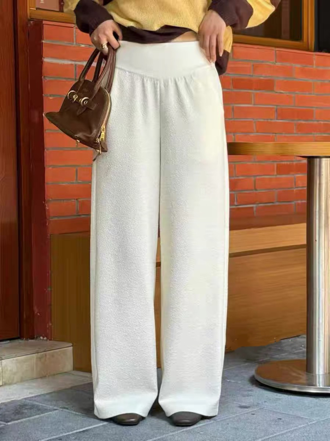 Tags: Classic Color Pants, Comfortable Wide Leg Pants, High Waist Wide Leg Pants, Minimalist Fashion Trousers, Puff Grain Texture Pants, Wool Blend Trousers