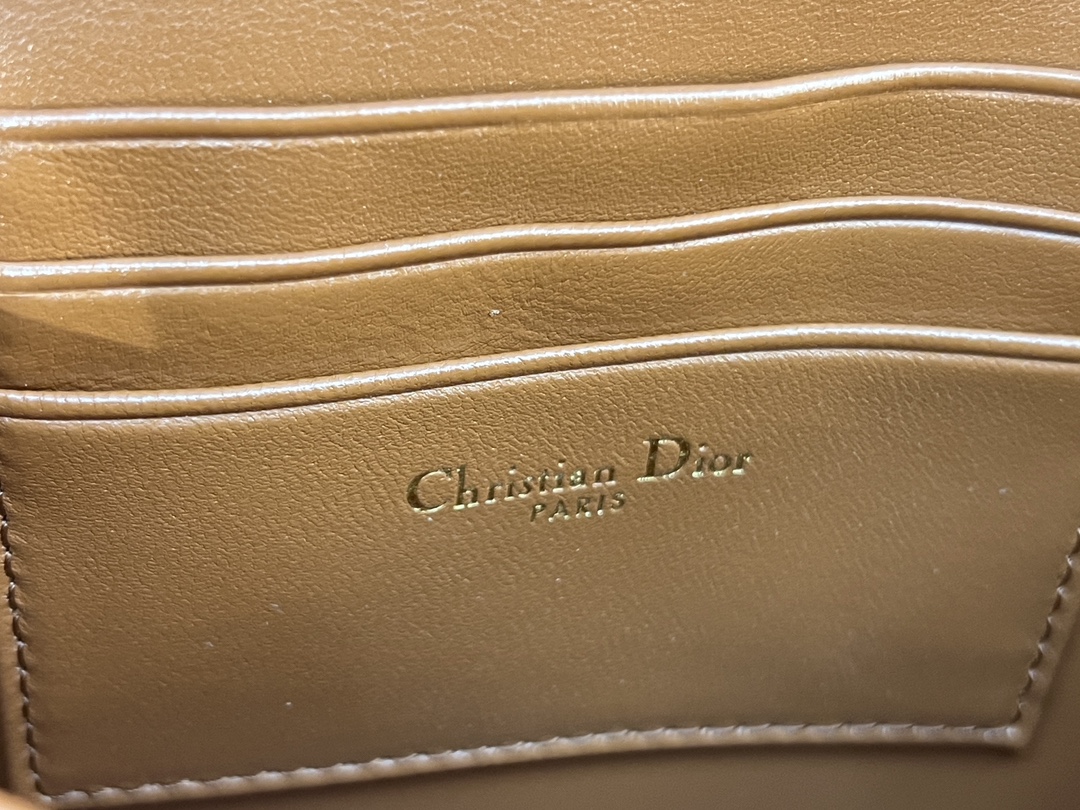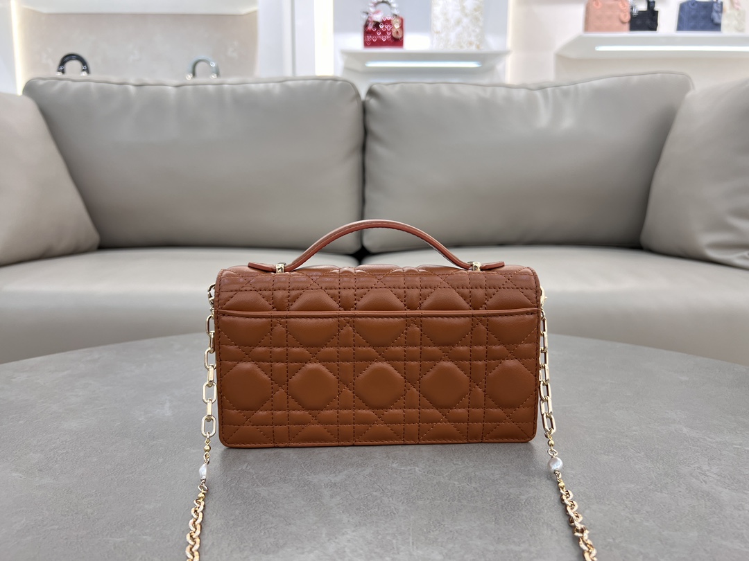 Elevate your style with this Lady Dior handbag. Crafted in bronze lambskin with the iconic Cannage stitch and pearl-embellished chain, it's the perfect luxury statement.