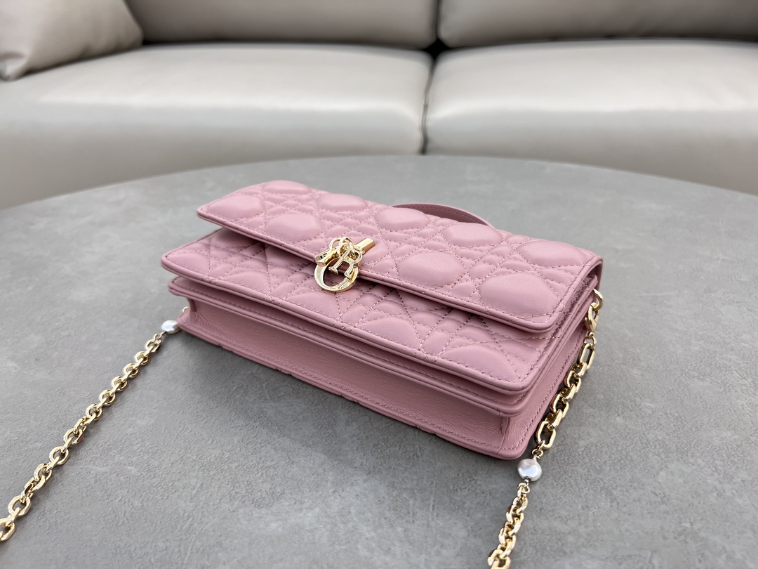 Lady Dior Lambskin Clutch with Pearl Chain - Elegant & Functional Design