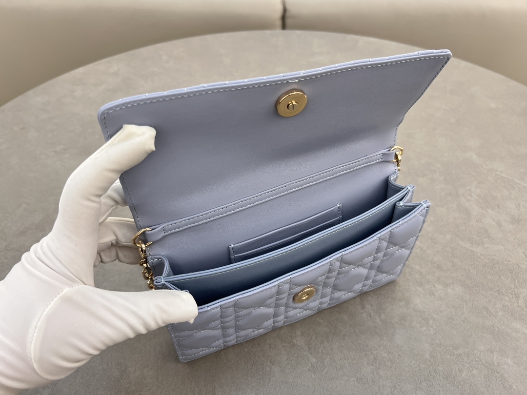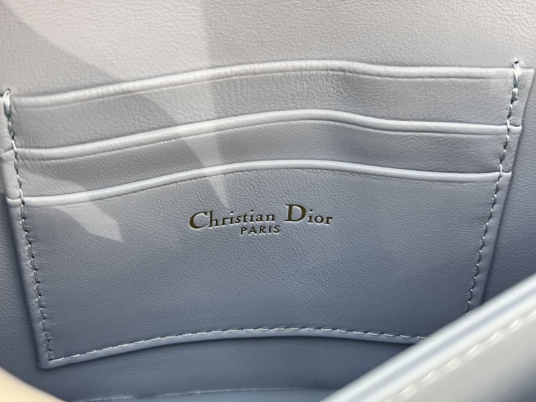 Lady Dior Pearl Embellished Lambskin Clutch Bag - Pale Blue