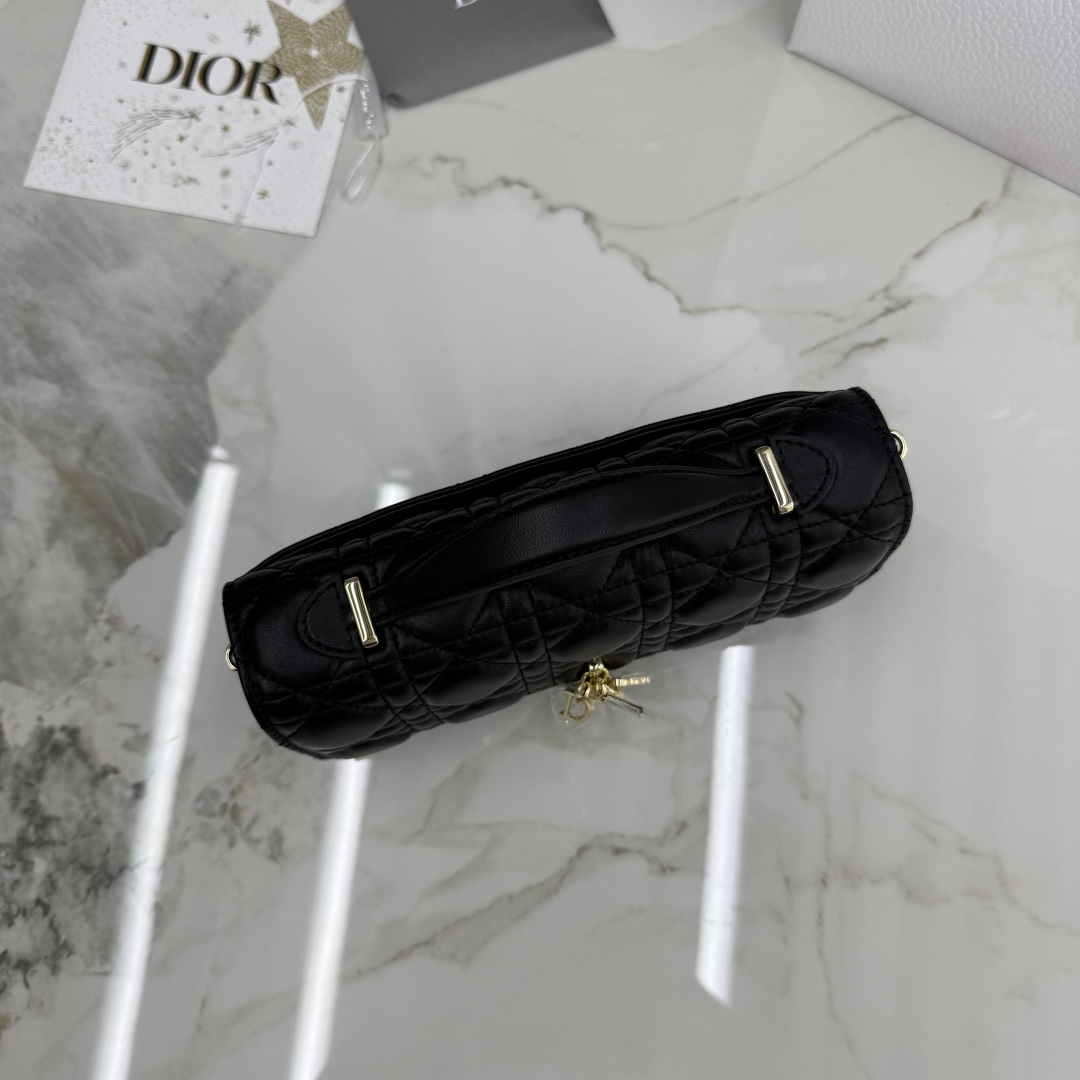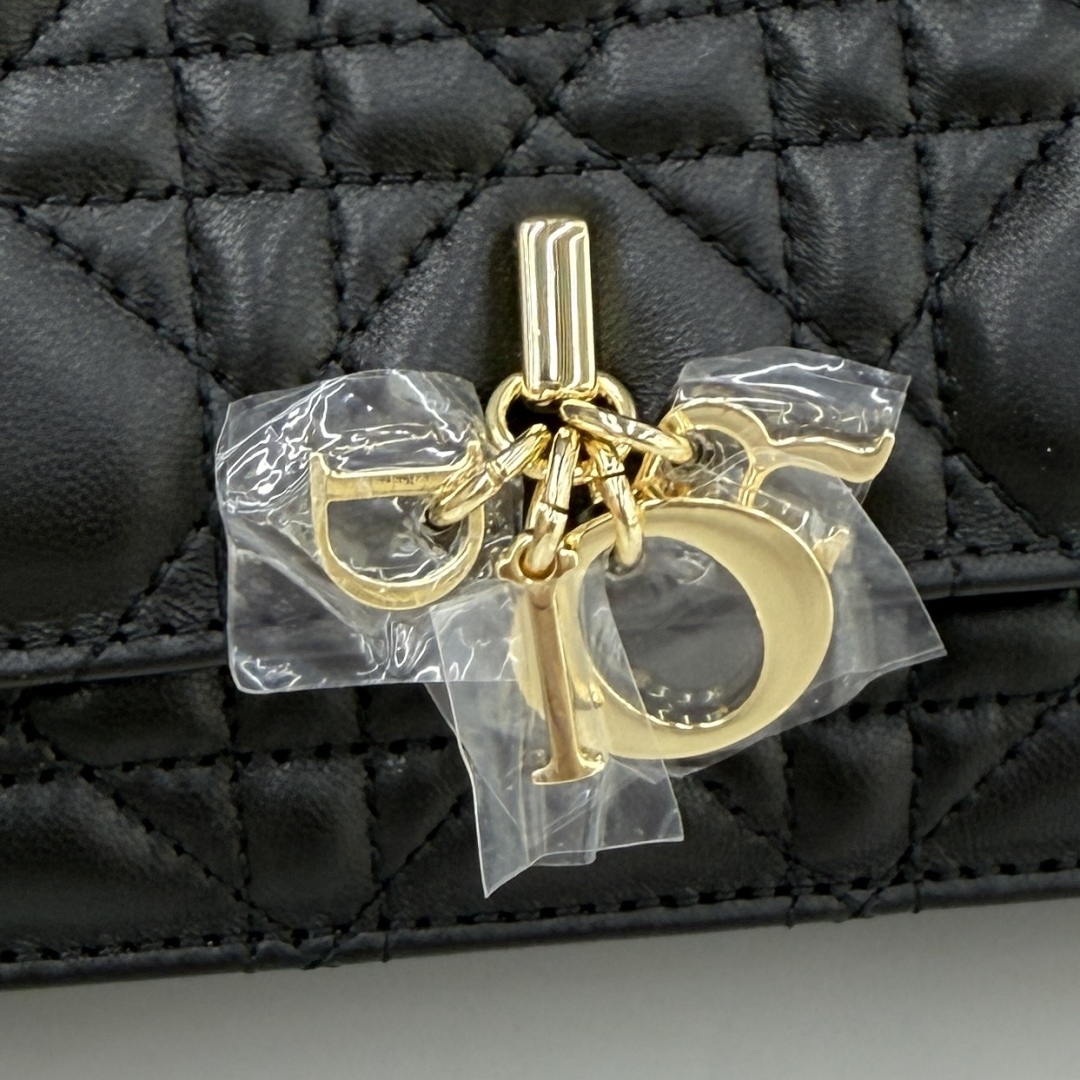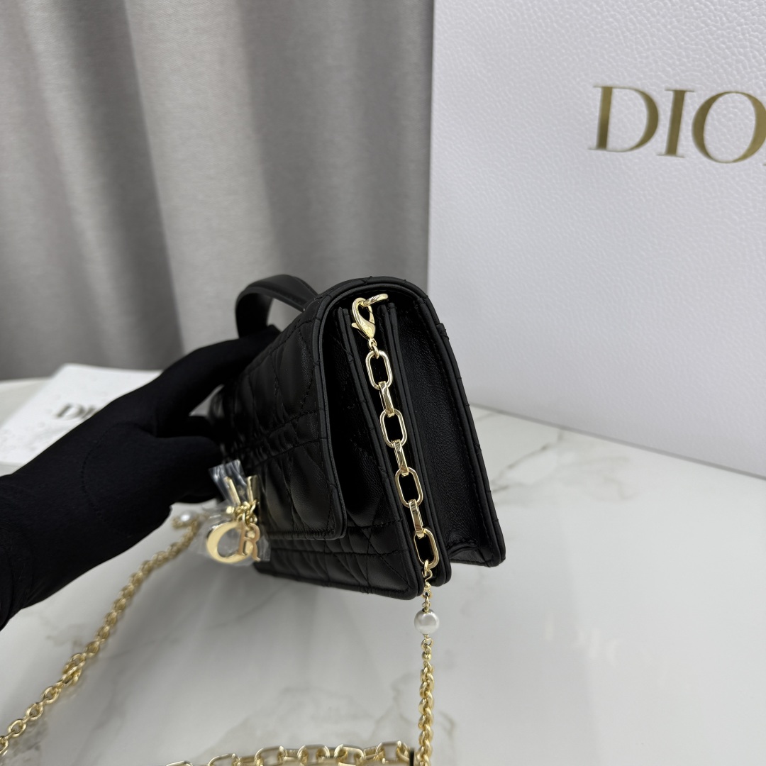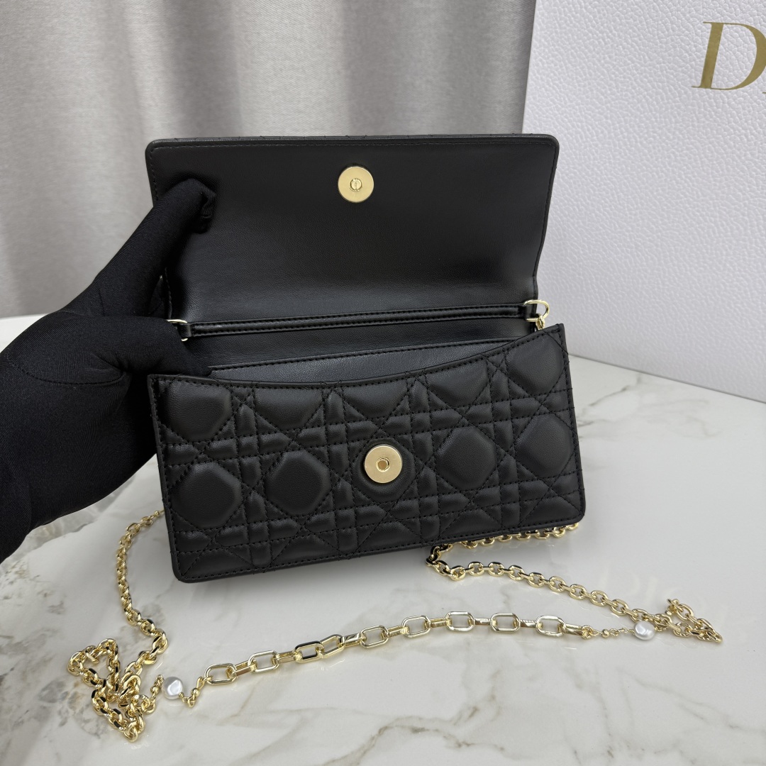 Lady Dior Pearl Embellished Lambskin Clutch with Chain - Black