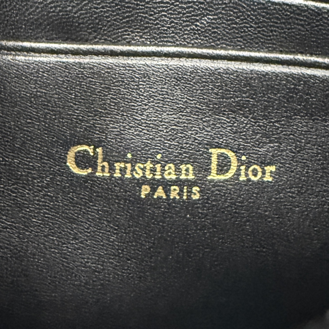Elevate your style with this Lady Dior clutch. Crafted in black lambskin with Cannage stitching and pearl chain. Perfect for day or night.