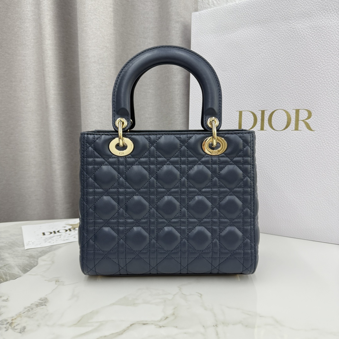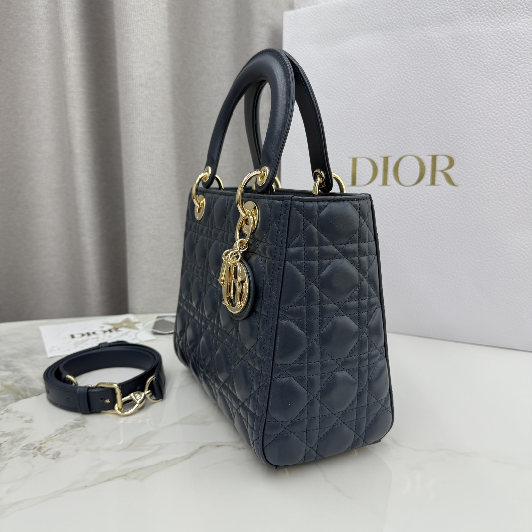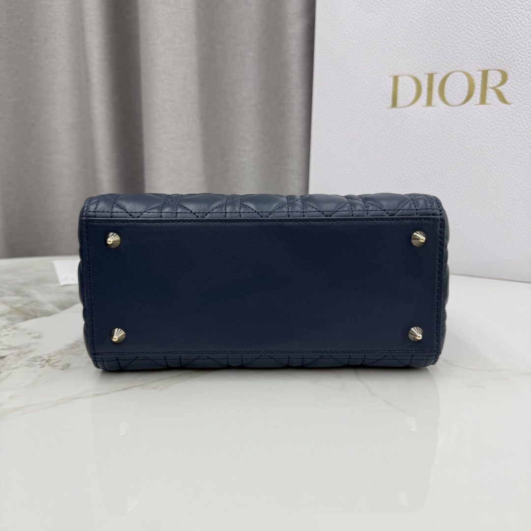 Lady Dior Top Handle Bag Blue Lambskin with Cannage Stitching, Medium