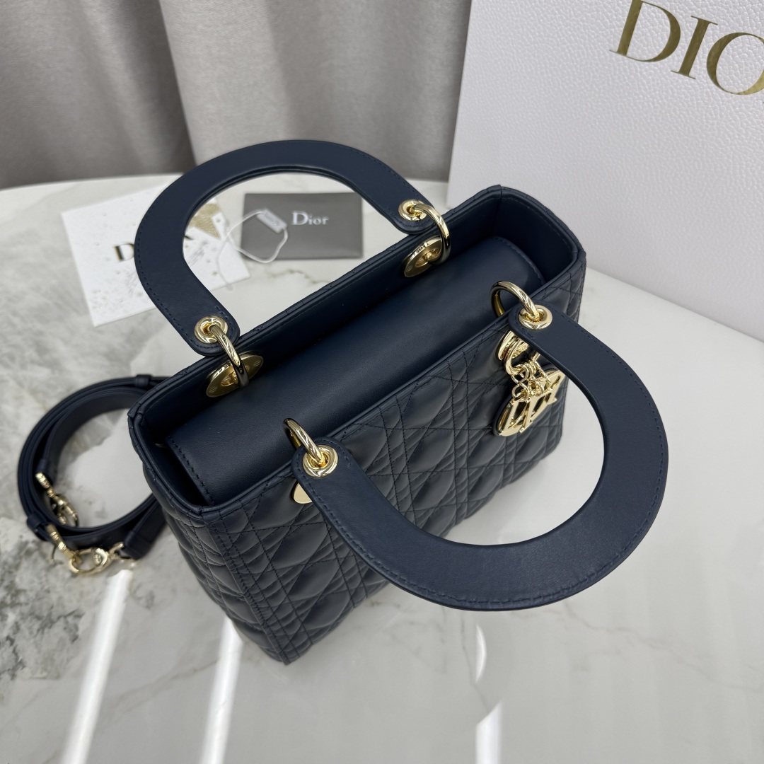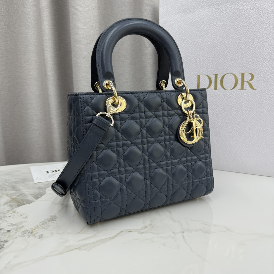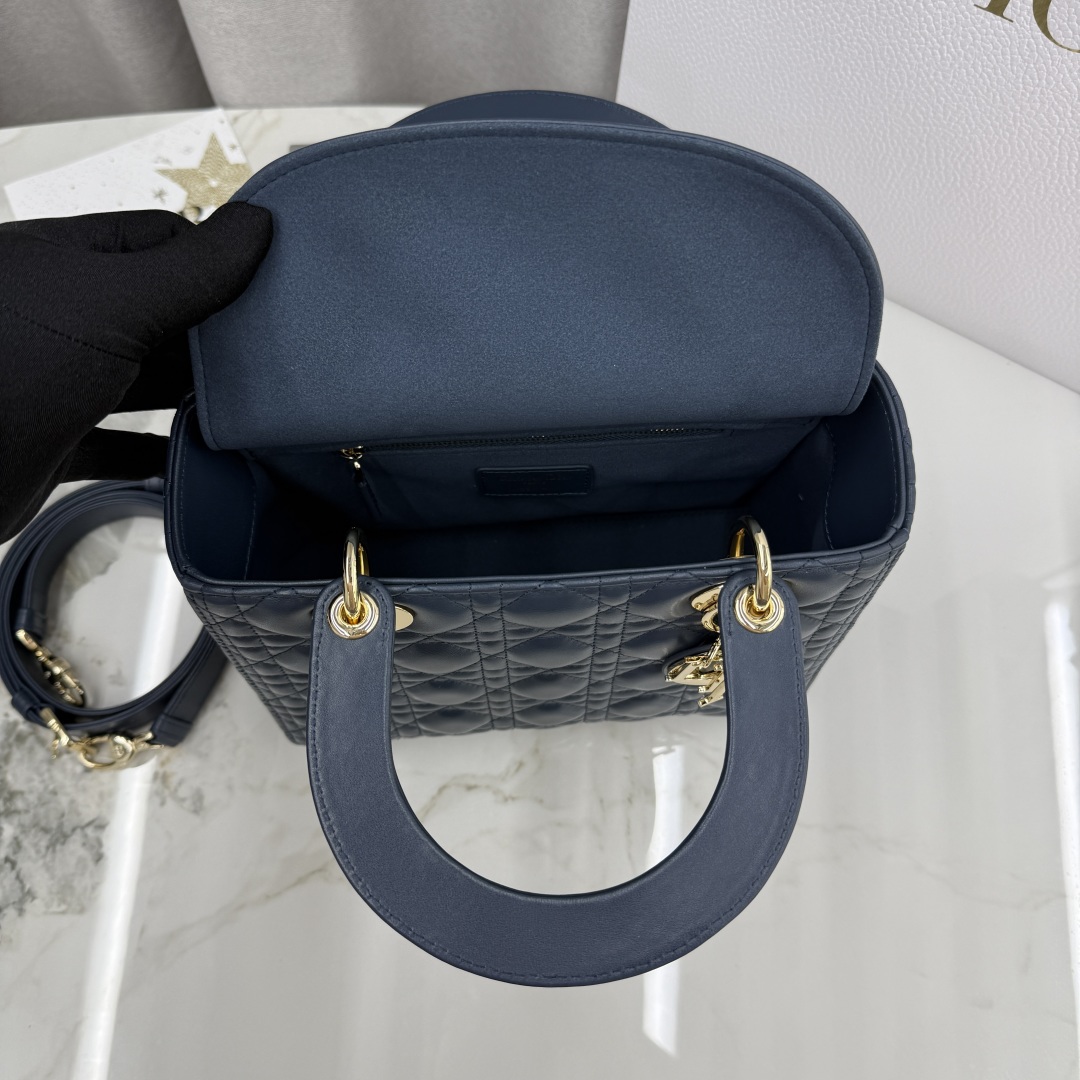 Lady Dior Top Handle Bag Blue Lambskin with Cannage Stitching, Medium