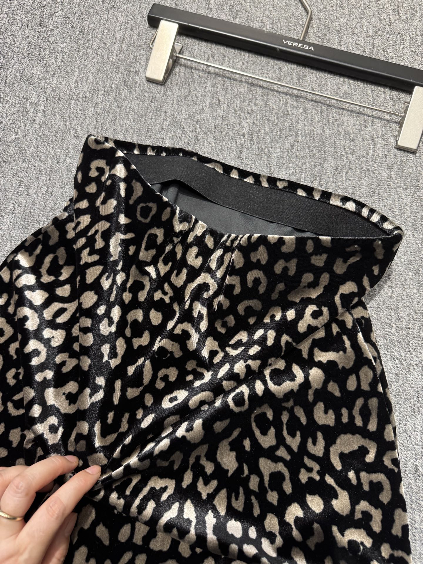This eye-catching leopard print A-line skirt is a must-have for the fashion-forward woman. Its bold print and flattering cut make it perfect for both day and night.