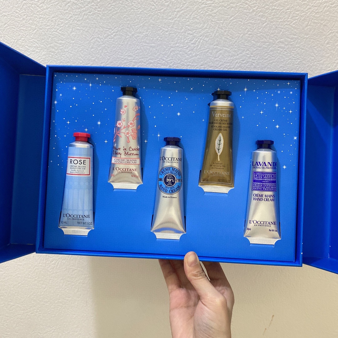 Indulge in the L'Occitane Christmas Gift Set. This 5-piece hand cream collection offers rich hydration and delightful scents. Perfect for gifting or treating yourself!