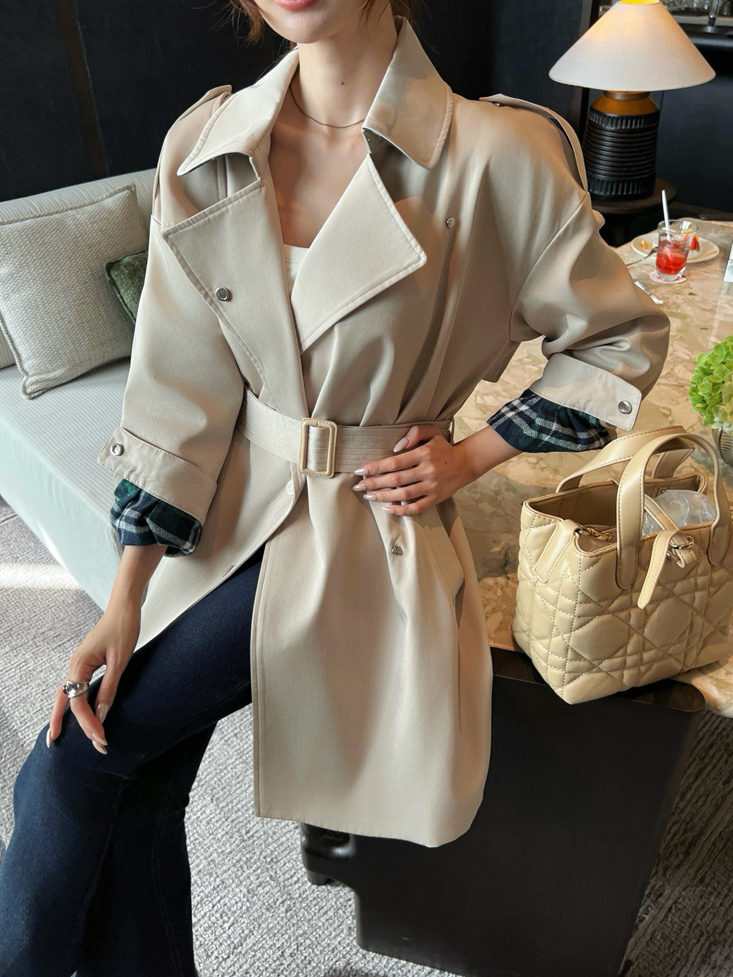 I absolutely love this trench coat! The fit is perfect, and the plaid lining adds a touch of elegance. It's so versatile and goes with everything.