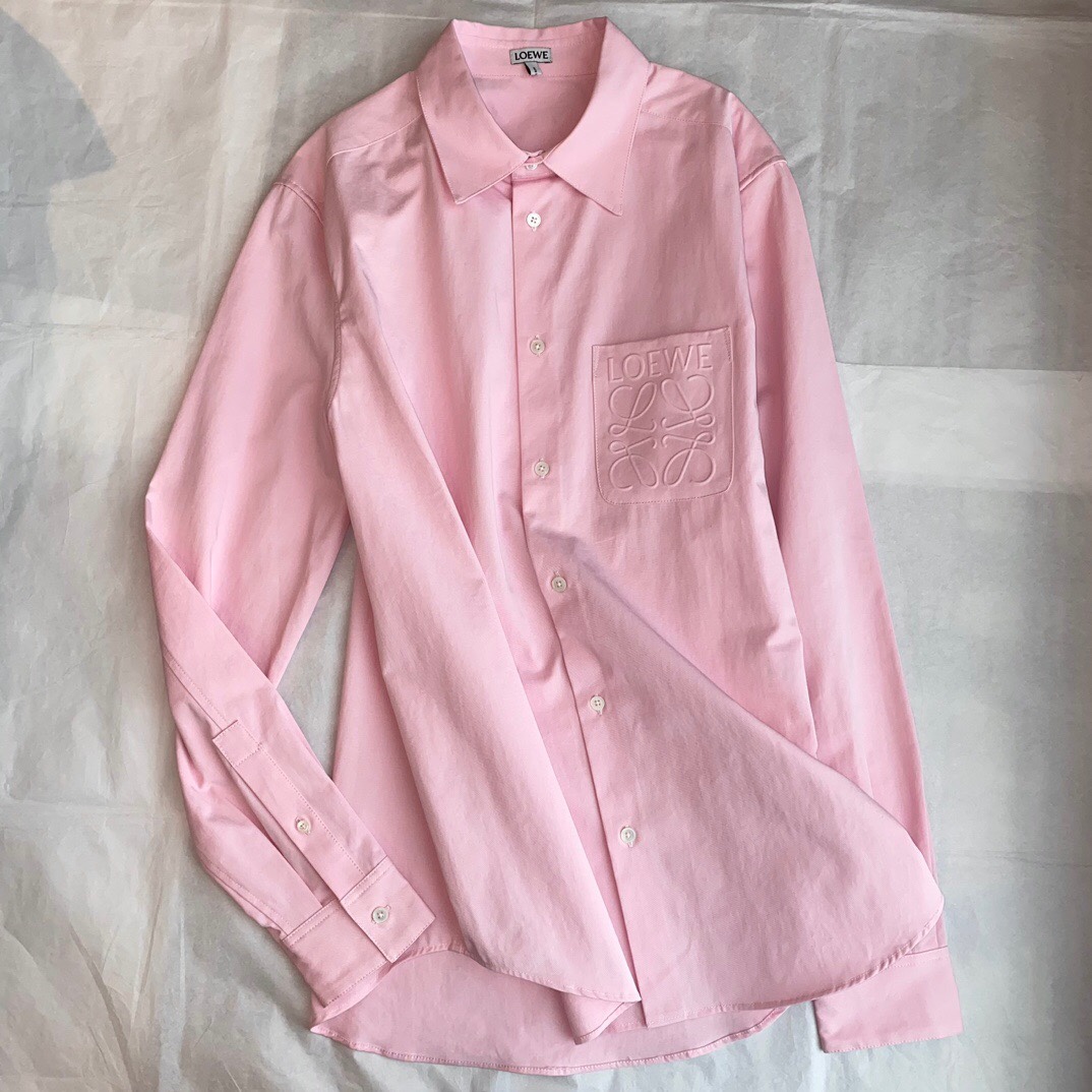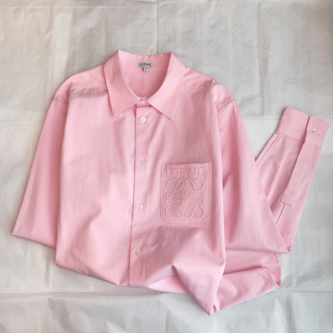 Loewe Anagram Embossed Shirt - Pink, Custom Twill Fabric, Handmade Detailing