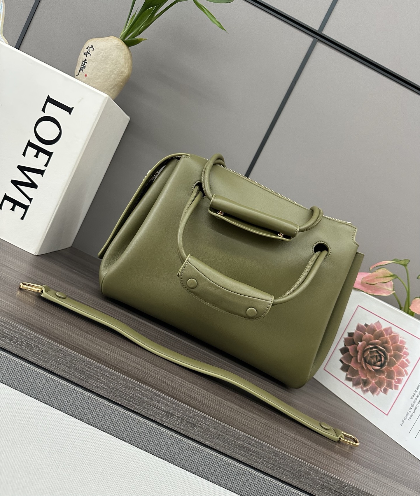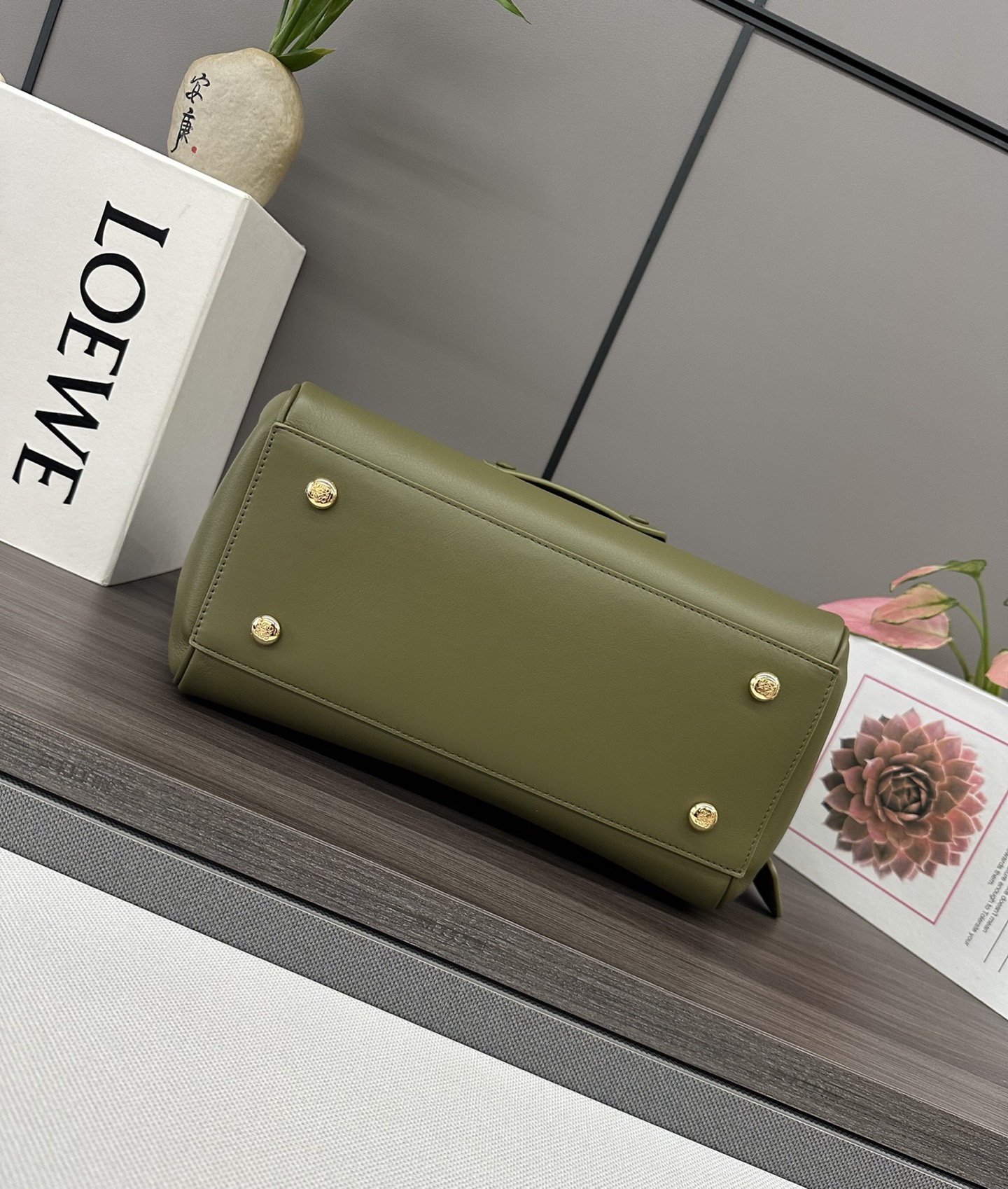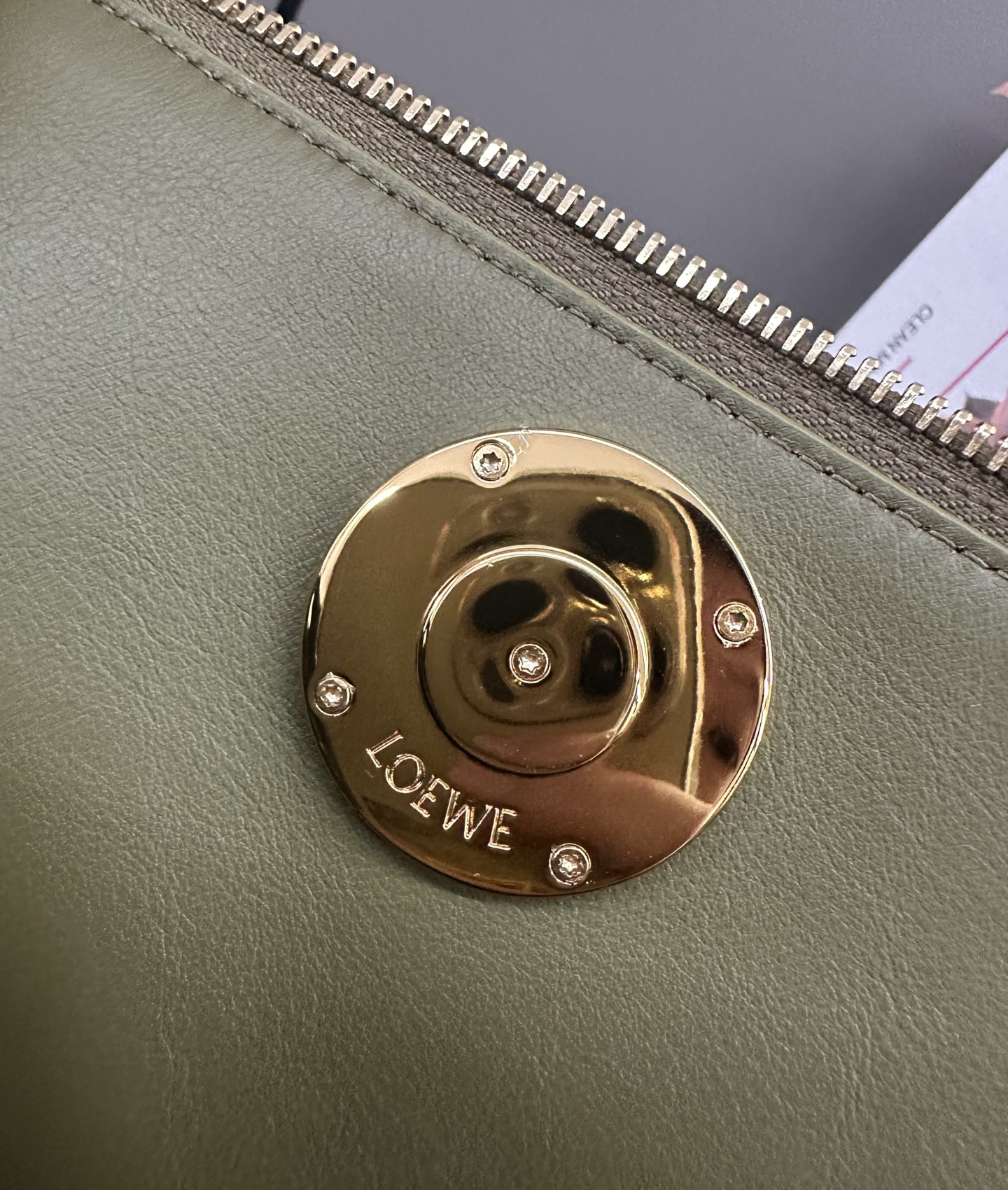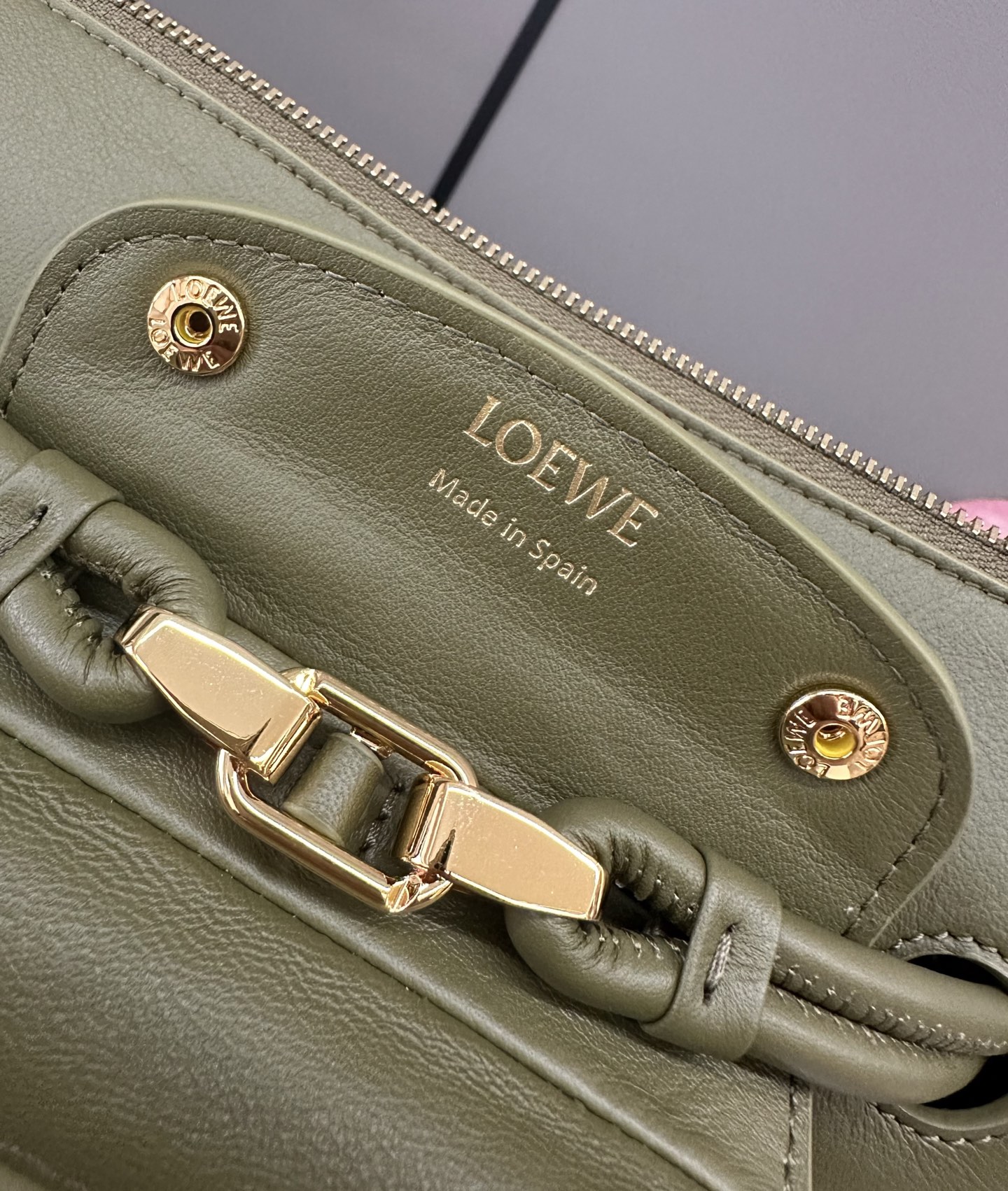 Tags: Adjustable Strap Bag, Designer trapezoid bag, Loewe Madrid Handbag, Luxury olive green bag, Medium Size Handbag, Soft leather shoulder bag
