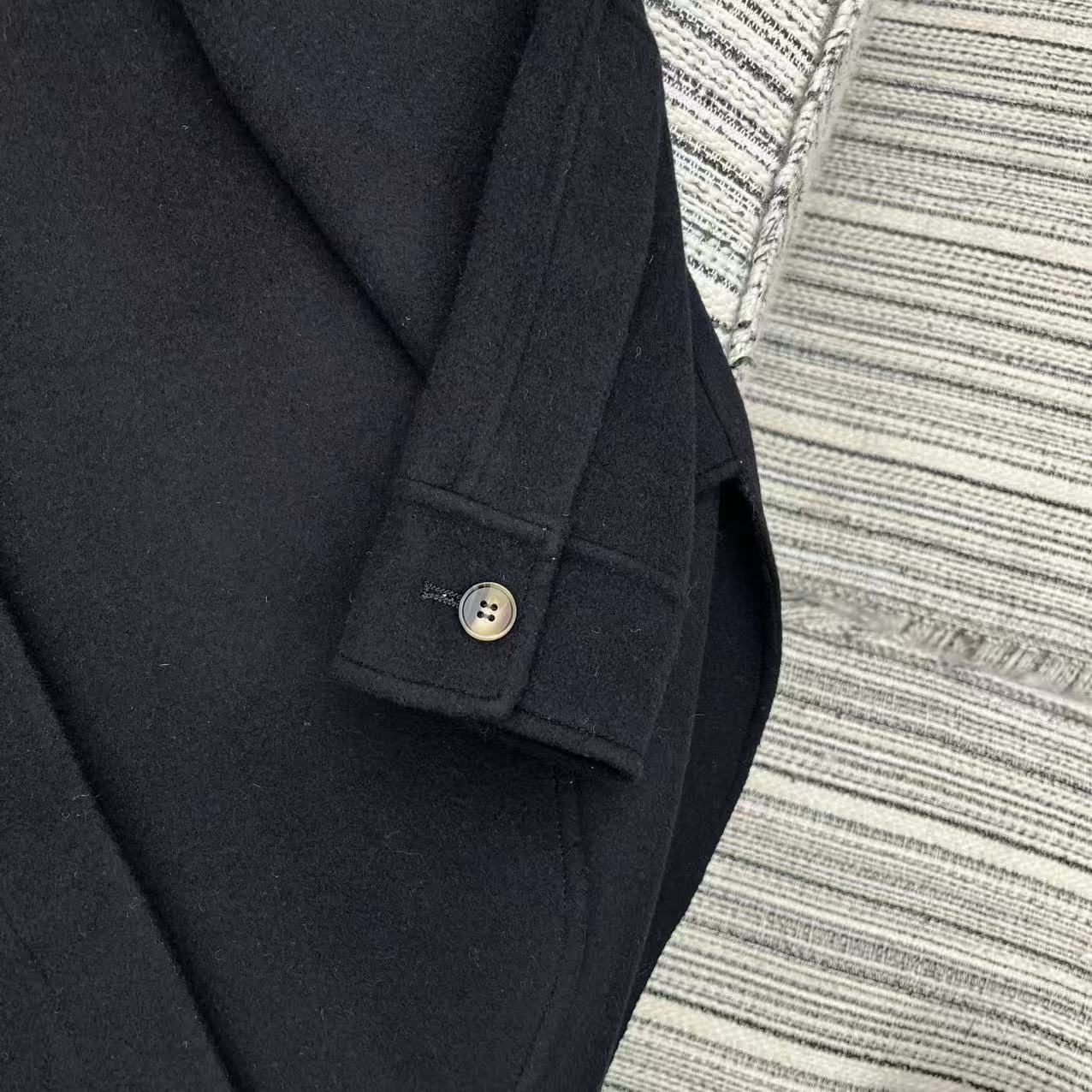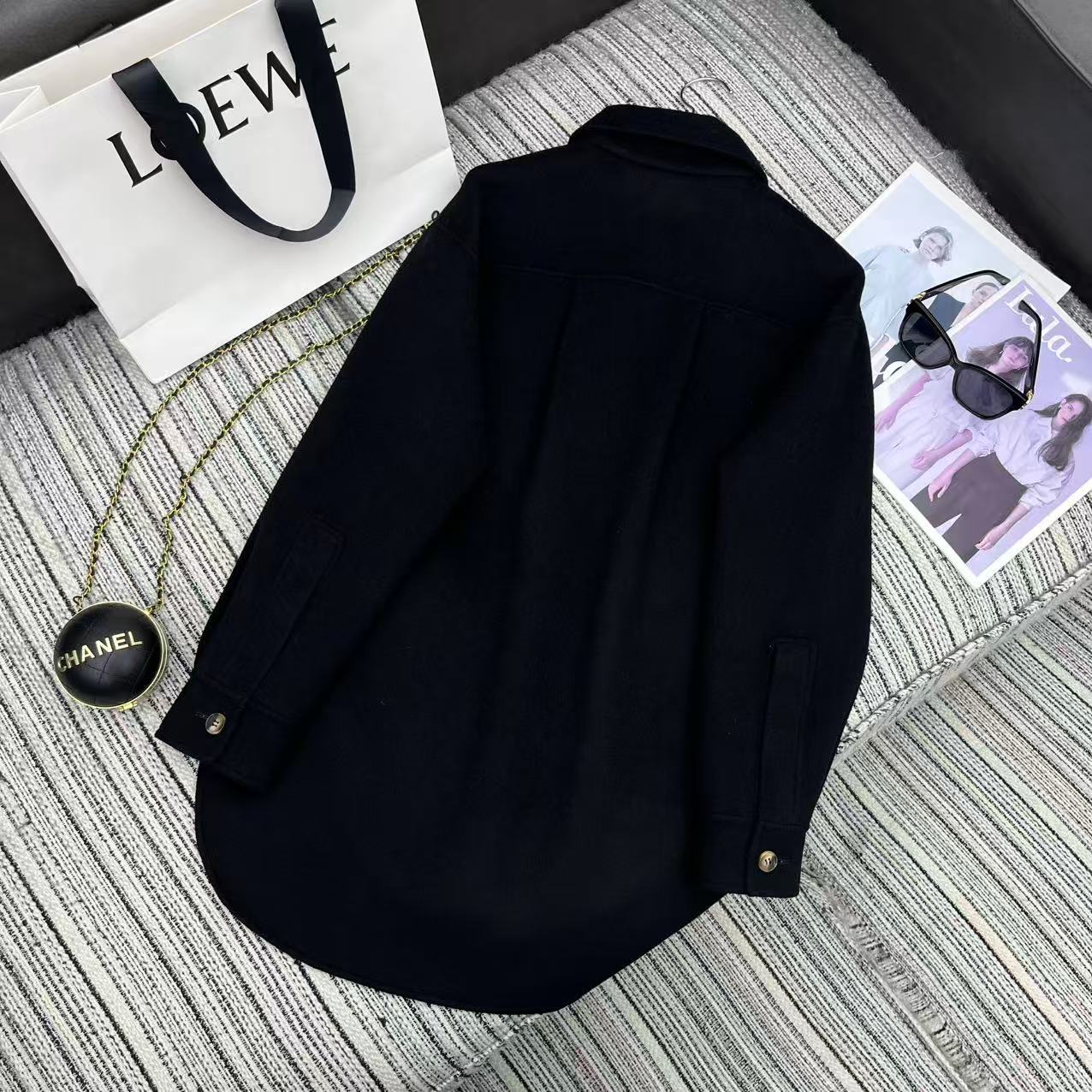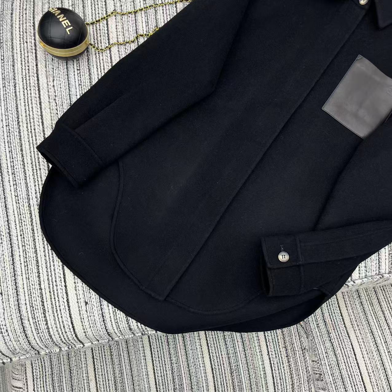 Tags: Autumn Shirt Jacket, Designer Wool Outerwear, High low hem top, Lambskin Pocket Shirt, Loewe Wool Jacket