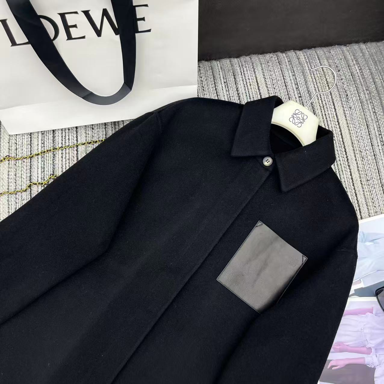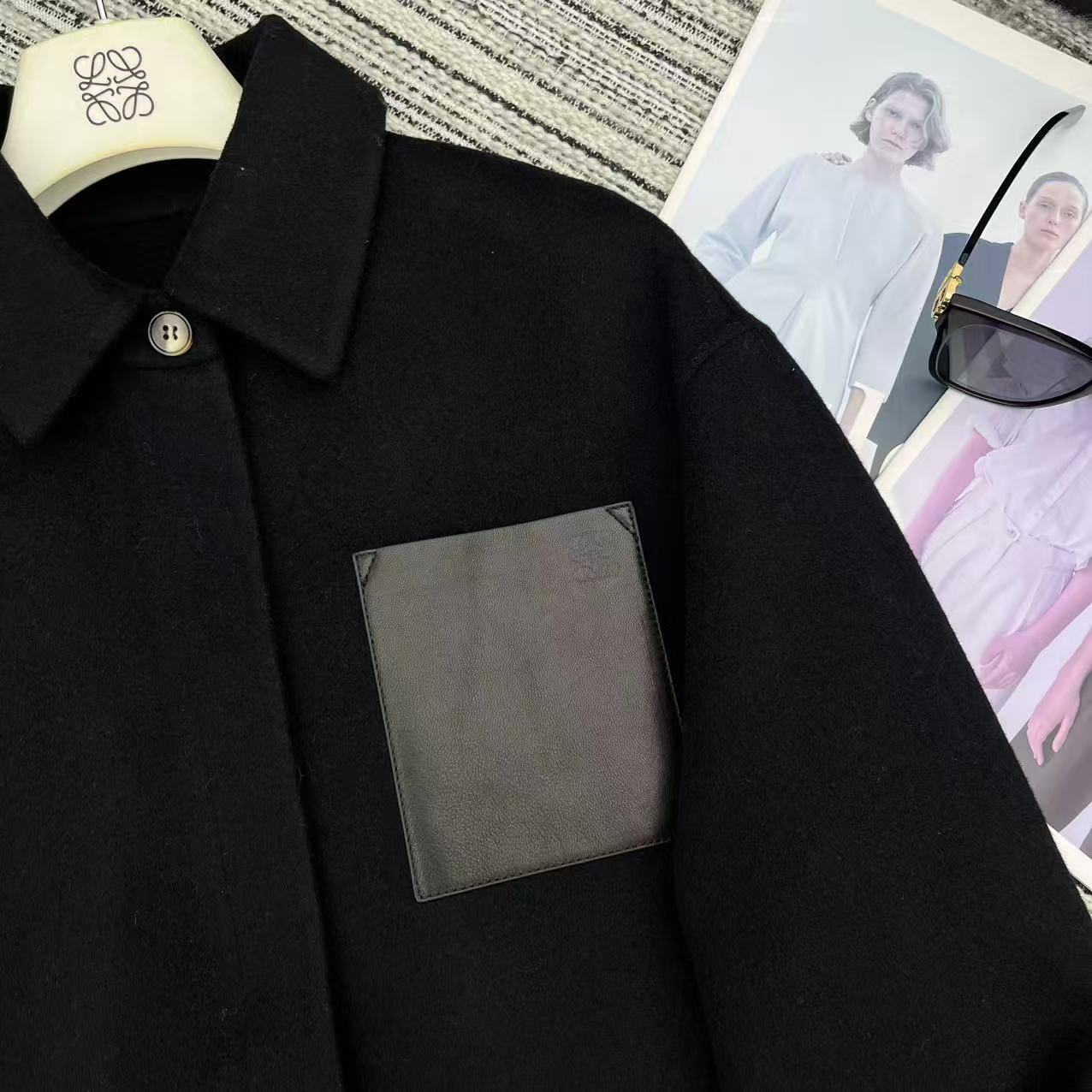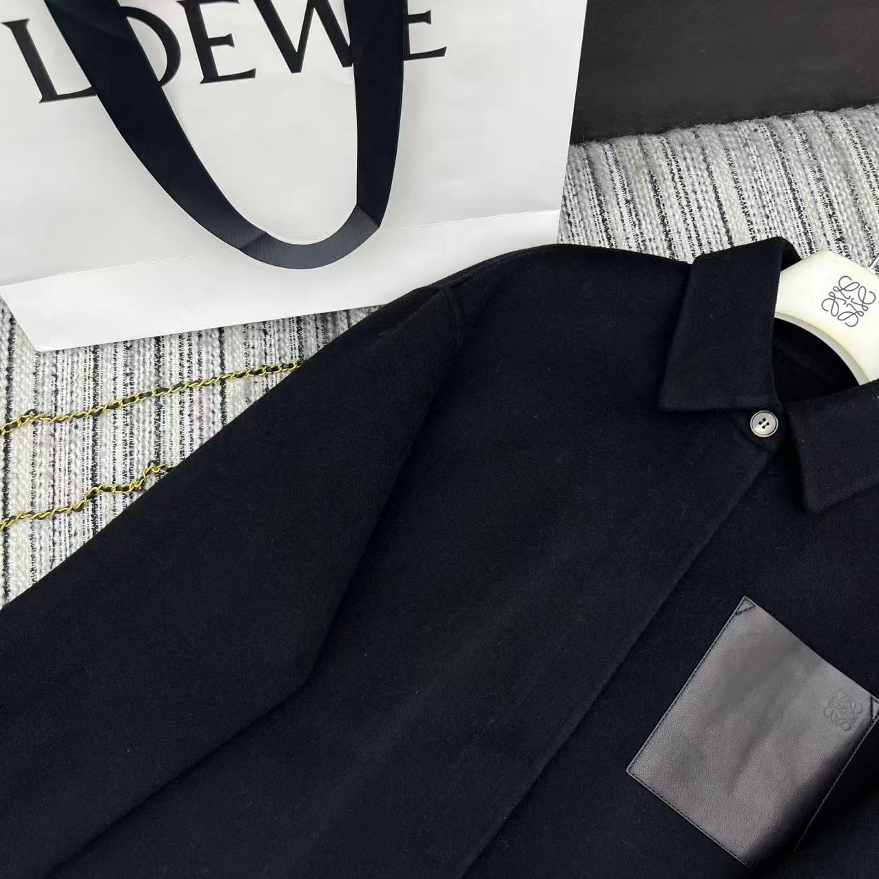 LOEWE Women's 2025 Wool Shirt Jacket with Lambskin Pocket - Early Autumn