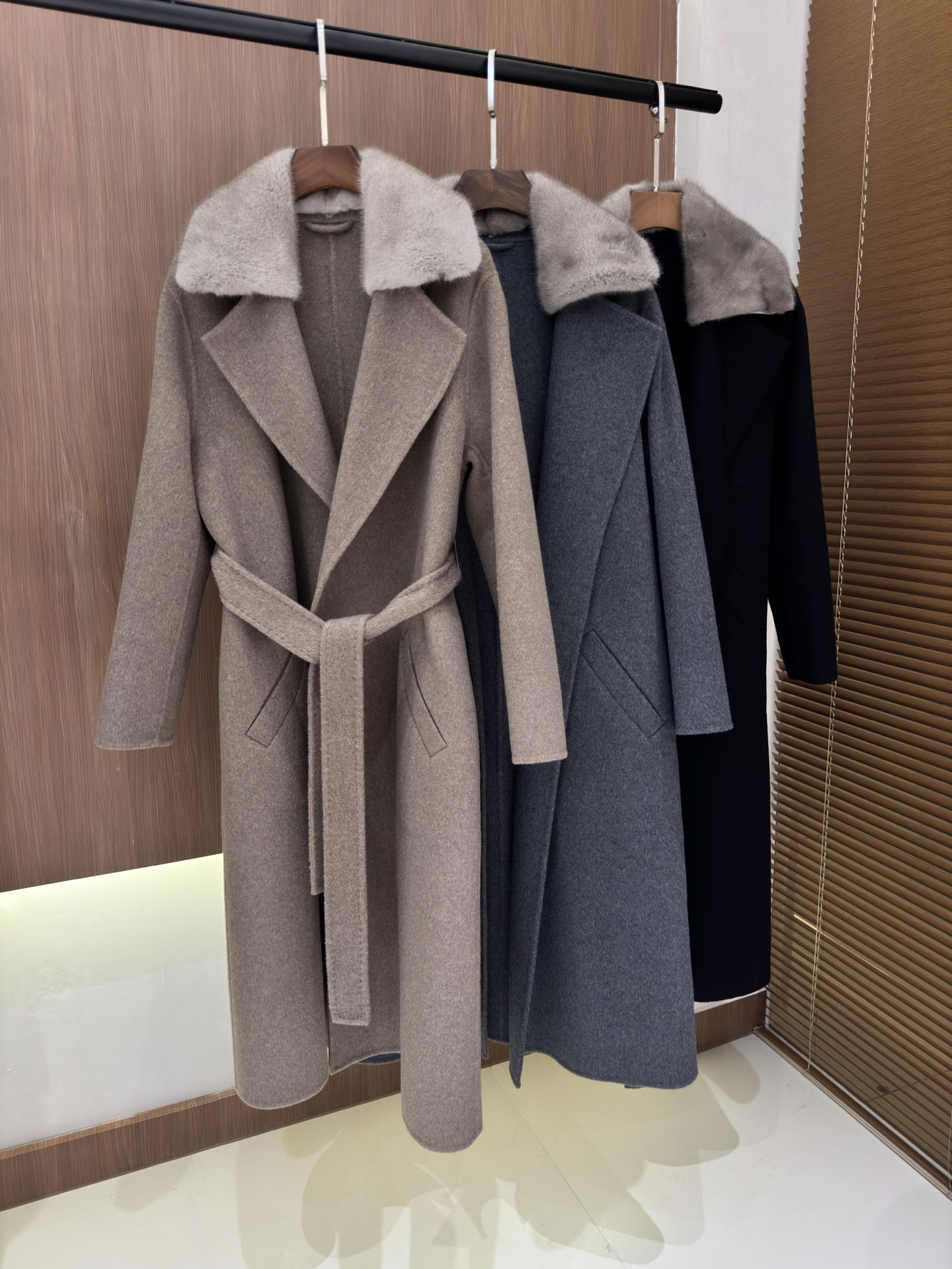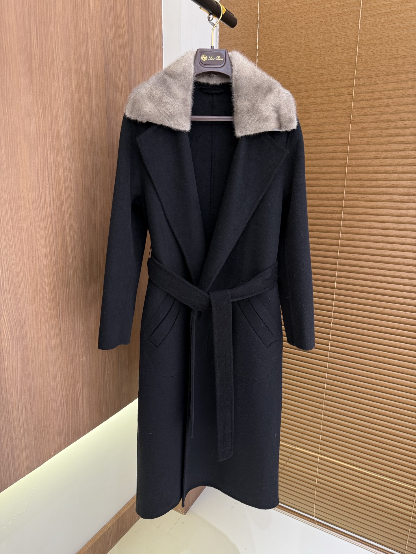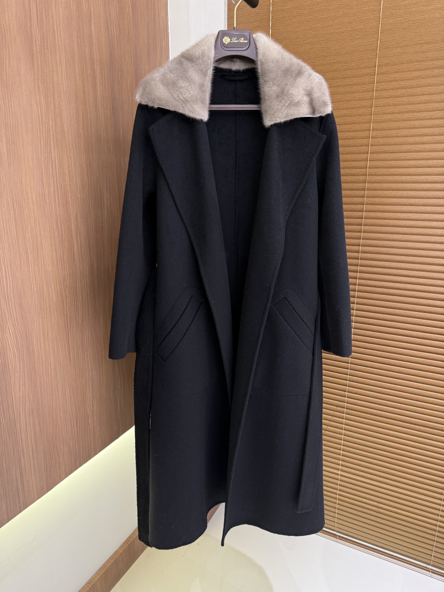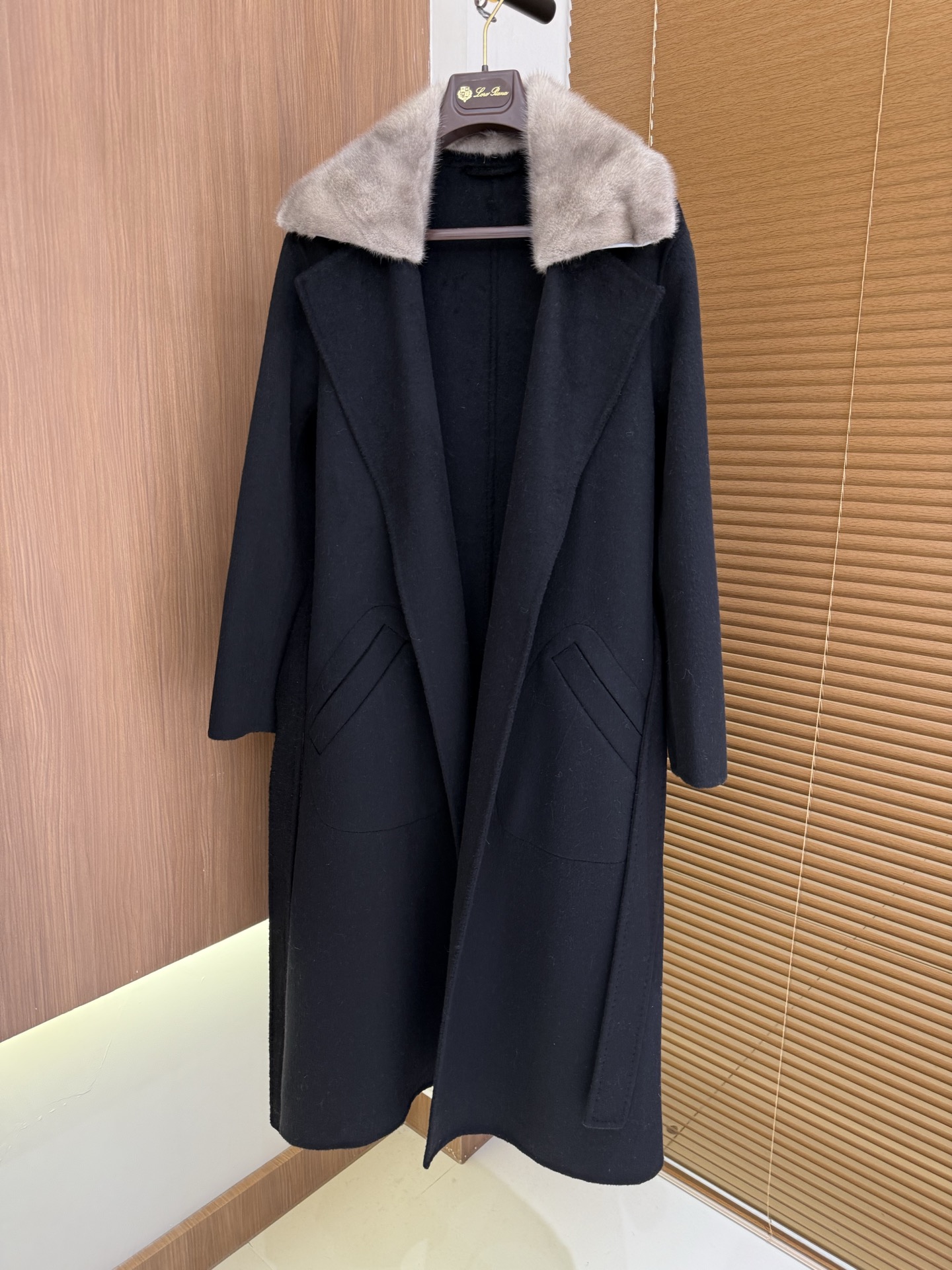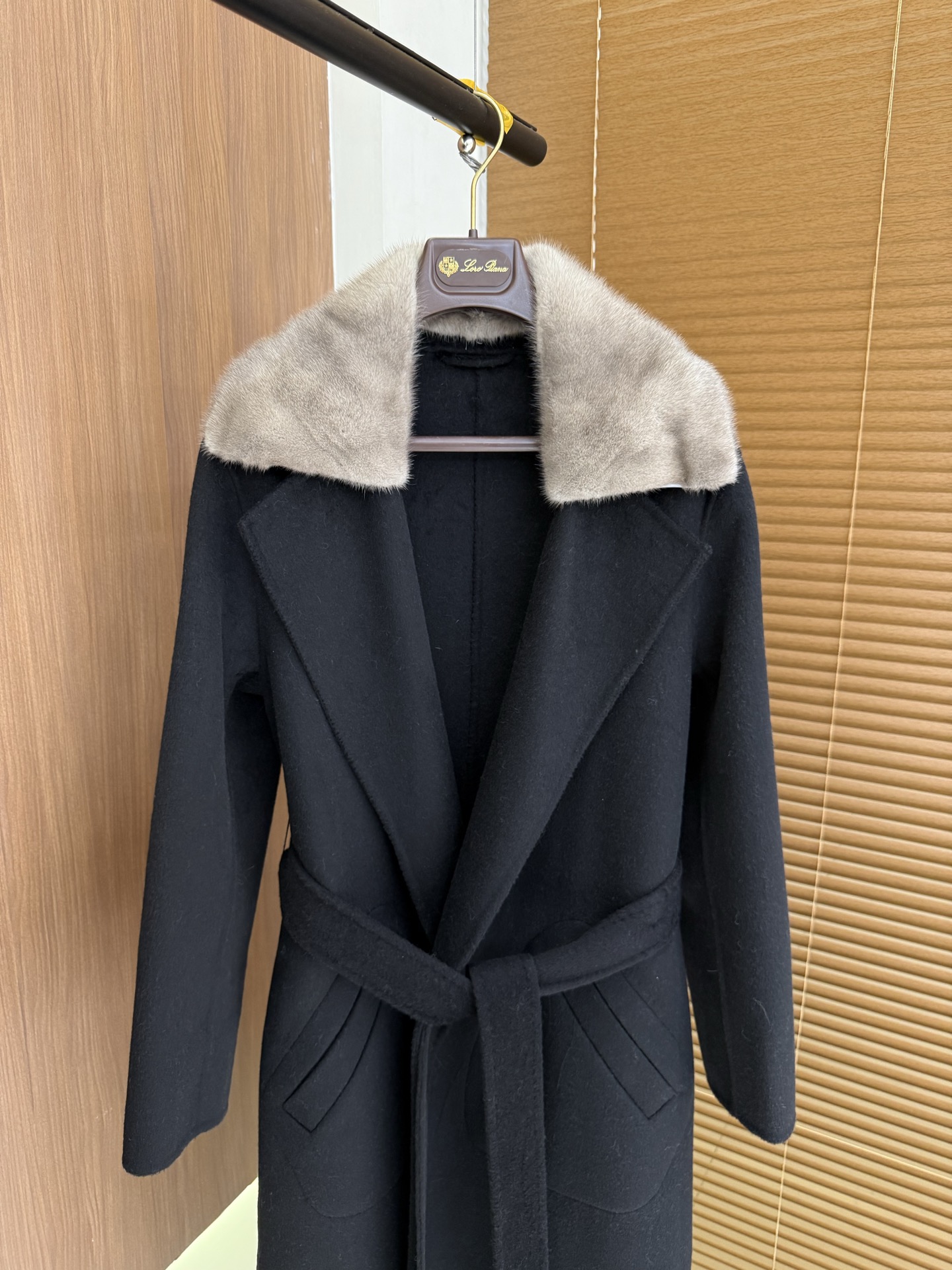 Loro Piana 2025 Cashmere Coat with Mink Fur Collar - Elegant and Warm