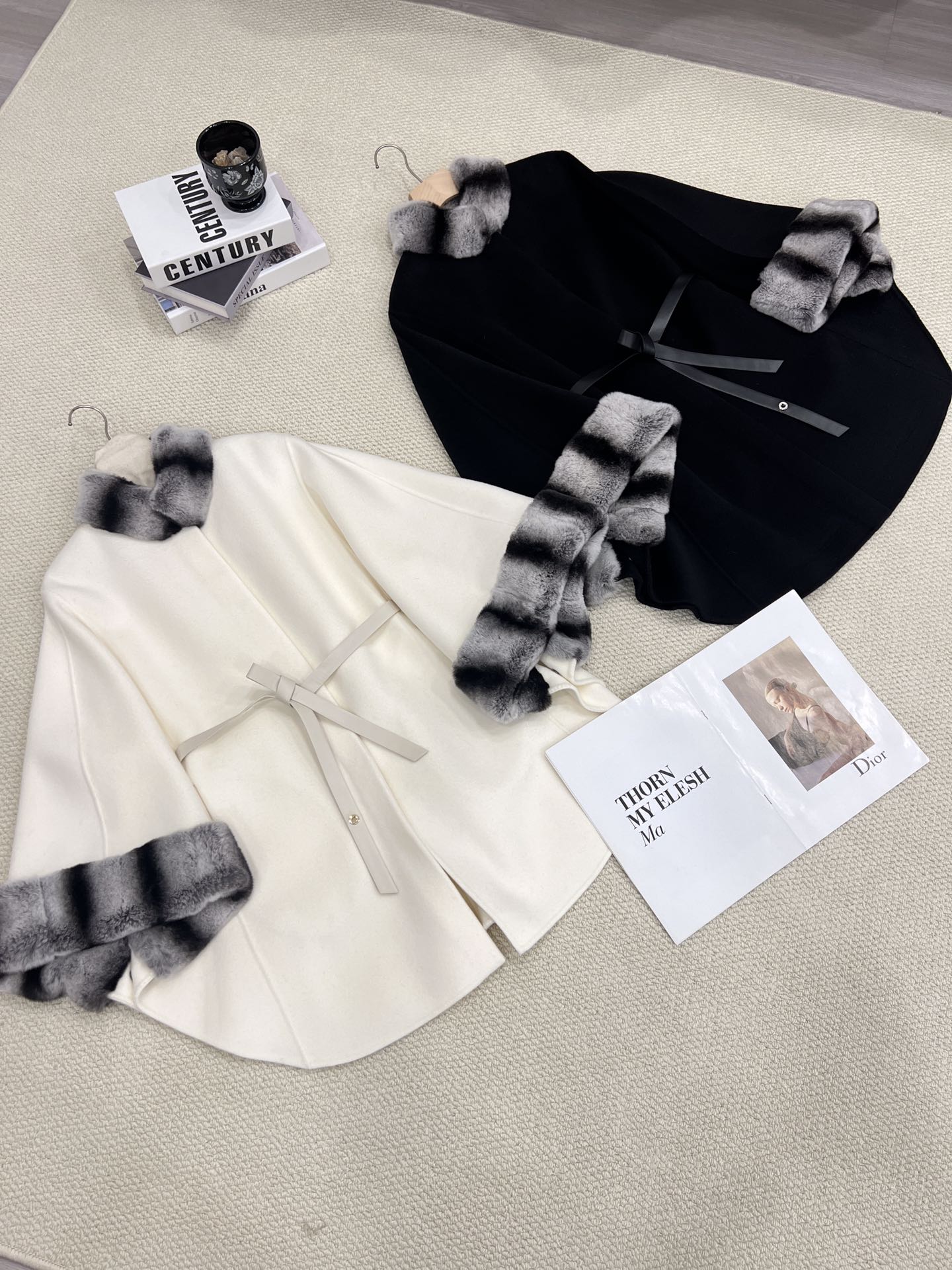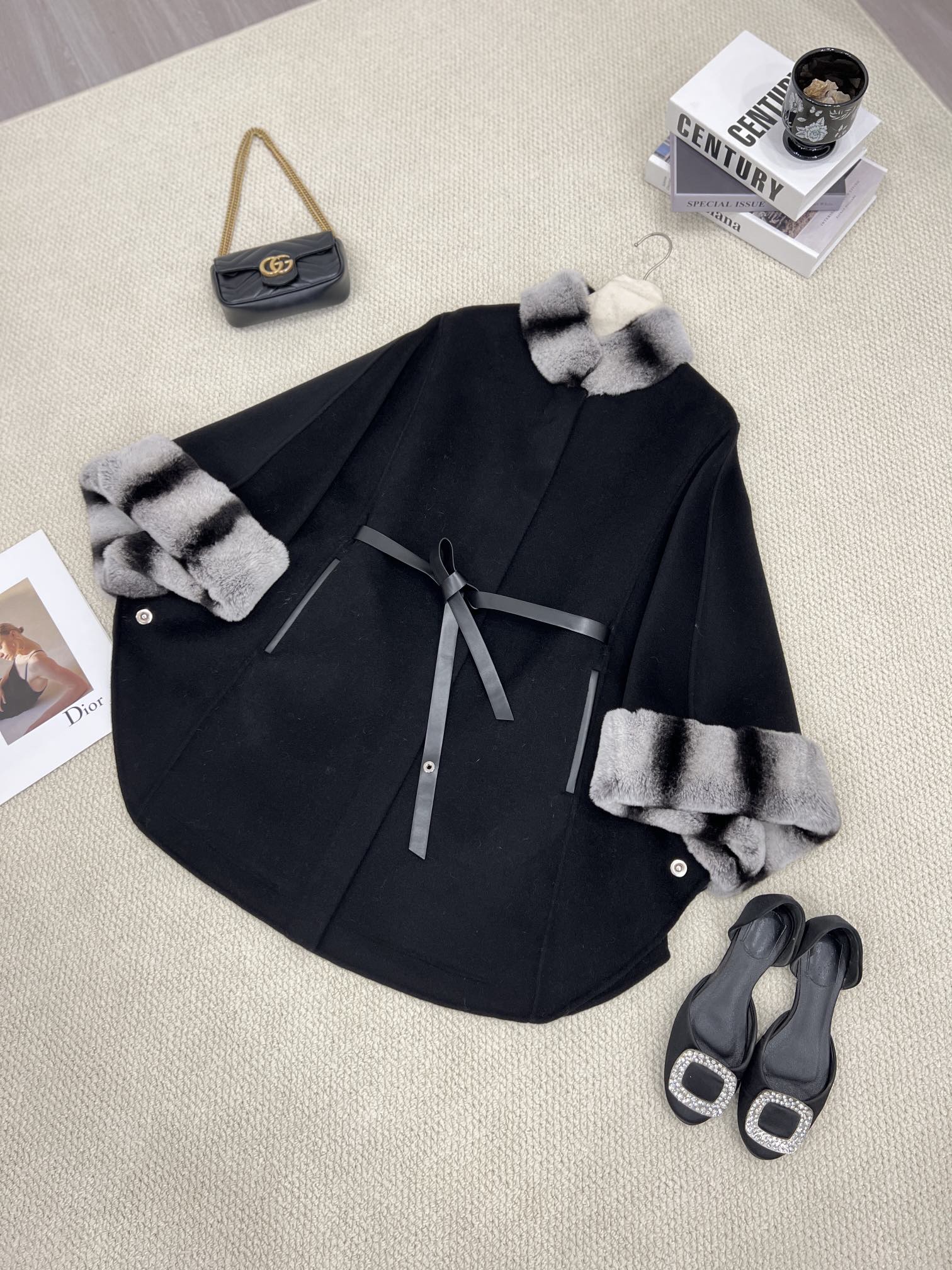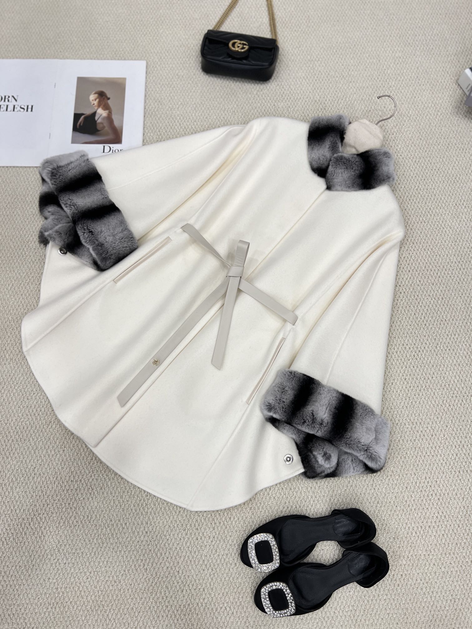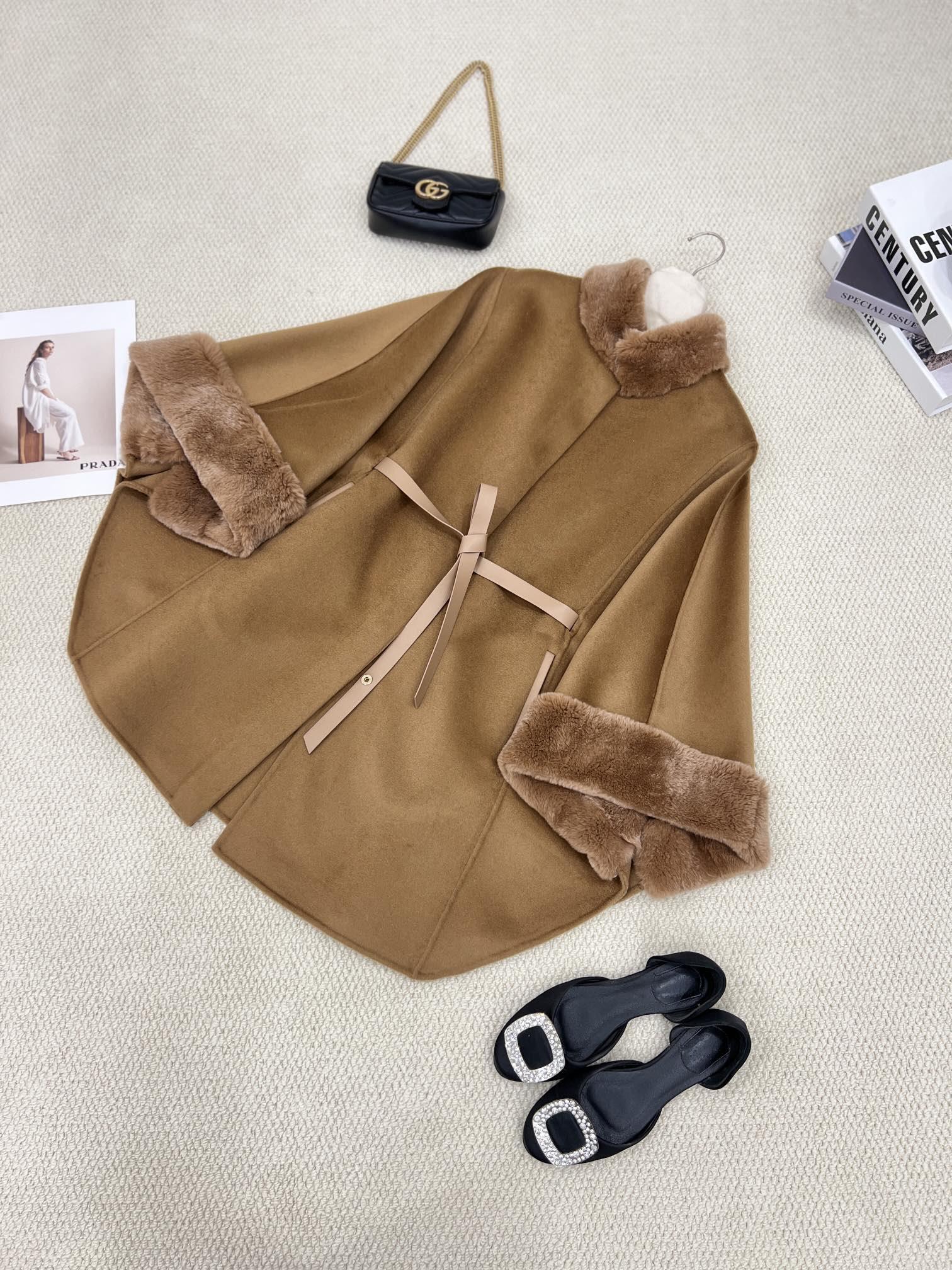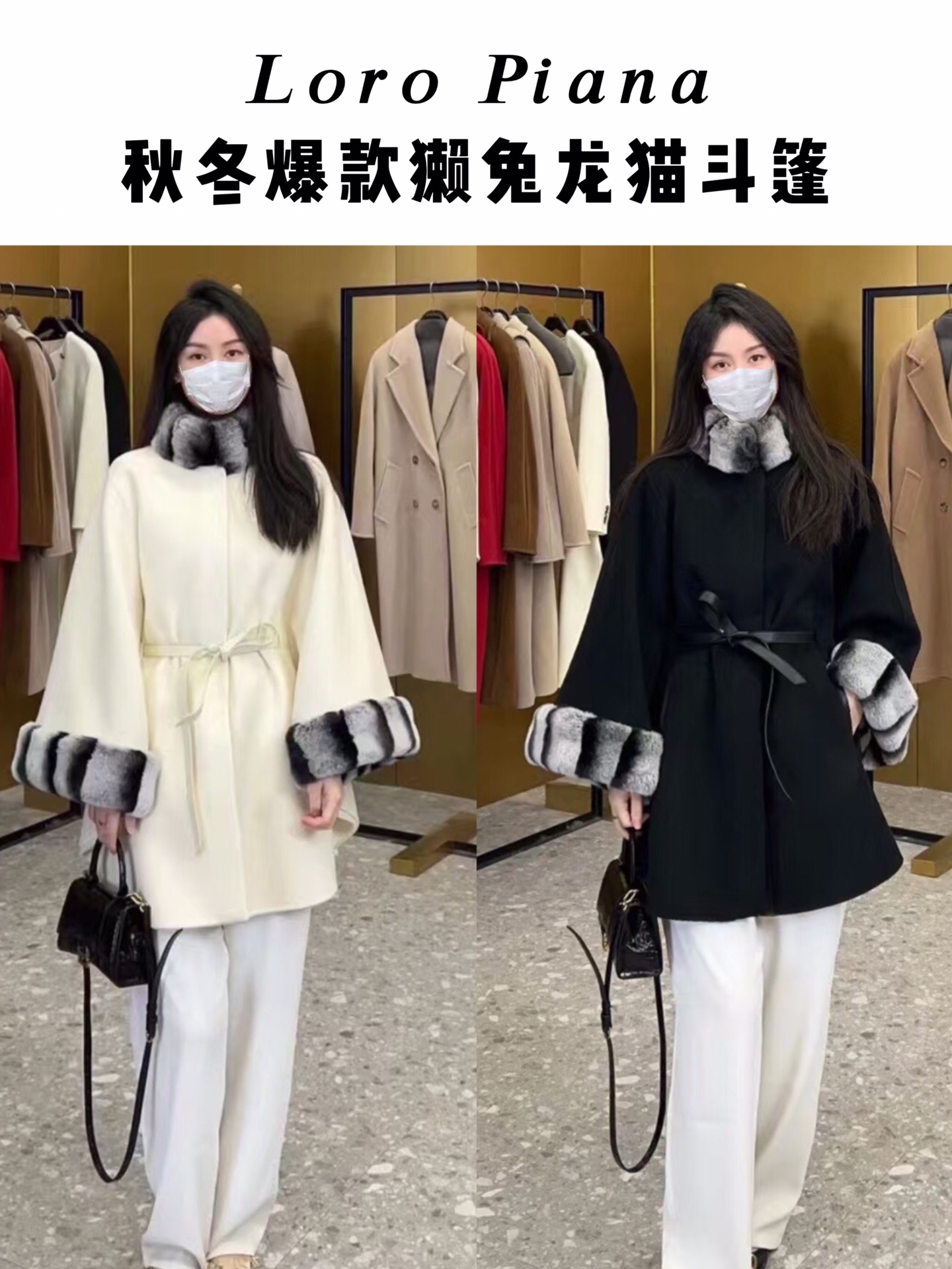 Loro Piana 2025 Fall/Winter Cape with Fur Trim, Luxurious and Elegant