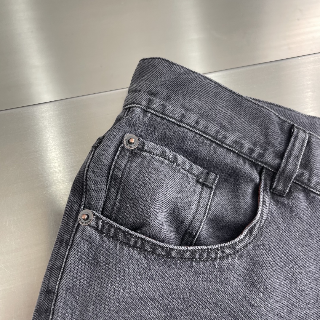 These Loro Piana jeans blend high fashion with everyday comfort. Crafted from a unique smoke gray denim, these jeans offer a sophisticated yet relaxed look. The soft cotton blend ensures all-day comfort, while the slim fit provides a modern silhouette.