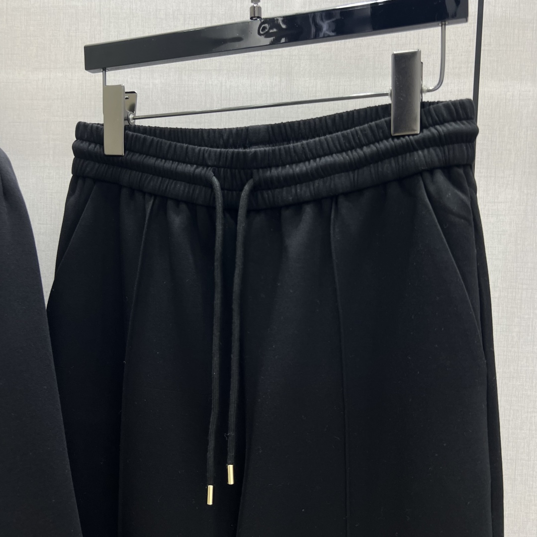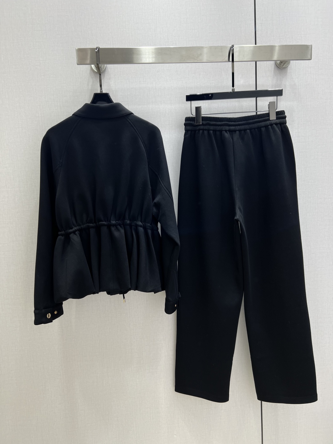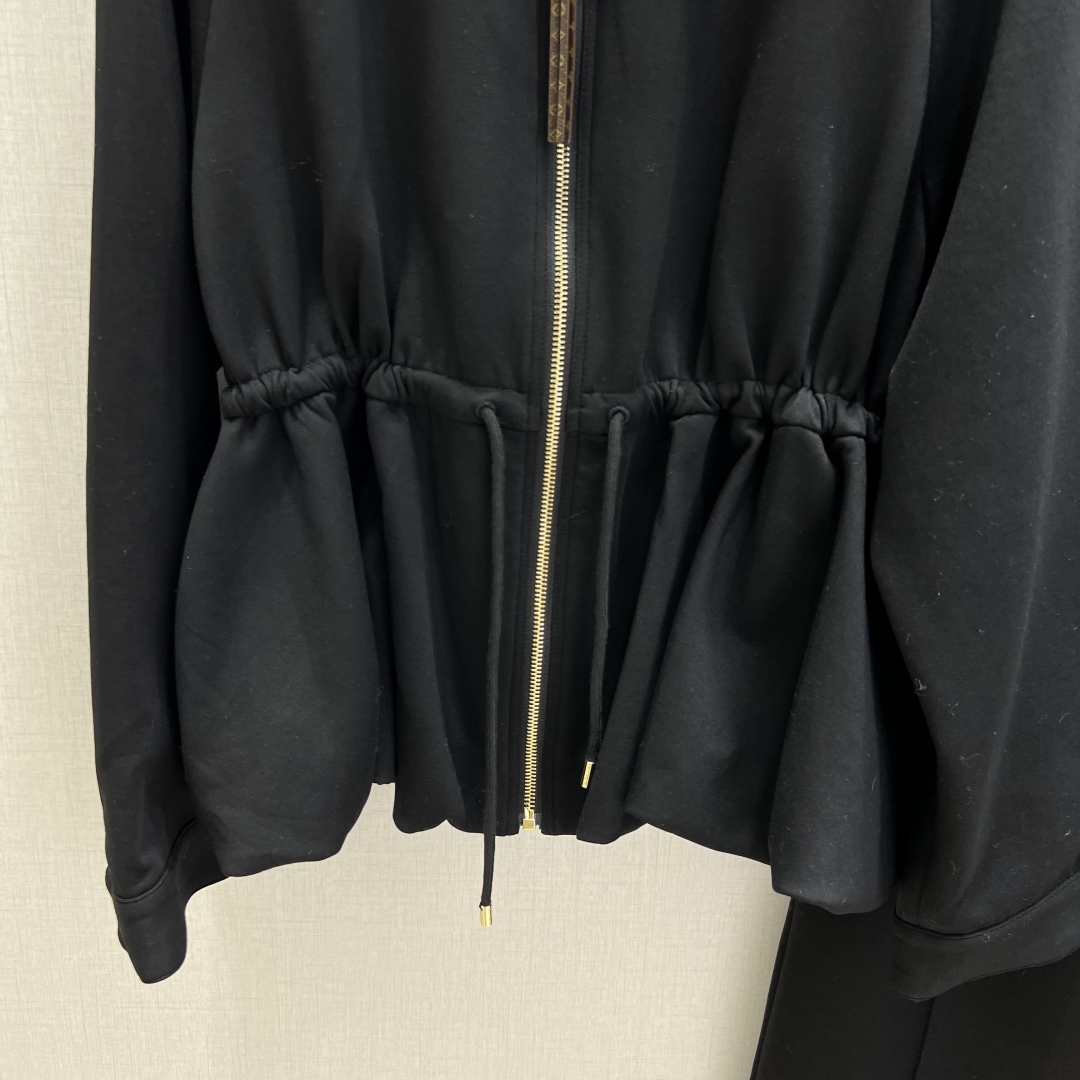 Elevate your wardrobe with this stylish Louis Vuitton 2025 early autumn set. Features a flower bud jacket and drawstring straight-leg pants for a chic look.
