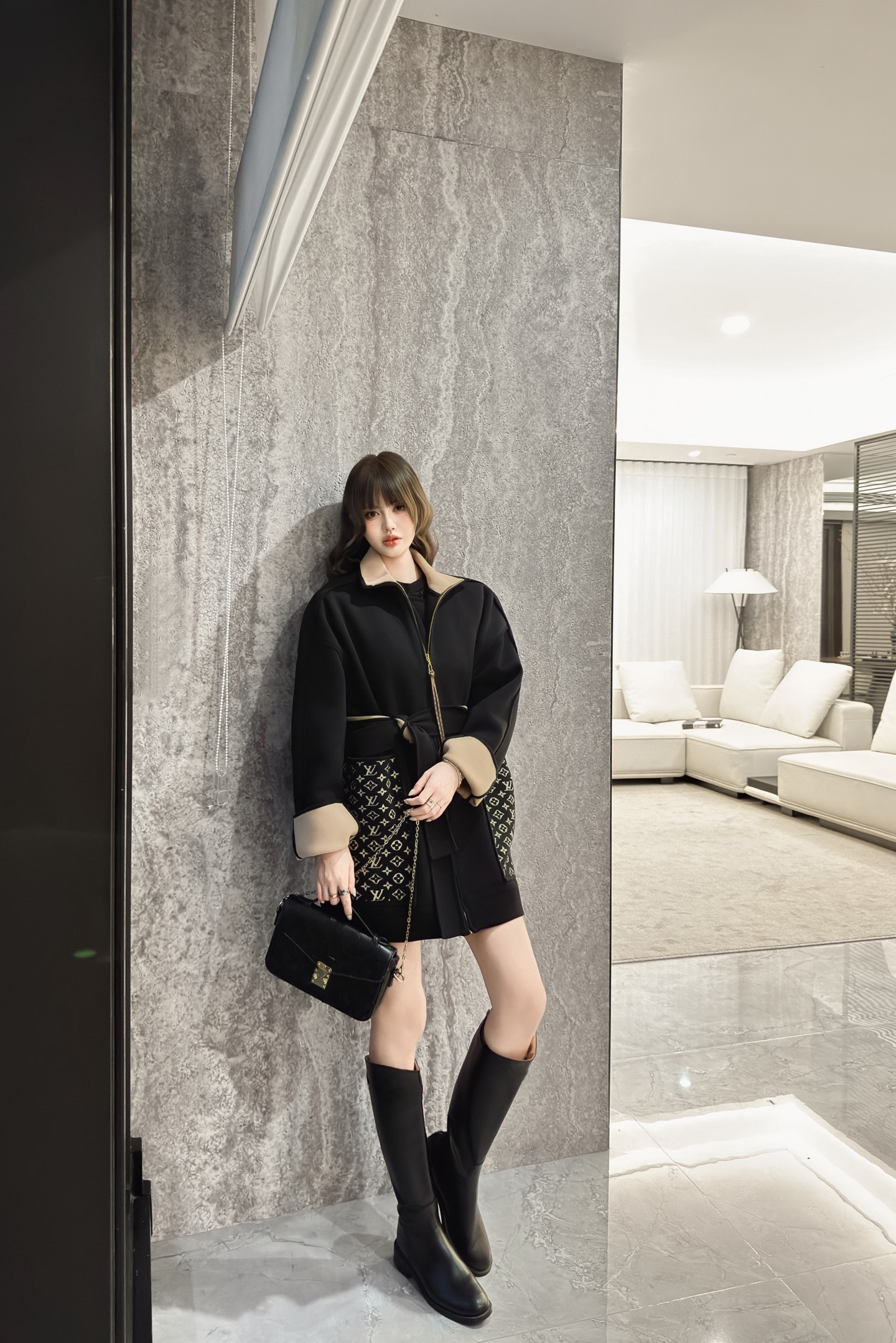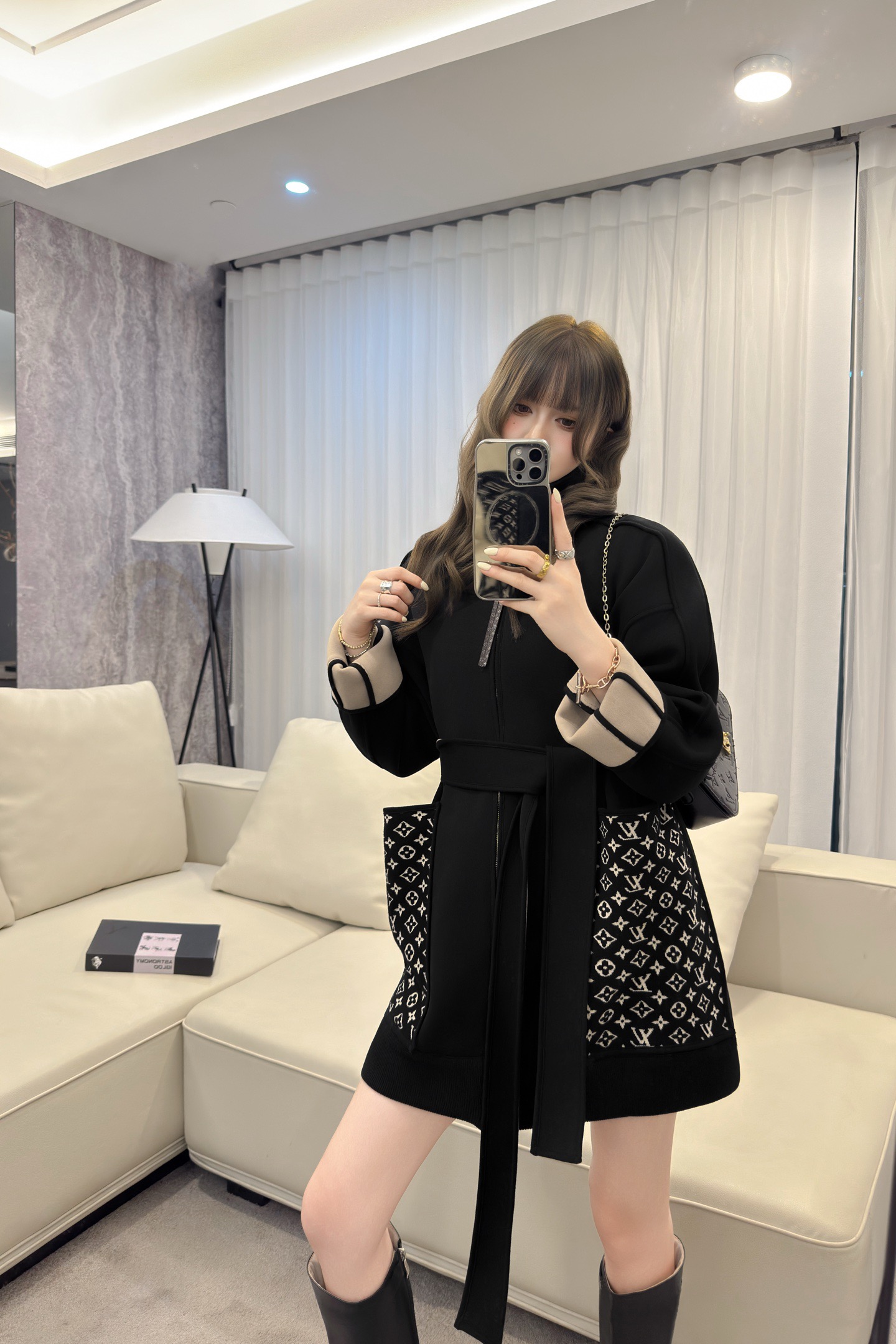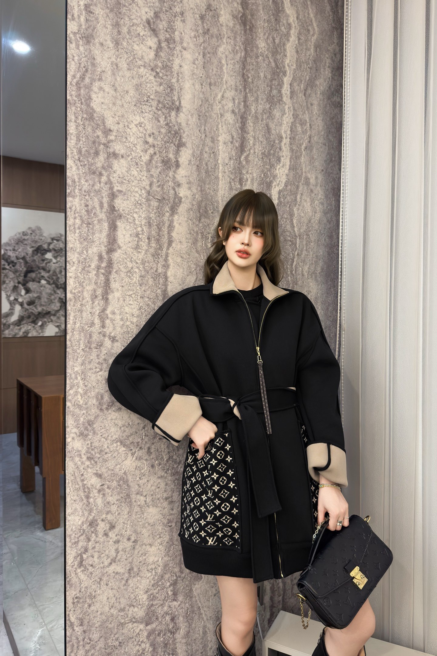 Louis Vuitton 2025FW Stylish Black Coat with Signature Pattern