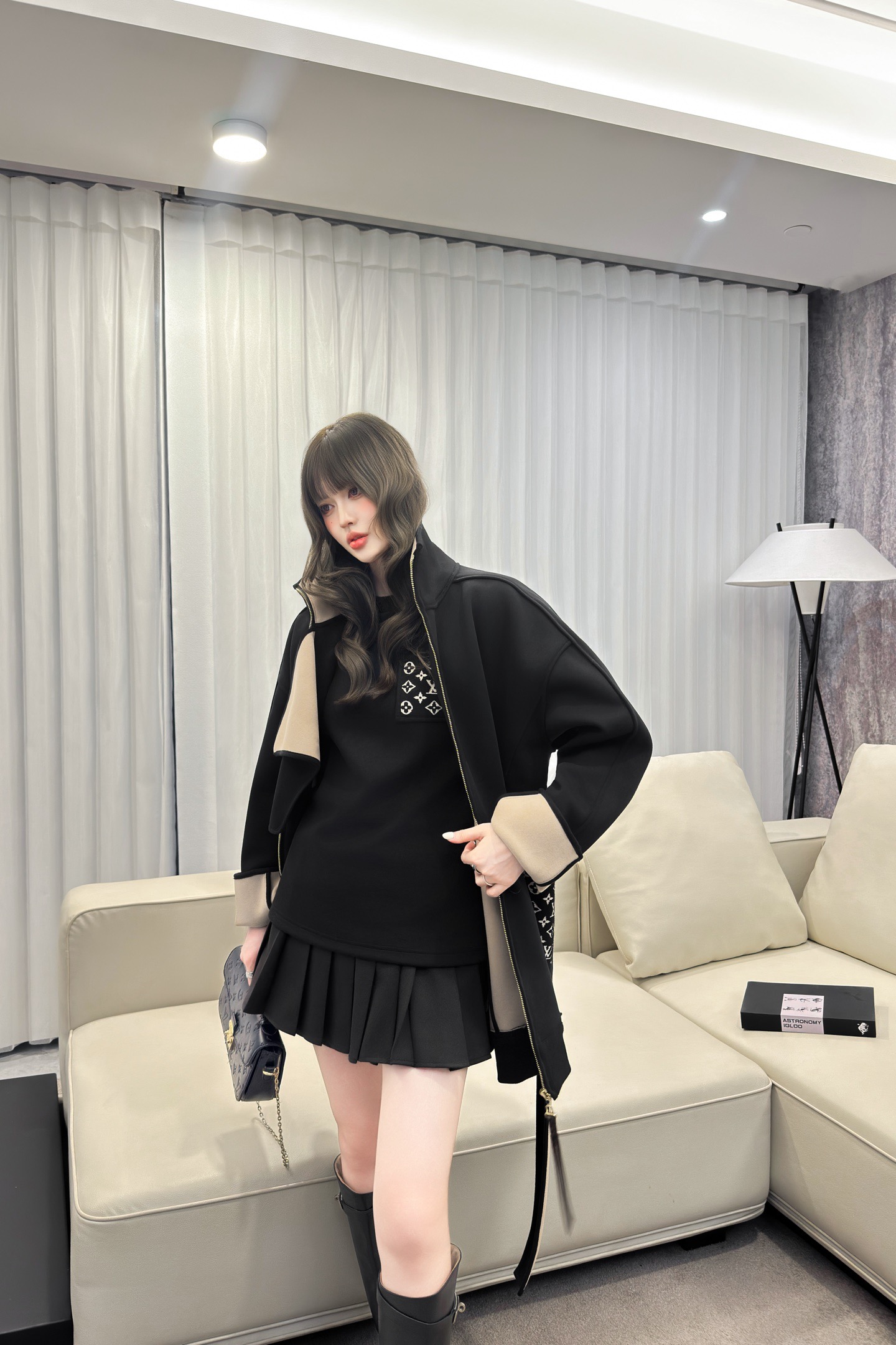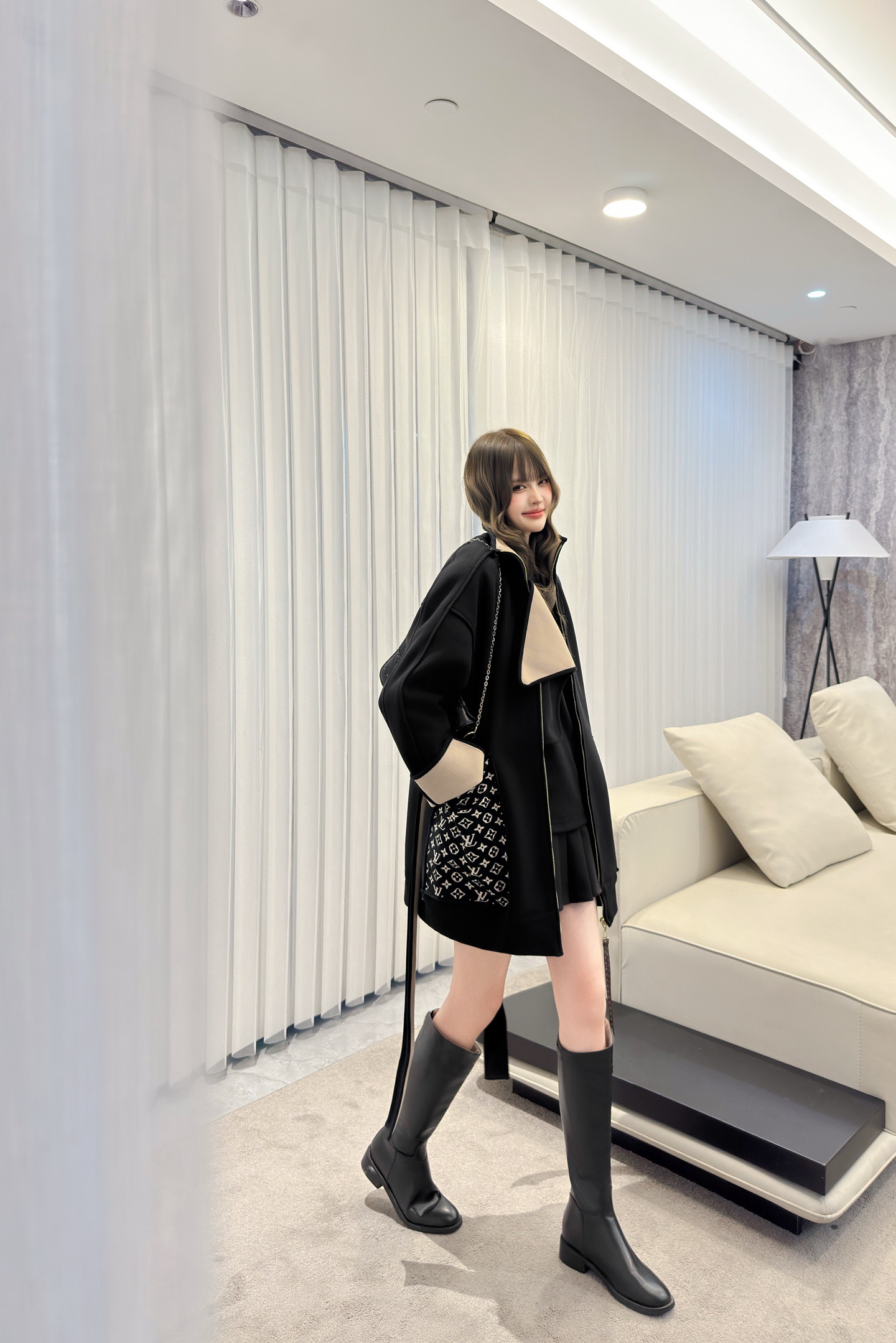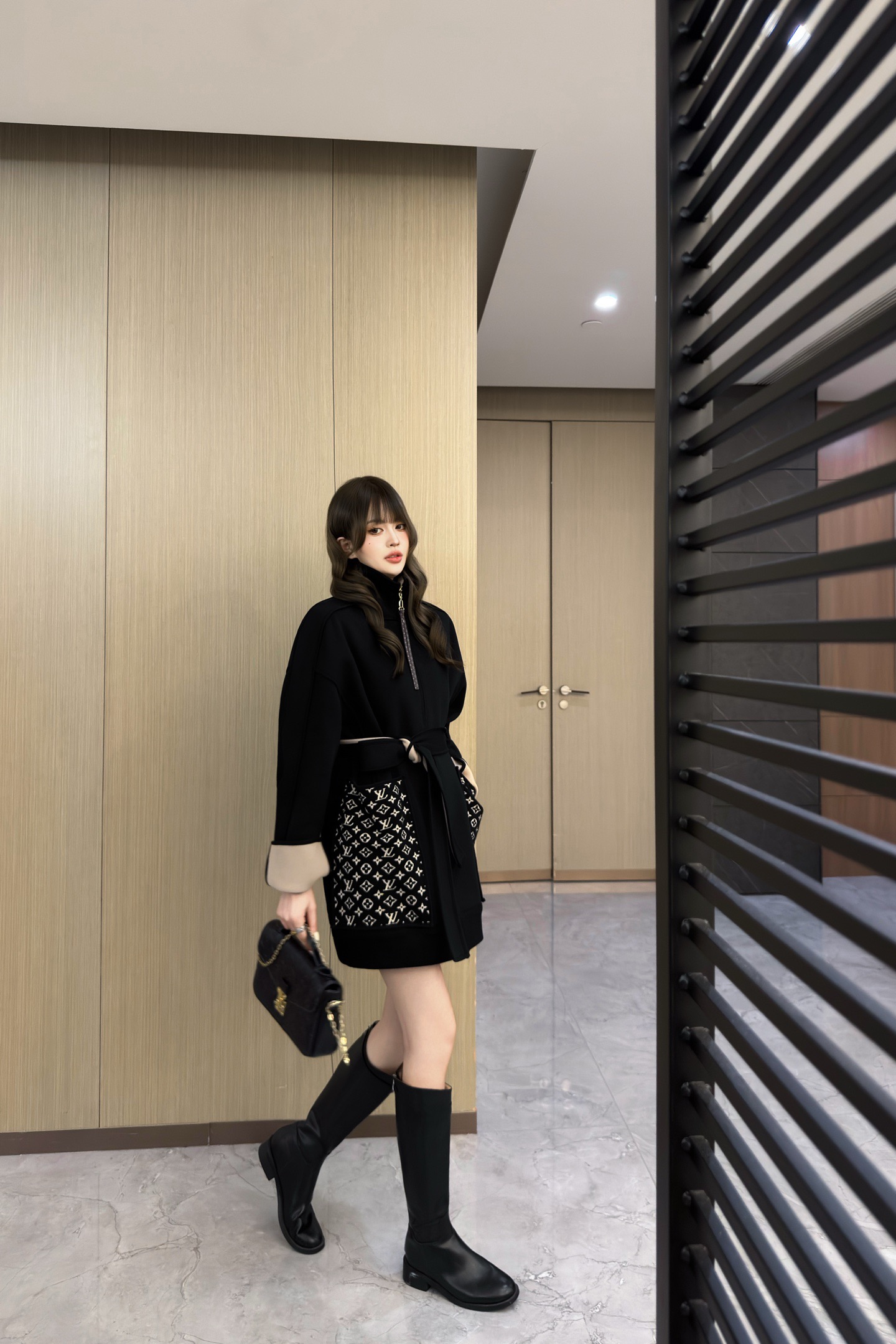 Louis Vuitton 2025FW Stylish Black Coat with Signature Pattern