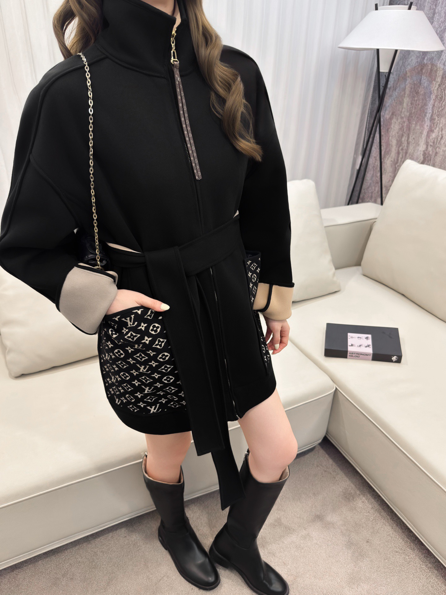 Elevate your wardrobe with this chic Louis Vuitton coat. The perfect blend of classic style and modern flair, this coat is a must-have for any fashion-forward woman.