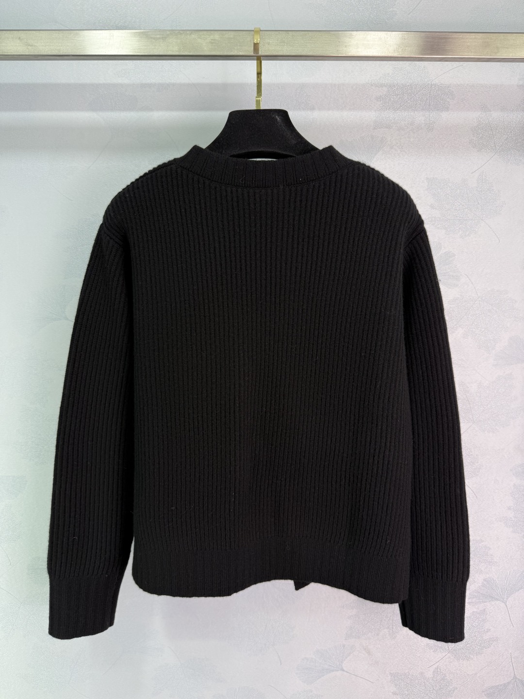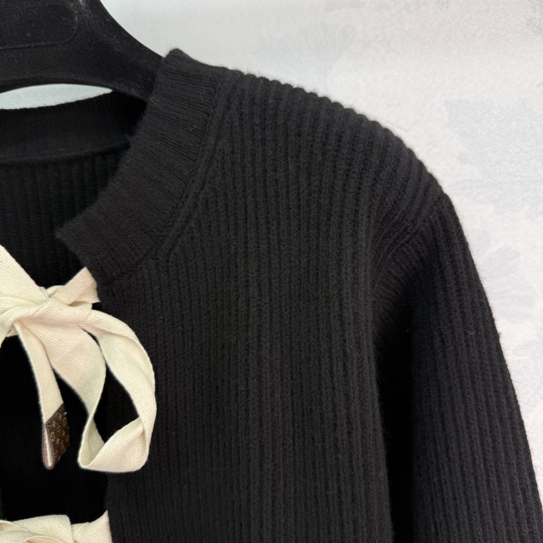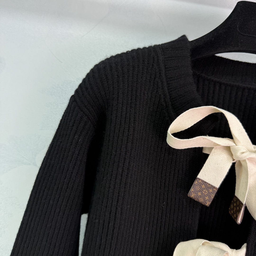 Elegant Louis Vuitton black cashmere cardigan featuring delicate bow accents for a touch of sophistication and timeless style. Perfect for layering.