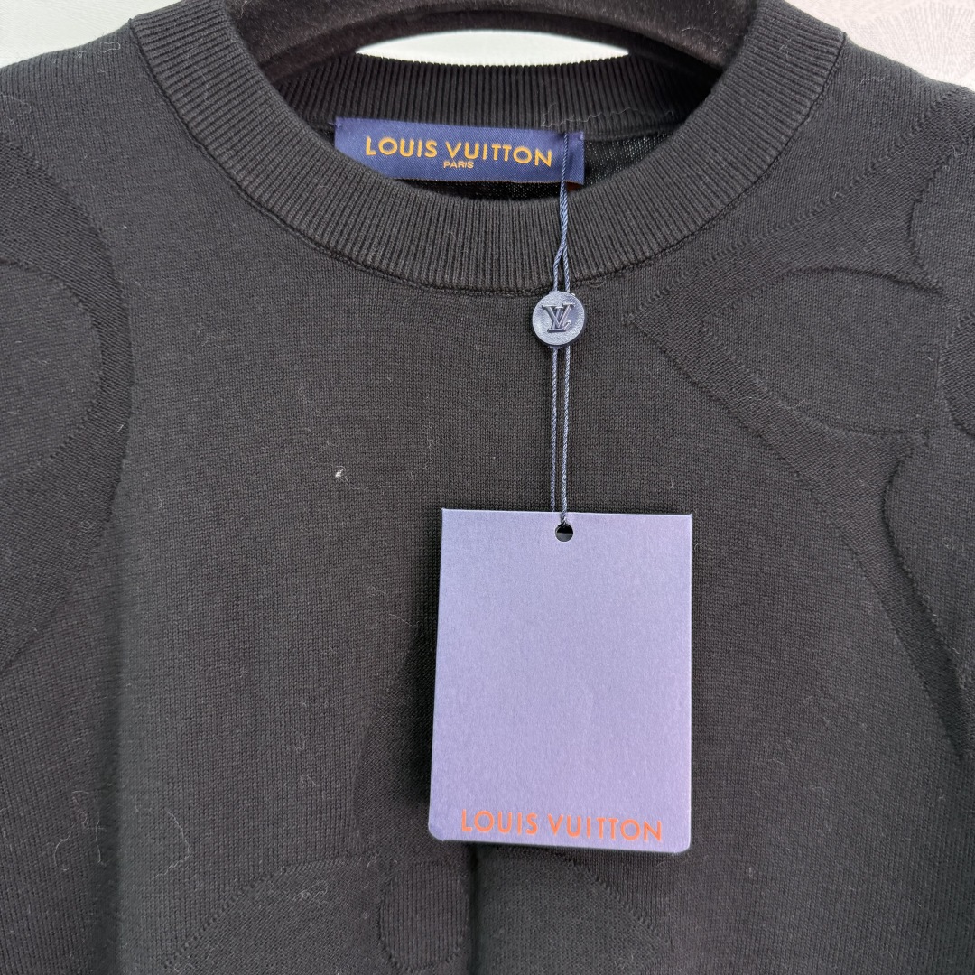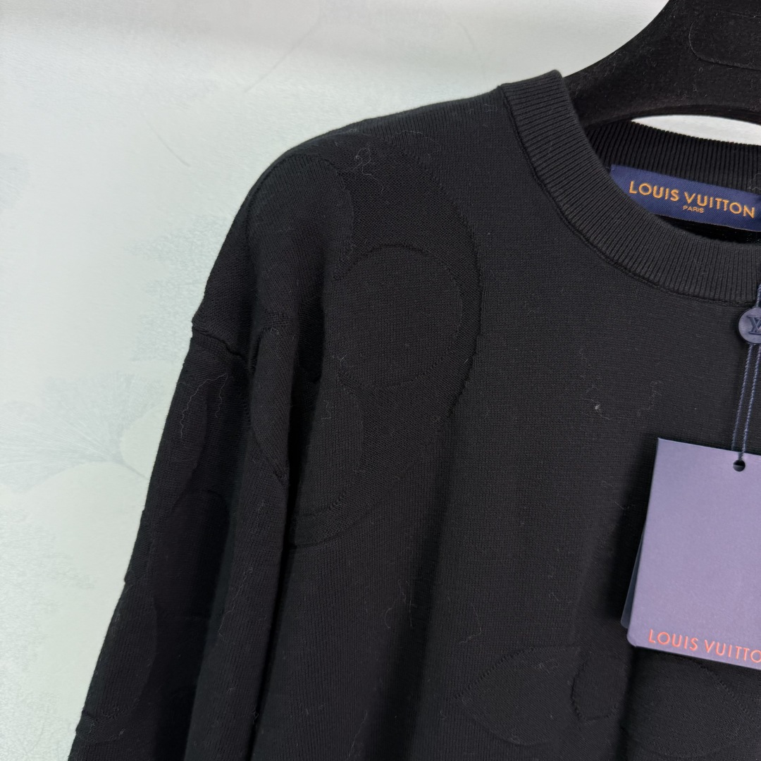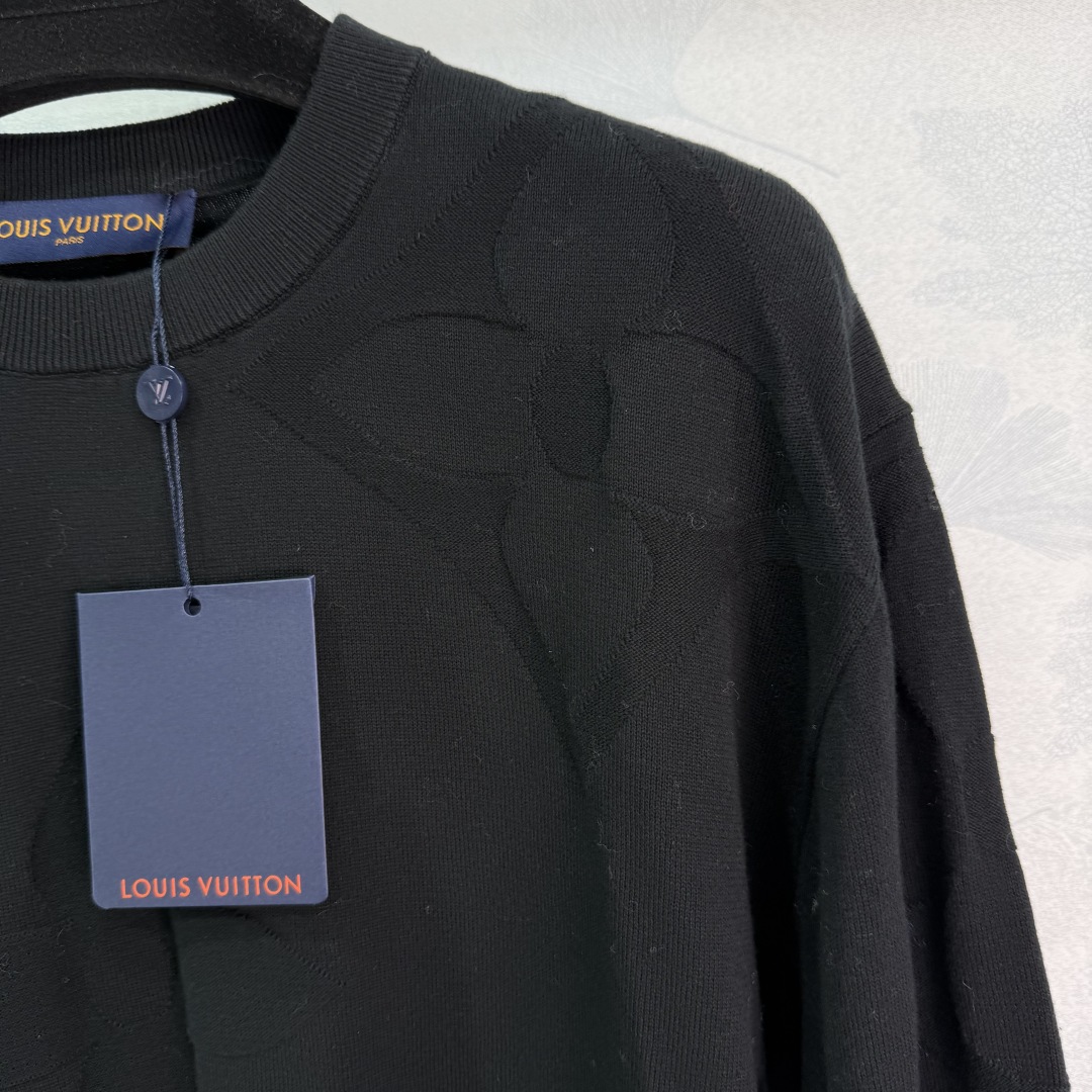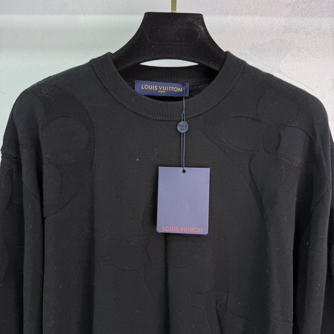 Louis Vuitton Black Embossed Knit Crewneck Long Sleeve Sweater