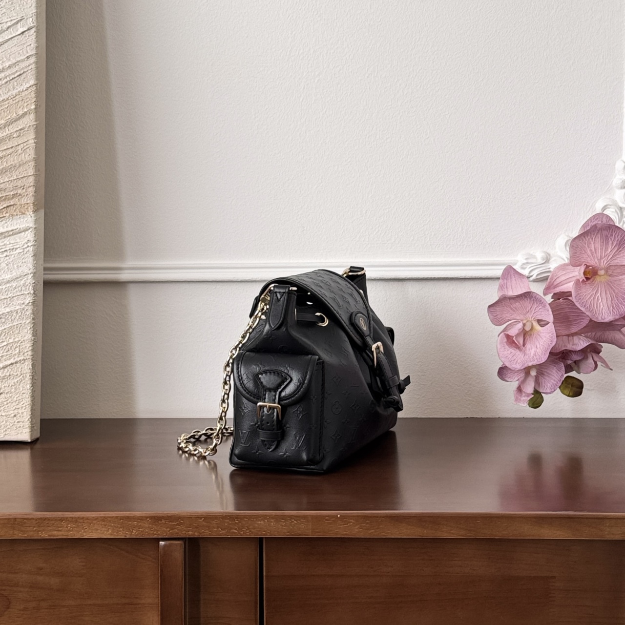 Louis Vuitton Black Leather Shoulder Bag with Chain Detail