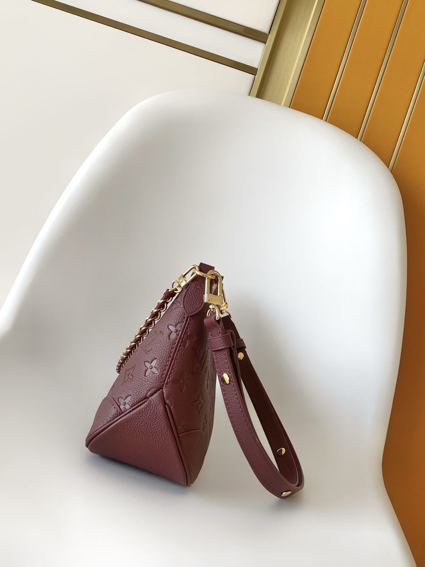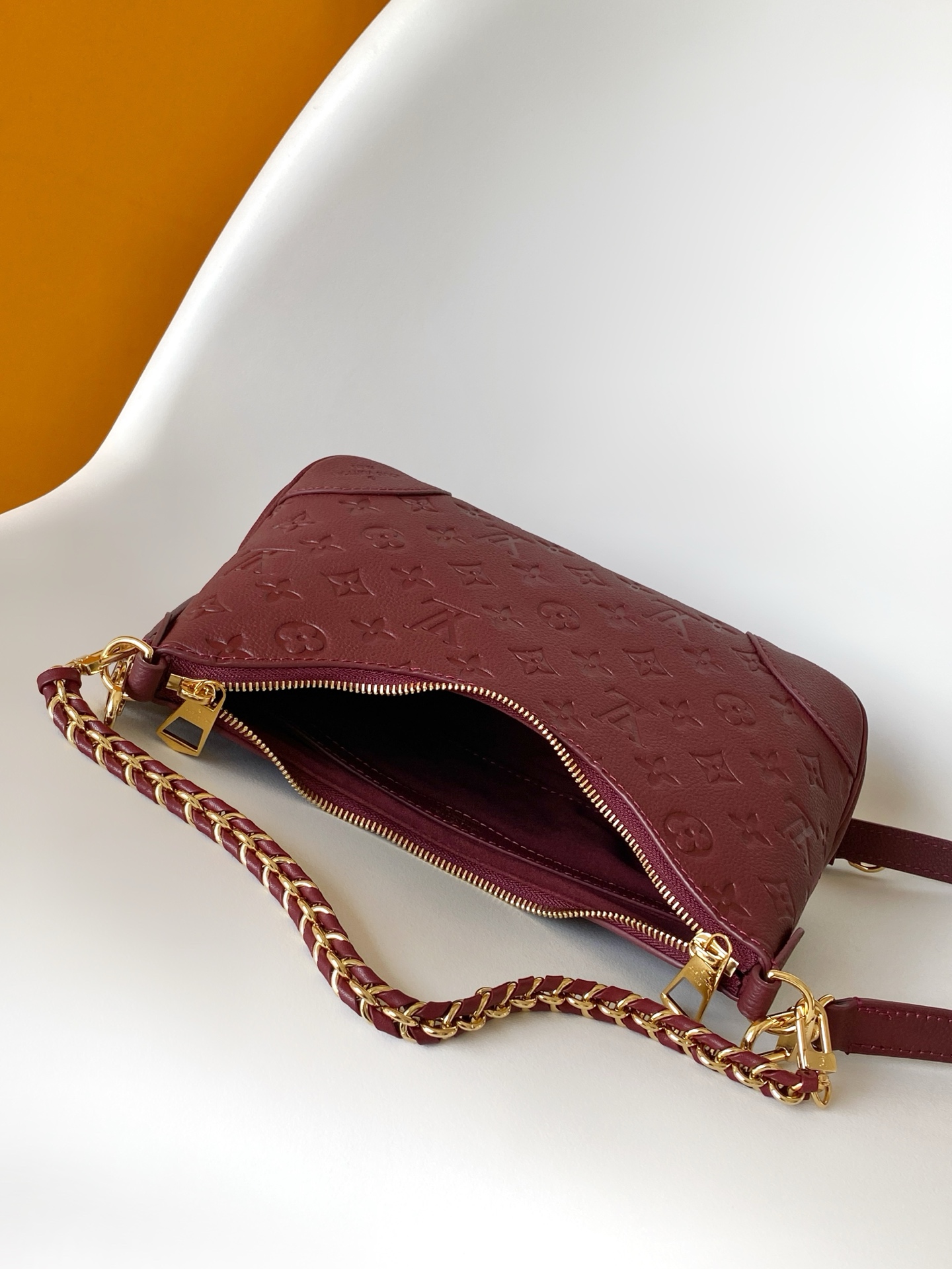 Louis Vuitton Boulogne handbag in Monogram Empreinte leather with detachable chain and light gold hardware. Perfect for everyday essentials.
