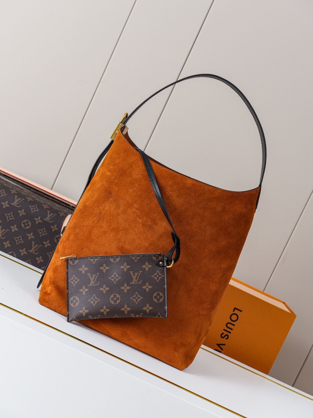 The Louis Vuitton Hobo is a stylish and practical choice for everyday use. Crafted from luxurious suede leather, this bag combines a relaxed silhouette with refined details.