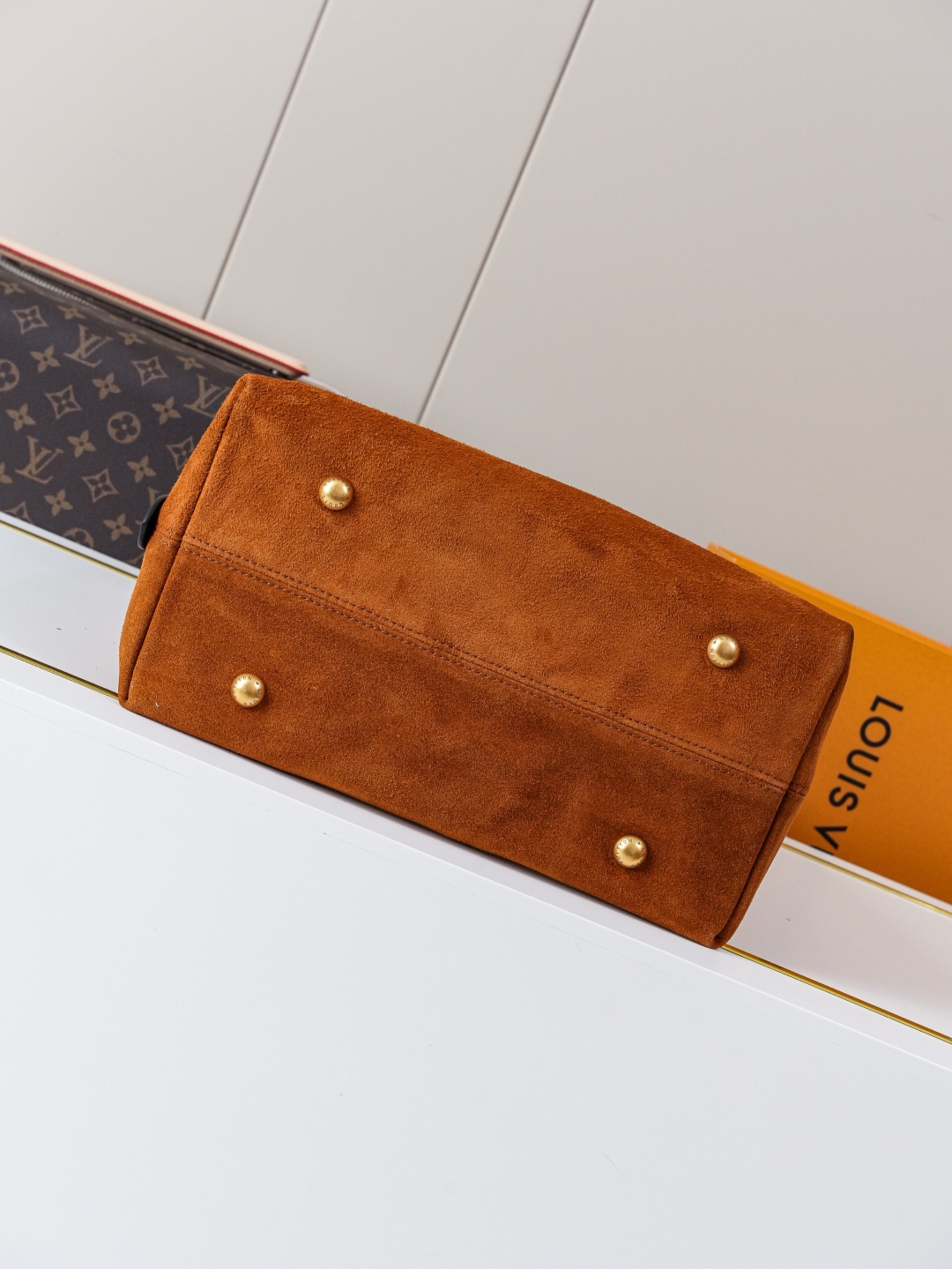 Louis Vuitton Brown Suede Leather Hobo Bag, Medium Size, with Metal Hardware
