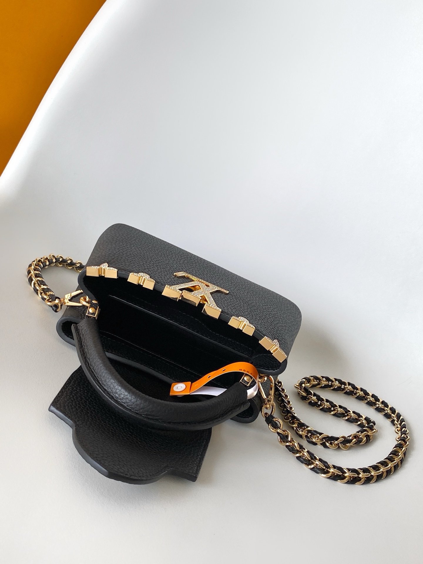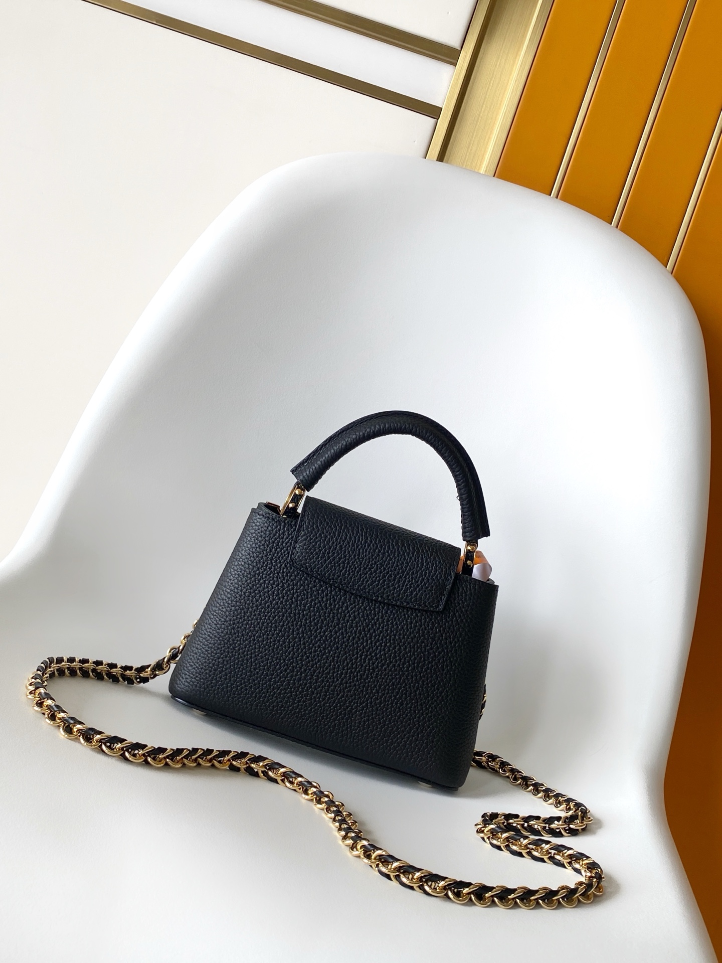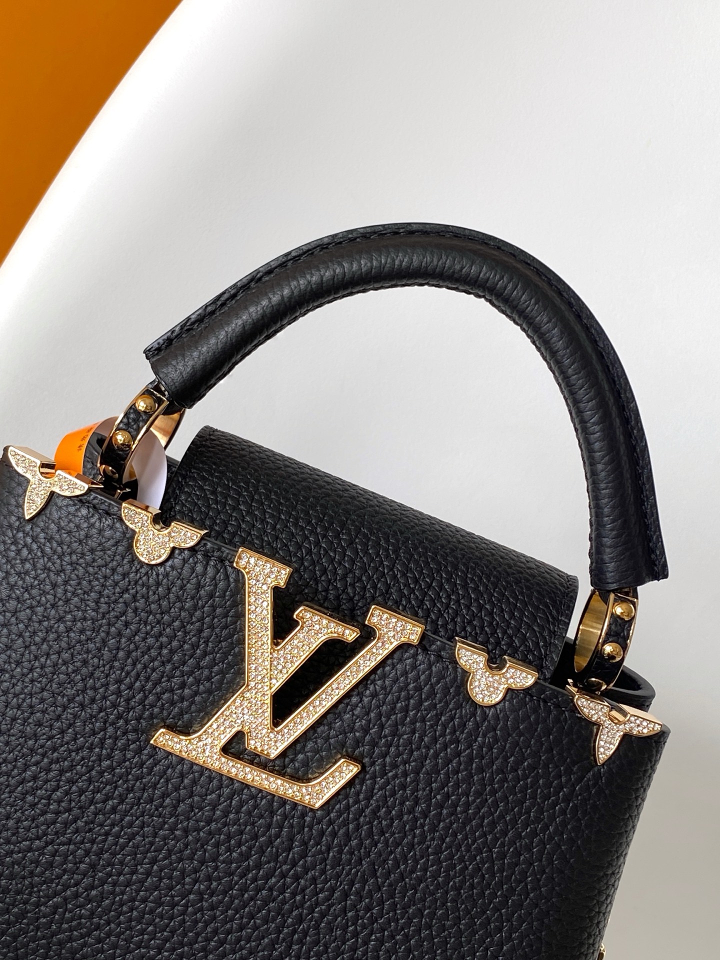 Tags: Black Leather Purse, Designer Crossbody Bag, lv capucines bb, Taurillon Leather Handbag, Top Handle Bag