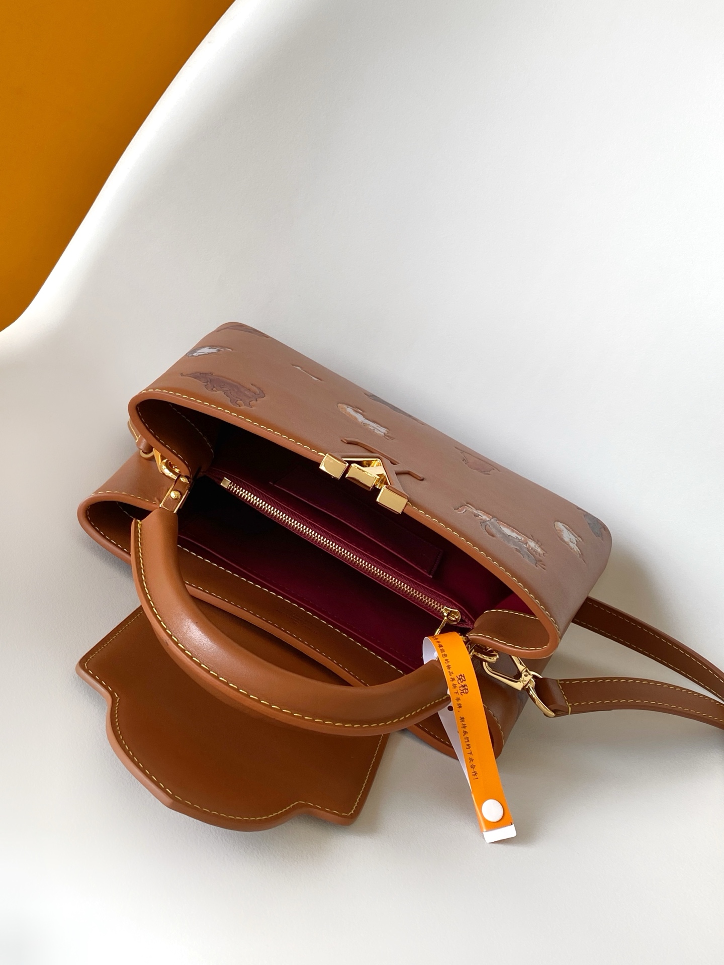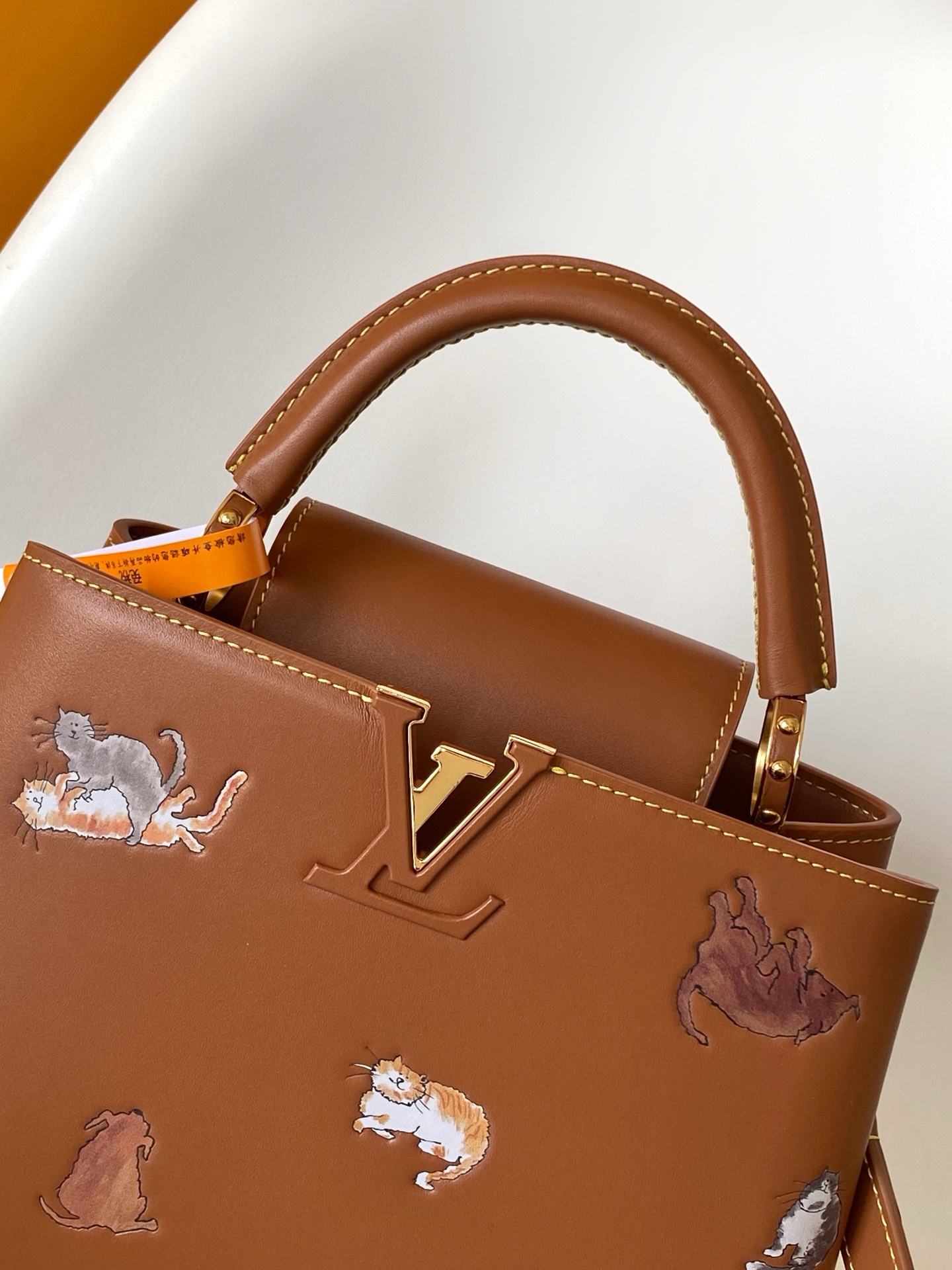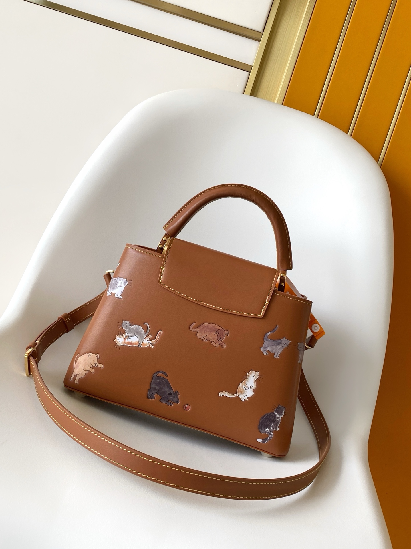 Elevate your style with the Louis Vuitton Capucines BB satchel. Crafted in brown leather, this bag features playful cat illustrations. Perfect for versatile wear!
