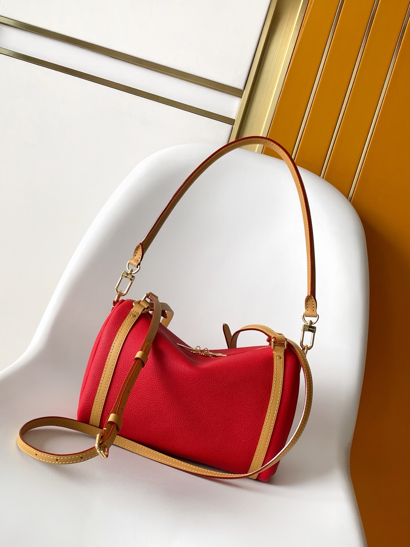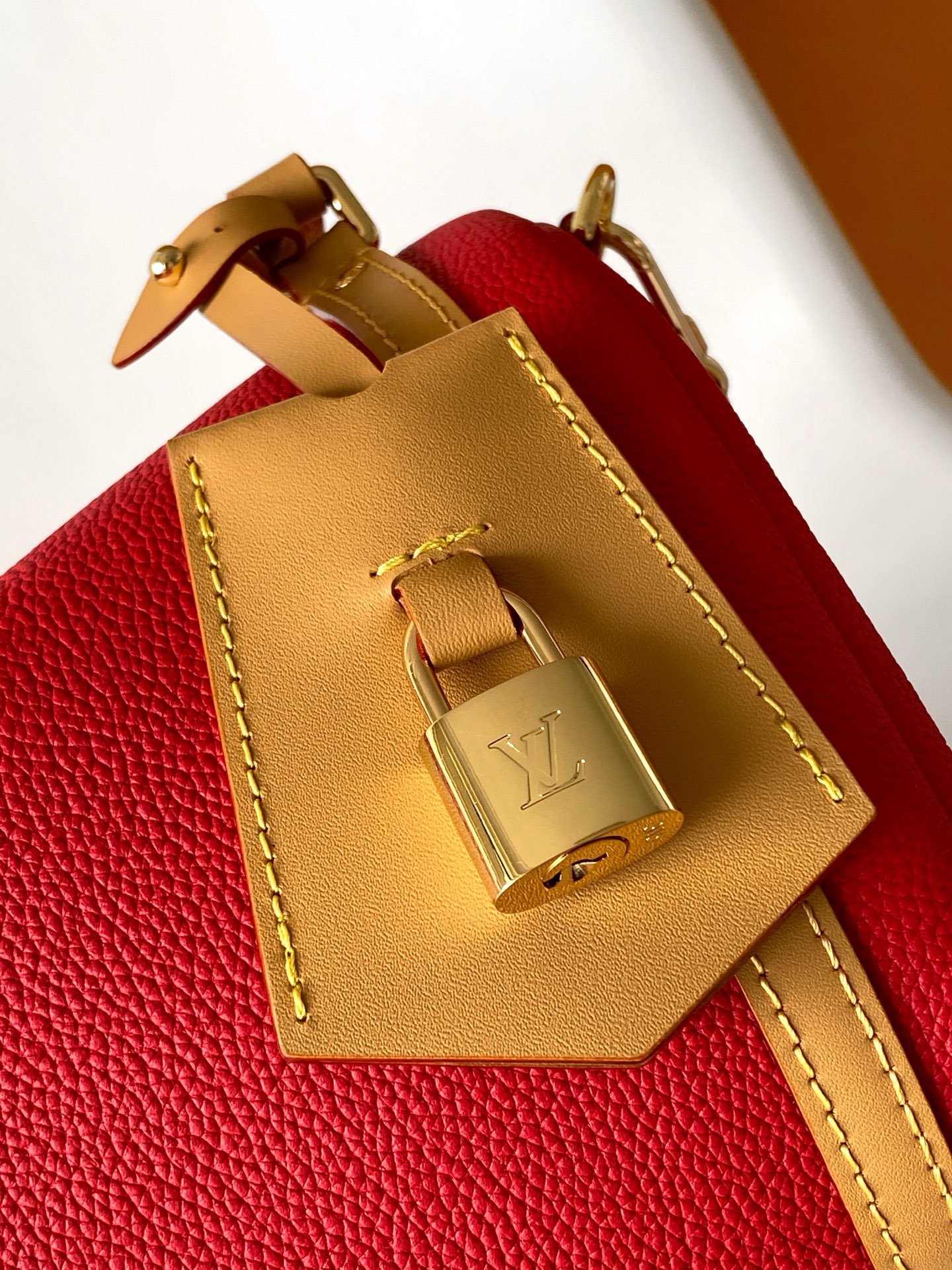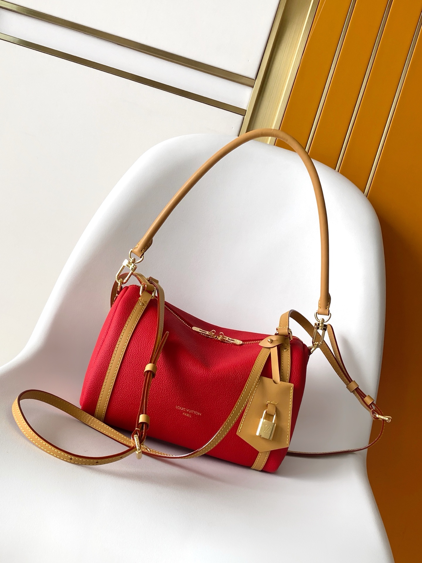 Louis Vuitton Express Small Handbag in Red Grained Leather with Lock Charm