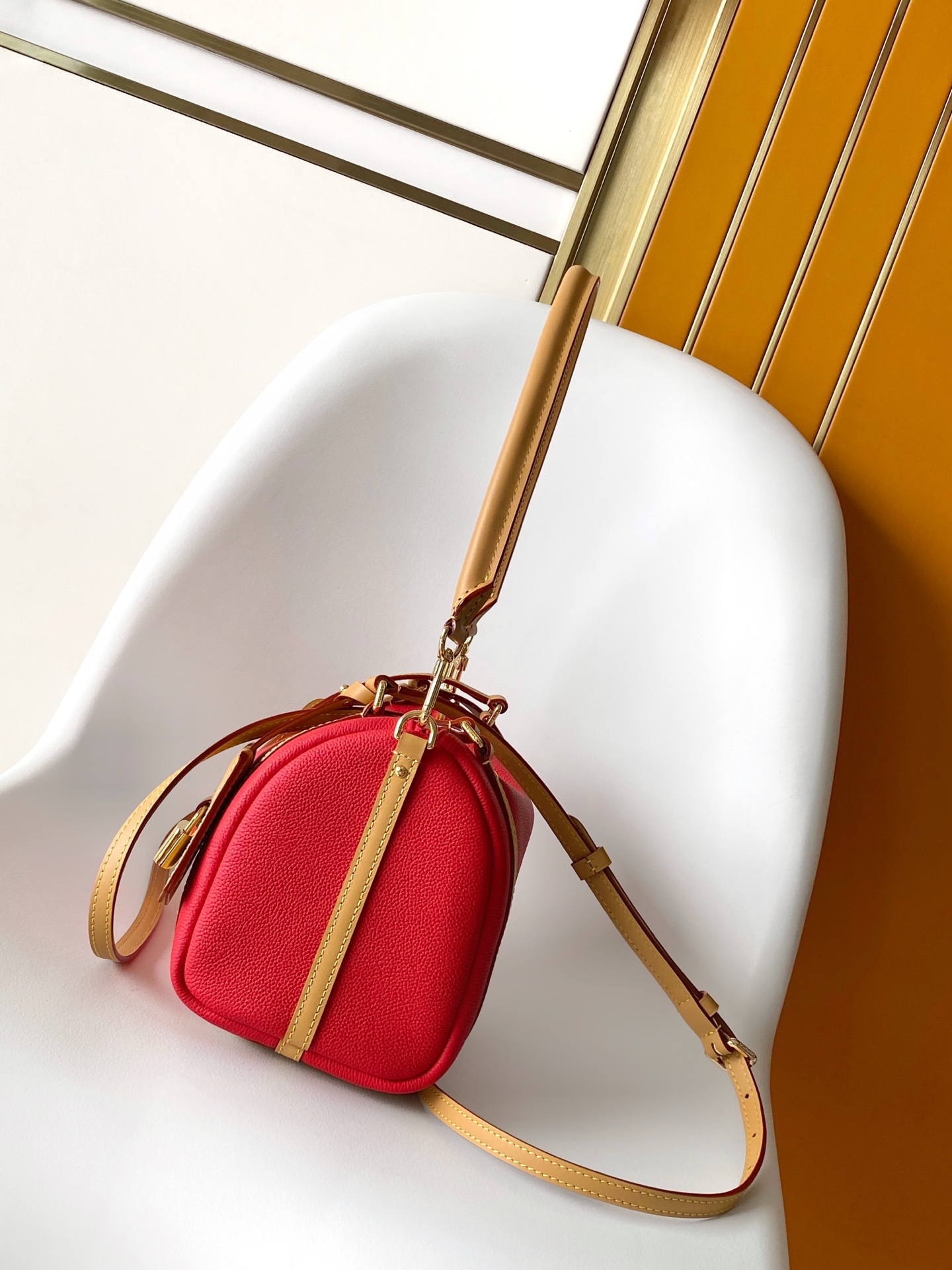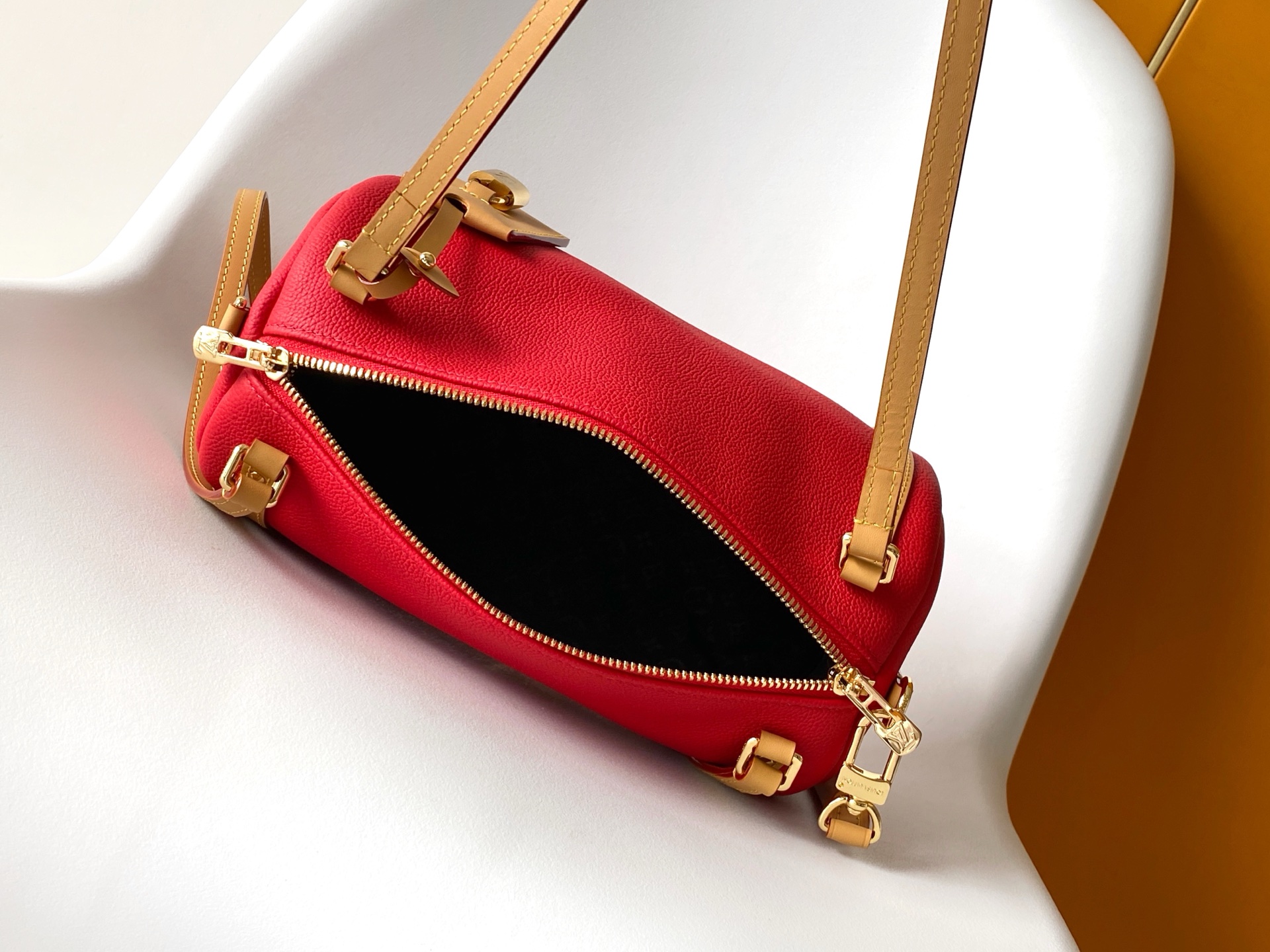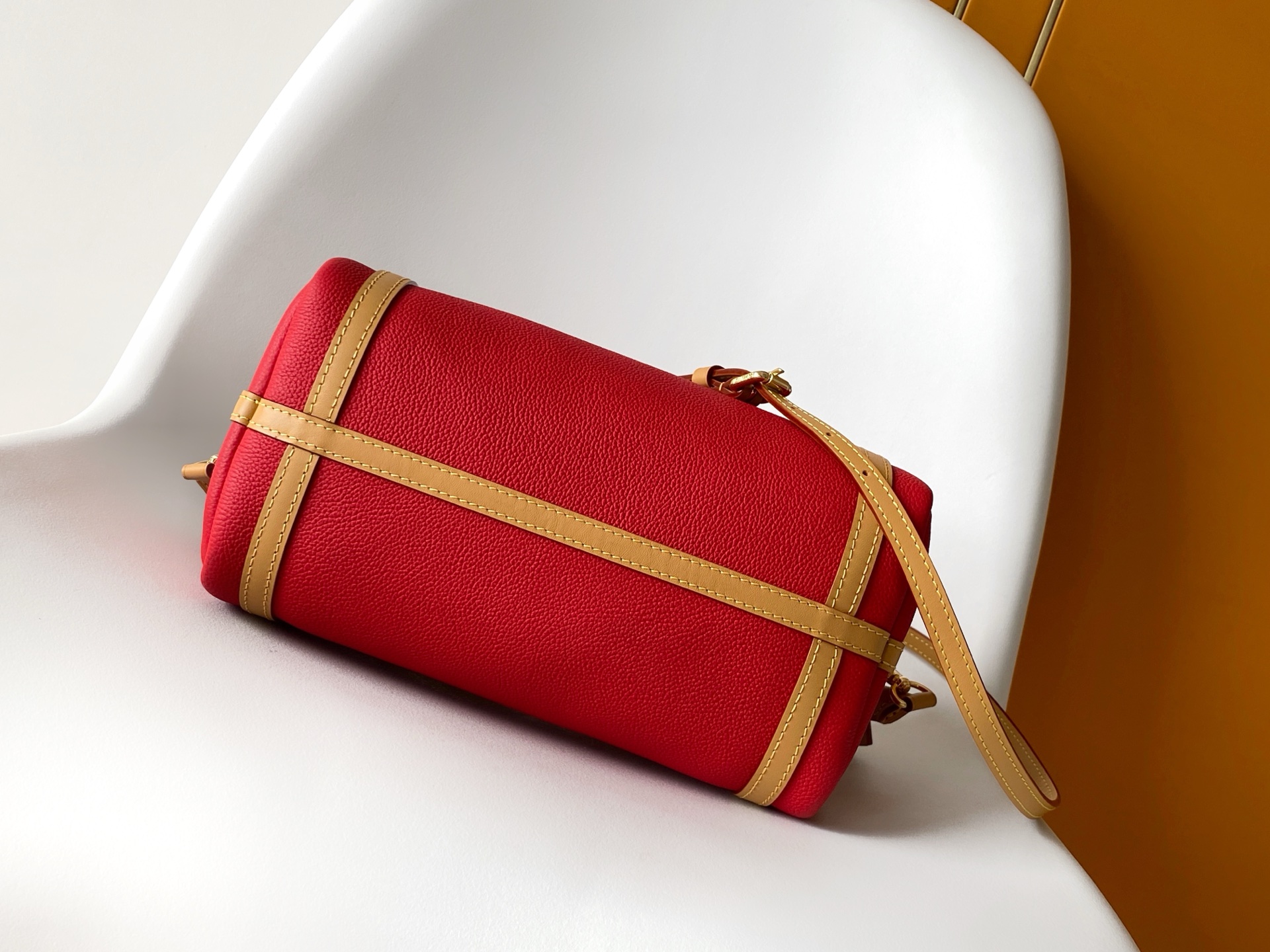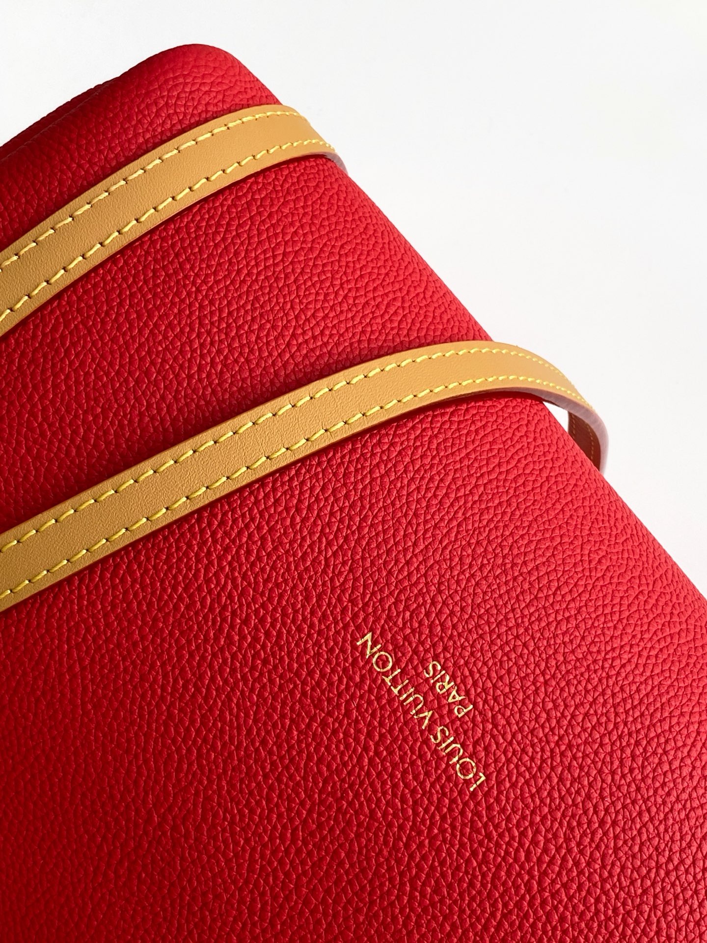 Louis Vuitton Express Small Handbag in Red Grained Leather with Lock Charm