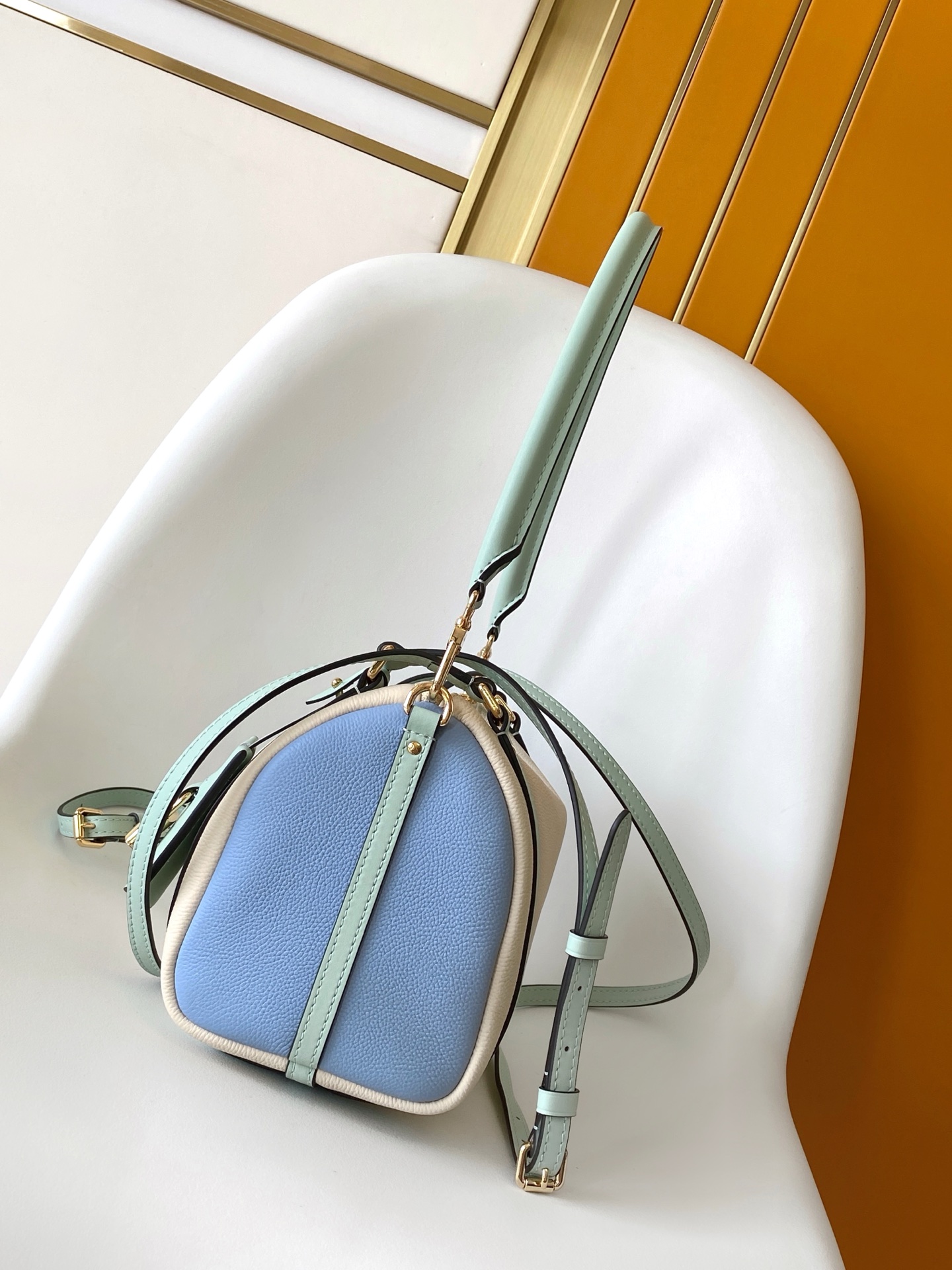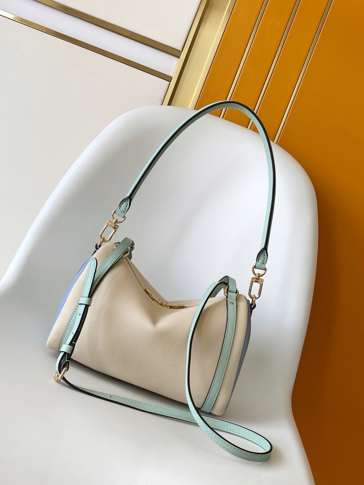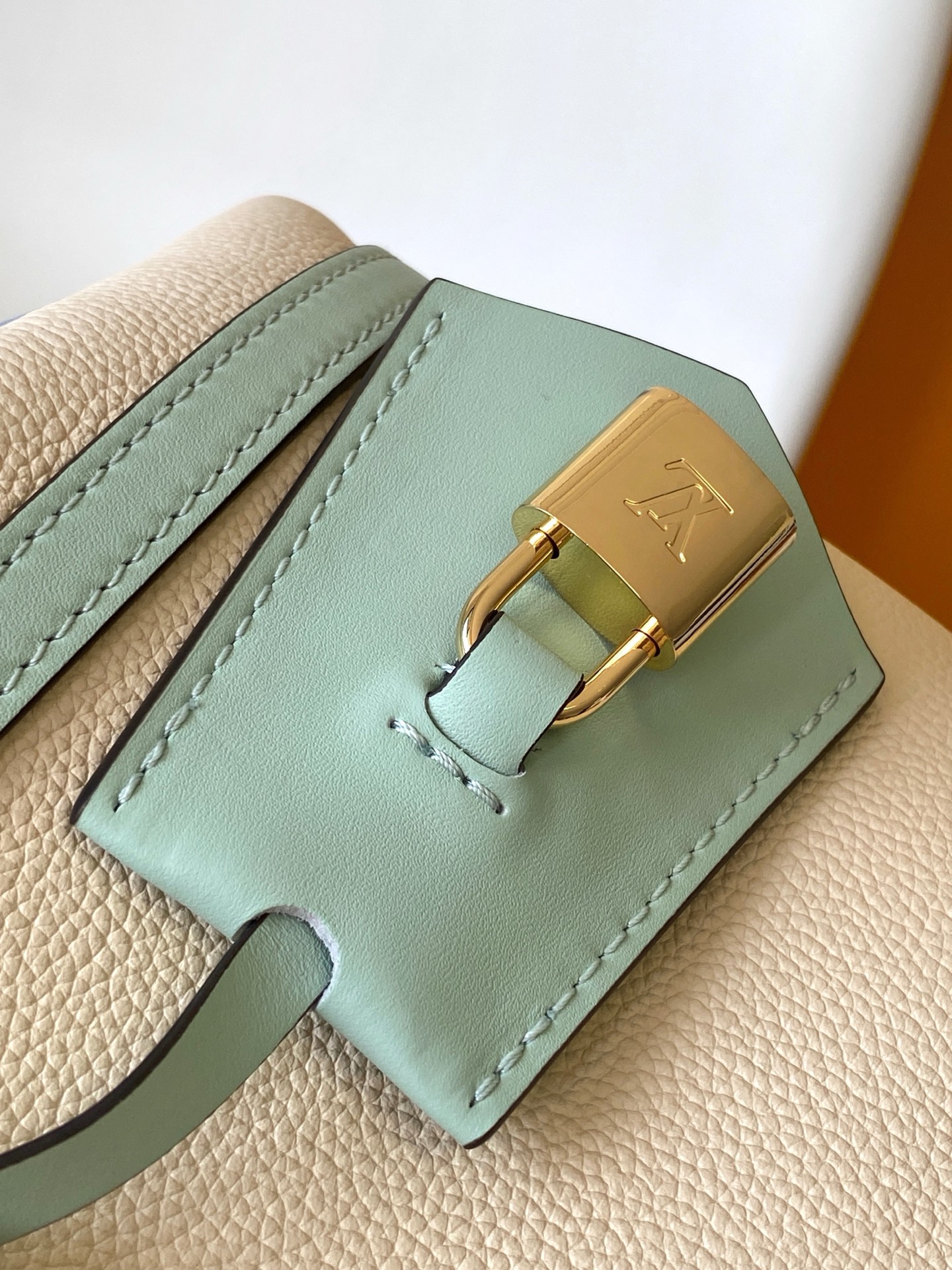 Louis Vuitton Express Small Handbag Ivory Leather with Mint Green Trim