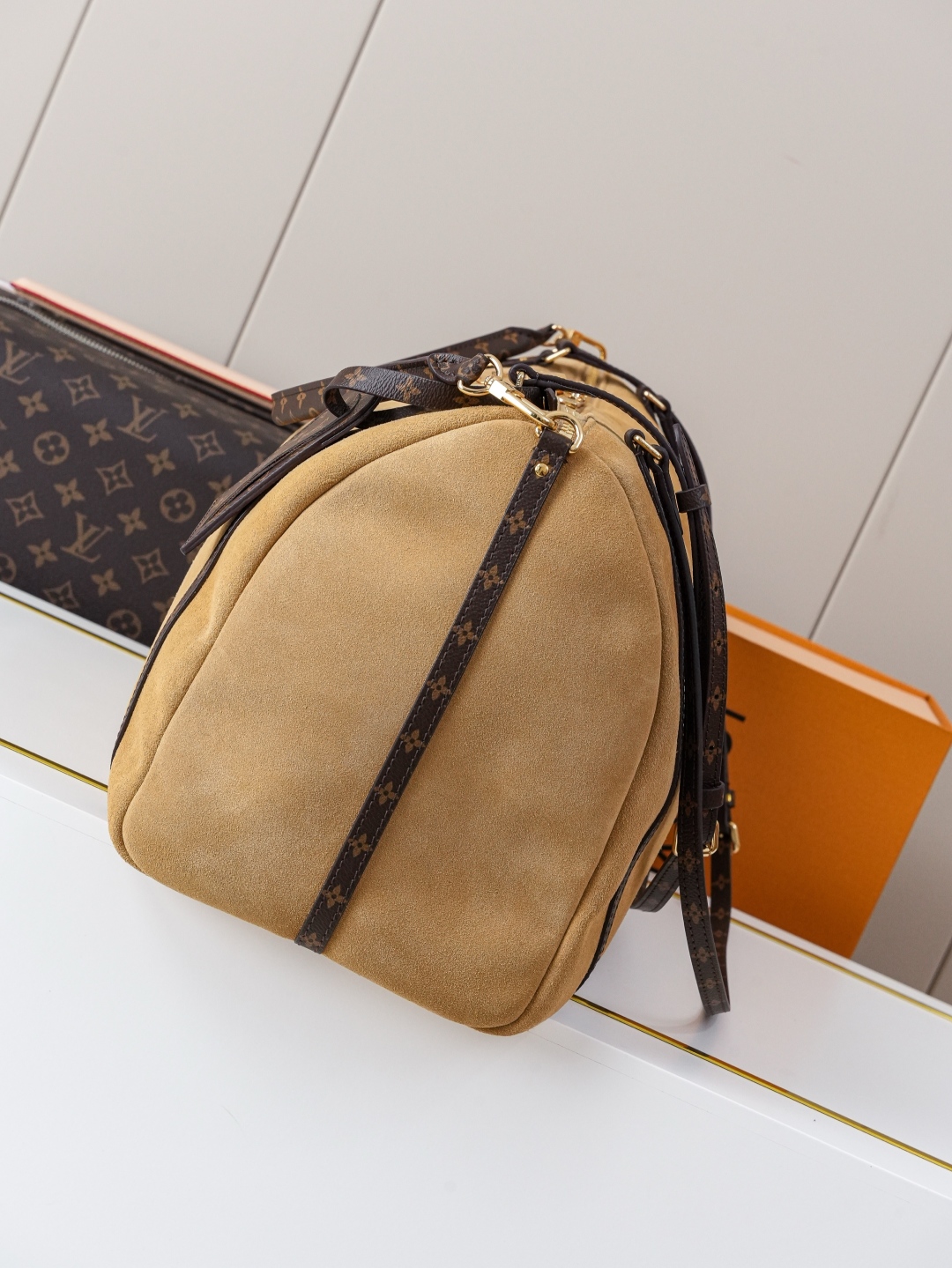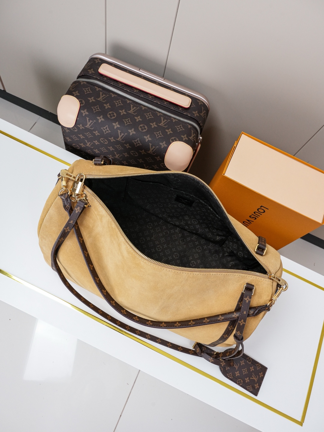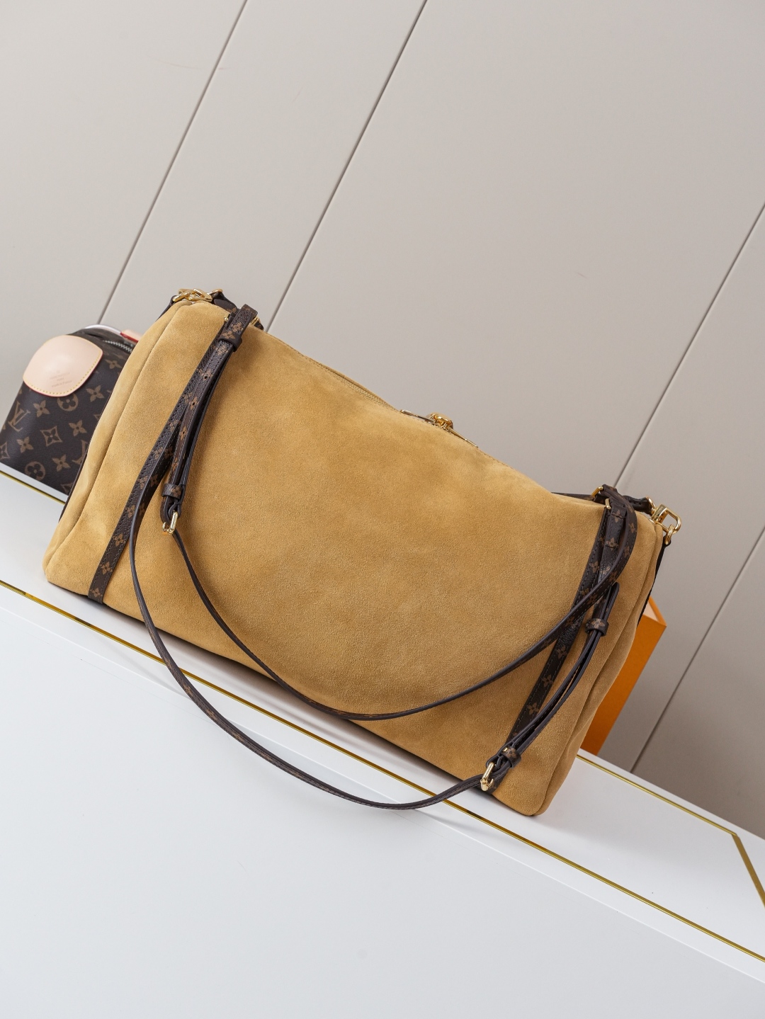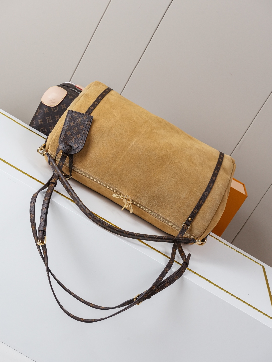 The Louis Vuitton Express Travel Large Bag is a modern reinterpretation of the classic Keepall. Crafted from soft suede and trimmed with iconic Monogram leather, this bag offers a luxurious and stylish option for travel and everyday use.